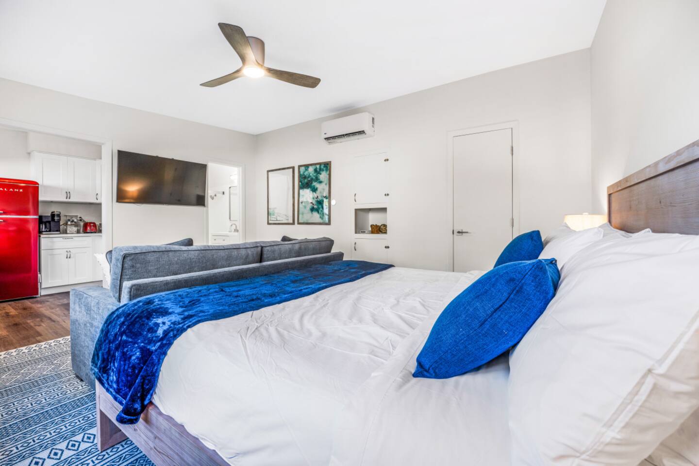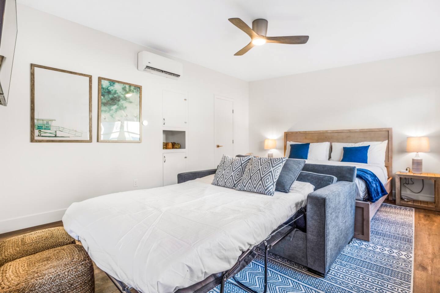Welcome to our Pacific Beach oasis, where our large studio offers you the perfect blend of comfort and convenience. Feel like you're staying in a high-end hotel with a plush king-size bed that ensures a restful night's sleep, and a cozy sofa bed for extra guests. Our fully equipped kitchen and the full bathroom provides all the amenities you need. We pride ourselves on providing hotel-quality linens and bathroom essentials. We're just 2-blocks away from the beach. Your PB retreat awaits!