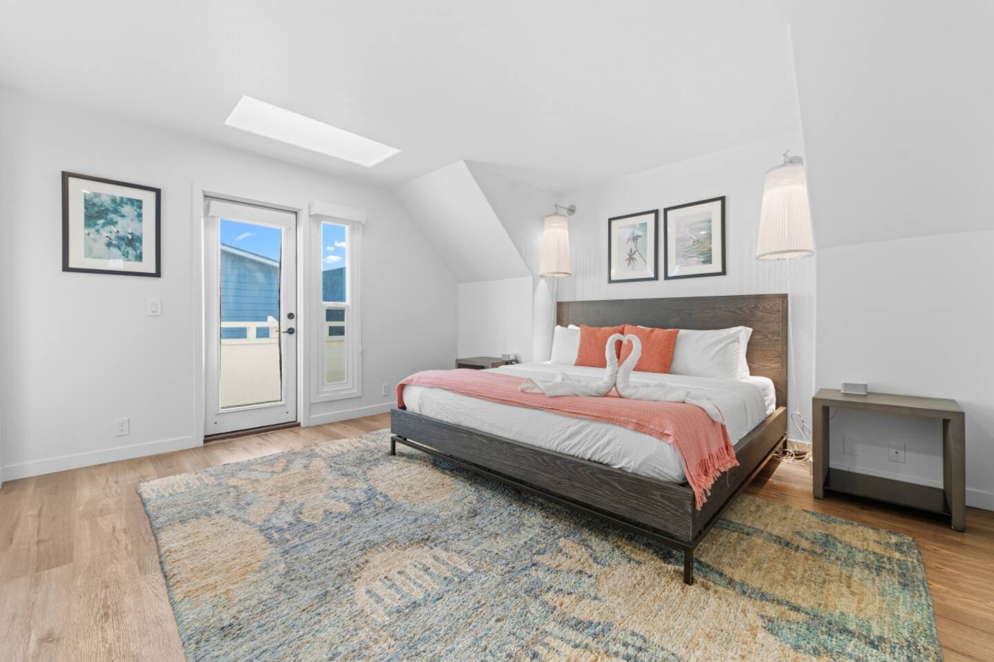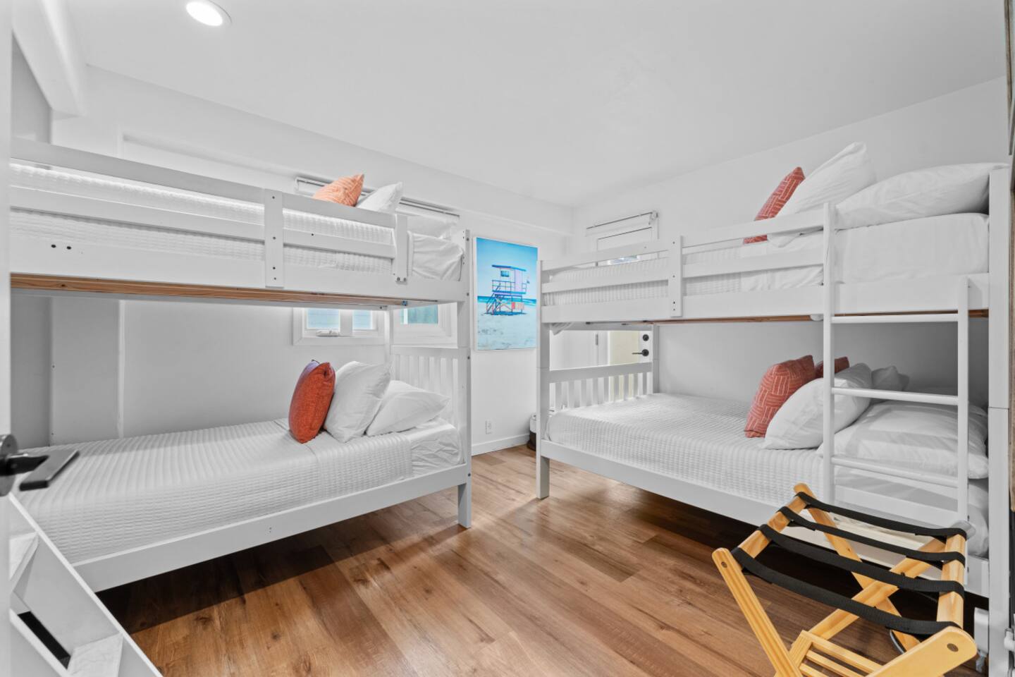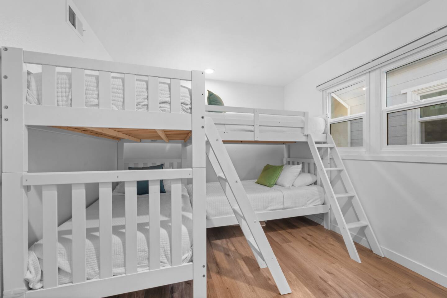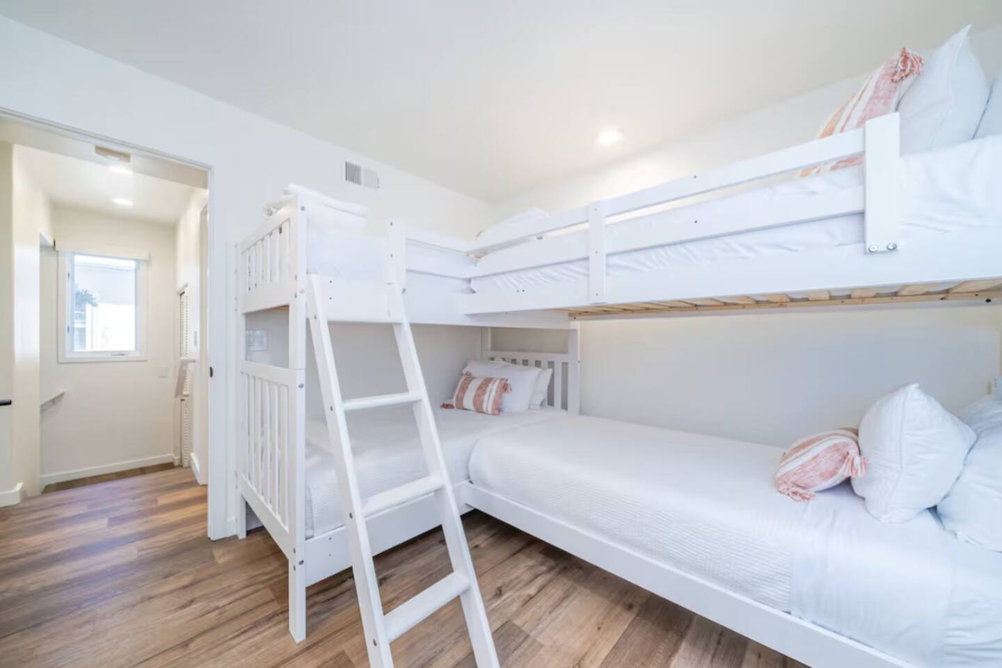 Welcome to our expansive dual-home vacation rental, designed to comfortably host families and large groups, offering plenty of space, privacy, and stunning views of Belmont Park and the beach. First Home (2-Story, 3-Bedroom, 3-Bath) Upon entering the first home, you'll walk into an inviting open-concept living area featuring a spacious dining table, a comfortable seating area with a large TV, and a fully equipped kitchen with modern appliances, ideal for group meals. The room is flooded with natural light, thanks to the large windows that overlook the outdoor patio. On the ground floor, there’s a cozy bedroom with a queen bed, perfect for guests who prefer easy access to the main living space. Adjacent to the bedroom is a full bathroom, conveniently located for both guests and those in the common areas. From this level, you can access the garage, offering secure parking and extra storage for your beach gear. Upstairs, a large laundry closet sits at the top of the stairs for easy access. You'll find a bunk room with two sets of bunk beds, ideal for kids or friends traveling together. A full bathroom with a shower/tub combo is located just outside the bunk room, providing convenience for all upstairs guests. The highlight of the second floor is the main suite—a spacious retreat featuring a luxurious king bed, ample closet space, and an ensuite bathroom with dual vanities and a walk-in shower. The bedroom opens up to a private balcony, where you can enjoy your morning coffee while taking in views of Belmont Park and the nearby beach. The outdoor patio on the ground level is perfect for dining and relaxing. Equipped with a dining table, comfortable outdoor seating, and a BBQ, it’s a great spot to enjoy meals outside or unwind after a day at the beach. Second Home (3-Bedroom, 2.5-Bath) Situated directly above the first home, the second home offers additional space with a private entrance, perfect for larger groups who want to stay close but maintain some privacy. Upon entering, you'll walk through a hallway that leads to the bedrooms and bathrooms. On your left is a full bathroom and a laundry room with a washer and dryer. To the right is a bedroom with a queen bed, offering a quiet retreat for guests. At the end of the hall is a spacious bunk room, making it an excellent spot for families or kids. As you ascend the stairs, you'll be greeted by half bathroom and an open-plan living area with vaulted ceilings and large windows that offer sweeping views of Belmont Park and the beach. The kitchen is equipped with modern stainless-steel appliances, ample counter space, and everything needed to prepare meals for a large group. Adjacent to the kitchen is a dining area that seats eight, perfect for shared meals and game nights. The main bedroom is also located on the second floor and features a king bed, a walk-in closet, and an ensuite bathroom with a large walk-in shower and dual sinks. A private balcony off the main bedroom offers another quiet spot to relax and enjoy the views. The living area opens up to a large balcony, fully furnished with a lounge set, dining table, and BBQ. This space is perfect for outdoor entertaining, whether you're enjoying sunset views or grilling dinner after a day at the beach. Both homes are designed to provide a seamless combination of shared and private spaces, making them ideal for large families or groups looking for a comfortable beachside retreat. With stunning views, modern amenities, and plenty of room to relax, this property offers the perfect getaway. Parking: There is additional parking in front of the home. It is free street parking, but you CAN'T park there Monday-Thursday/Friday 8am-10am. Please read all street signs carefully. 7 miles from San Diego International Airport. PLEASE MESSAGE US BEFORE BOOKING TO CONFIRM AVAILABILITY, WE WILL GET BACK TO YOU QUICKLY :) Transient Occupancy Registration Certificate Numbers Tot:635963 Tot:636462 License Number STR-06031L STR-03655L