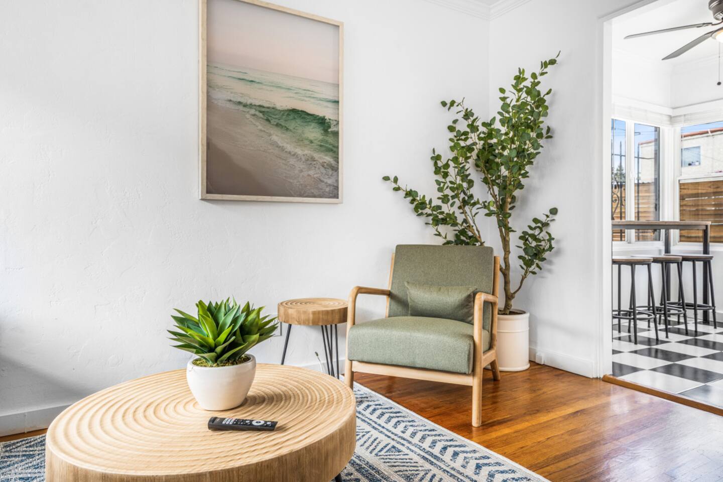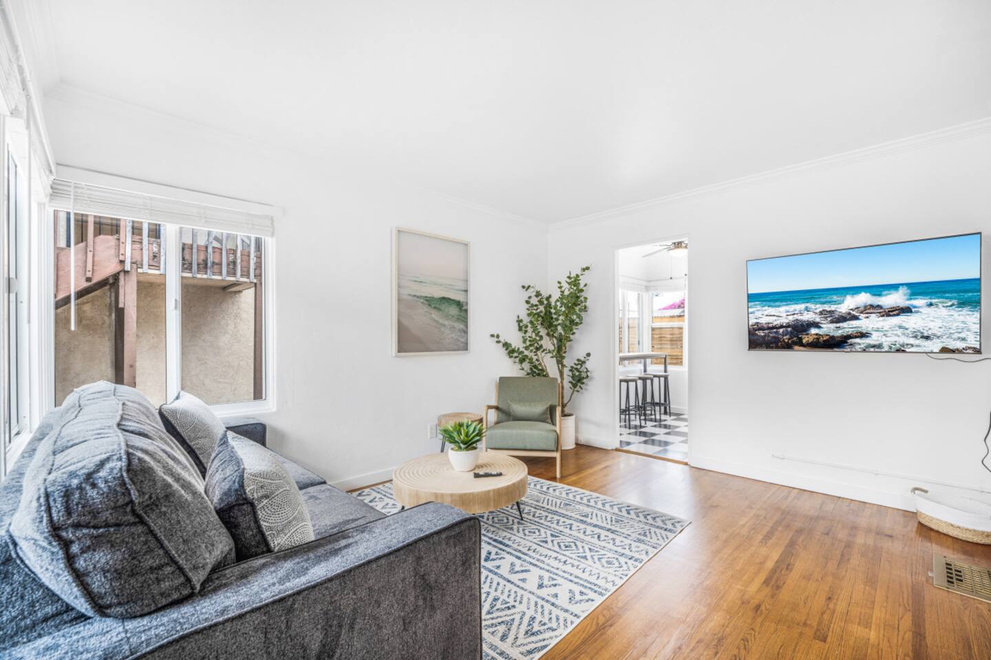 Welcome to our charming one-bedroom apartment located in the vibrant Ocean Beach neighborhood! This single-story unit offers a cozy and comfortable stay, perfect for couples, solo travelers, or small families looking for a beachside escape. With shared walls but ample privacy, this home provides a serene retreat just steps away from the ocean. Sleeping Arrangements: Master Bedroom: Unwind in the tranquil master bedroom featuring a queen-size bed with a memory foam mattress, dressed in hotel-quality linens to ensure a restful night's sleep. Living Area: Comfortable Seating: The inviting living room is designed for relaxation, featuring a large couch that converts into a queen-size pull-out bed. This additional sleeping space is perfect for extra guests or family members, and includes comfortable bedding for a good night's rest. Smart TV: Catch up on your favorite shows and movies on the smart TV, offering access to popular streaming services. Kitchen: Fully Equipped Kitchen: Cook your favorite meals in the fully stocked kitchen, which includes a stove, oven, microwave, refrigerator, coffee maker, toaster, and all necessary cookware and utensils. Dining Area: Enjoy meals at the cozy dining table with seating for four, ideal for casual dining or a romantic dinner. Amenities: Beach Equipment: Make the most of your beach days with our provided beach umbrella, towels, and beach chairs. Iron & Ironing Board: Keep your wardrobe fresh and wrinkle-free with the iron and ironing board available in the apartment. Wi-Fi: Stay connected with high-speed internet access throughout the unit. Bathroom: Full Bathroom: The bathroom is stocked with hotel-quality essentials, including shampoo, body soap, conditioner, and body lotion. Plush towels are also provided for your comfort. Location: Situated in the lively Ocean Beach neighborhood, our apartment is just a short walk away from the beautiful sandy beach, eclectic local shops, and a variety of dining options. Experience the laid-back beach town vibe with plenty of activities such as surfing, biking, and exploring the vibrant local culture. Access: Please note that there are four stairs needed to enter the home. Shared Walls: While the unit has shared walls(bedroom walls) it is designed to provide ample privacy and quiet for a peaceful stay. Book Your Stay: Don’t miss out on the opportunity to experience the charm and comfort of our Ocean Beach one-bedroom apartment. Book now and look forward to a relaxing and memorable beachside getaway! We can't wait to host you!