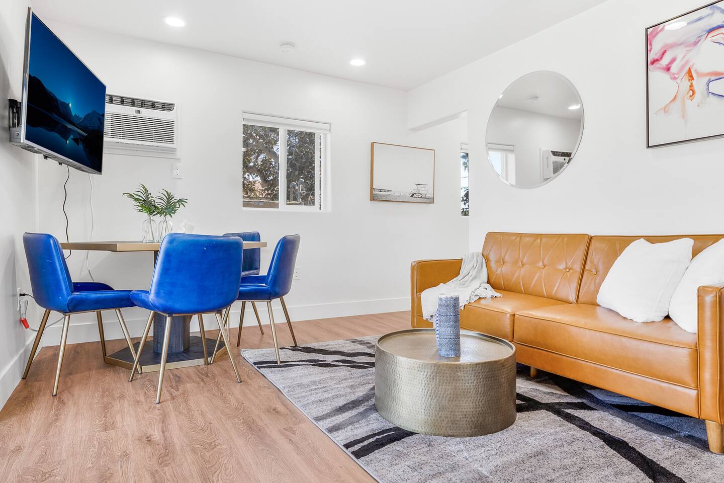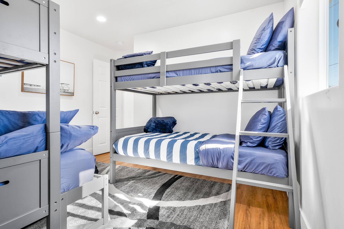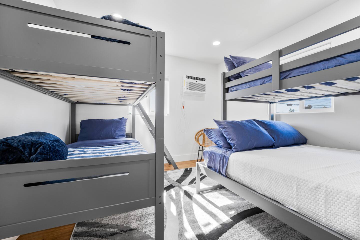 A gorgeous space to unwind and relax. Beautifully decorated with new designer furniture throughout. Extra comfy new beds with high end linens. Space sleeps up to 6 people. Enjoy sunsets from our patio. Our open plan living area with resort style couches, outdoor dining with BBQ grill for a wonderful dining experience. The open plan layout and large windows provide an abundance of natural light. Living Area: Luxury futon sofa(sleeps one person) with 55 inch Smart T.V and central AC Bedroom 1: King Bed with luxury linens. Central AC Bunk room with central AC: Bunk bed#1 Bottom bunk: Full size mattress Top bunk: Twin size mattress Bunk bed #2 Top bunk: Twin mattress Bottom bunk: Twin mattress Kitchen: Fully stocked kitchen with fridge, microwave, electric stove top(no oven), toaster, and Keurig coffee maker. We provide dish soap, sponge, trash bags, paper towels and coffee k-cups. Bathroom: Full size bath stocked with the following essentials: shampoo, conditioner, body soap and towels. Parking: One parking spot for a mid size SUV Shared Access for the washer & dryer, outdoor shower, and outdoor grill (propane provided).