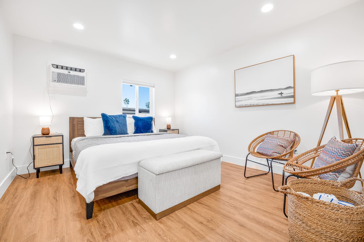 Spacious private patio, comfy outdoor seating/dining area & BBQ grill. Just a few short blocks to the beach Our outdoor patio area is great for entertaining family and friends, or watching a famous San Diego sunset Walking distance to everything Ocean Beach has to offer: beaches, pier, restaurants, bars, and shops Beautiful new furniture throughout. Comfy new beds with high end linens Surfboards, beach chairs & towels provided. Outdoor shower!