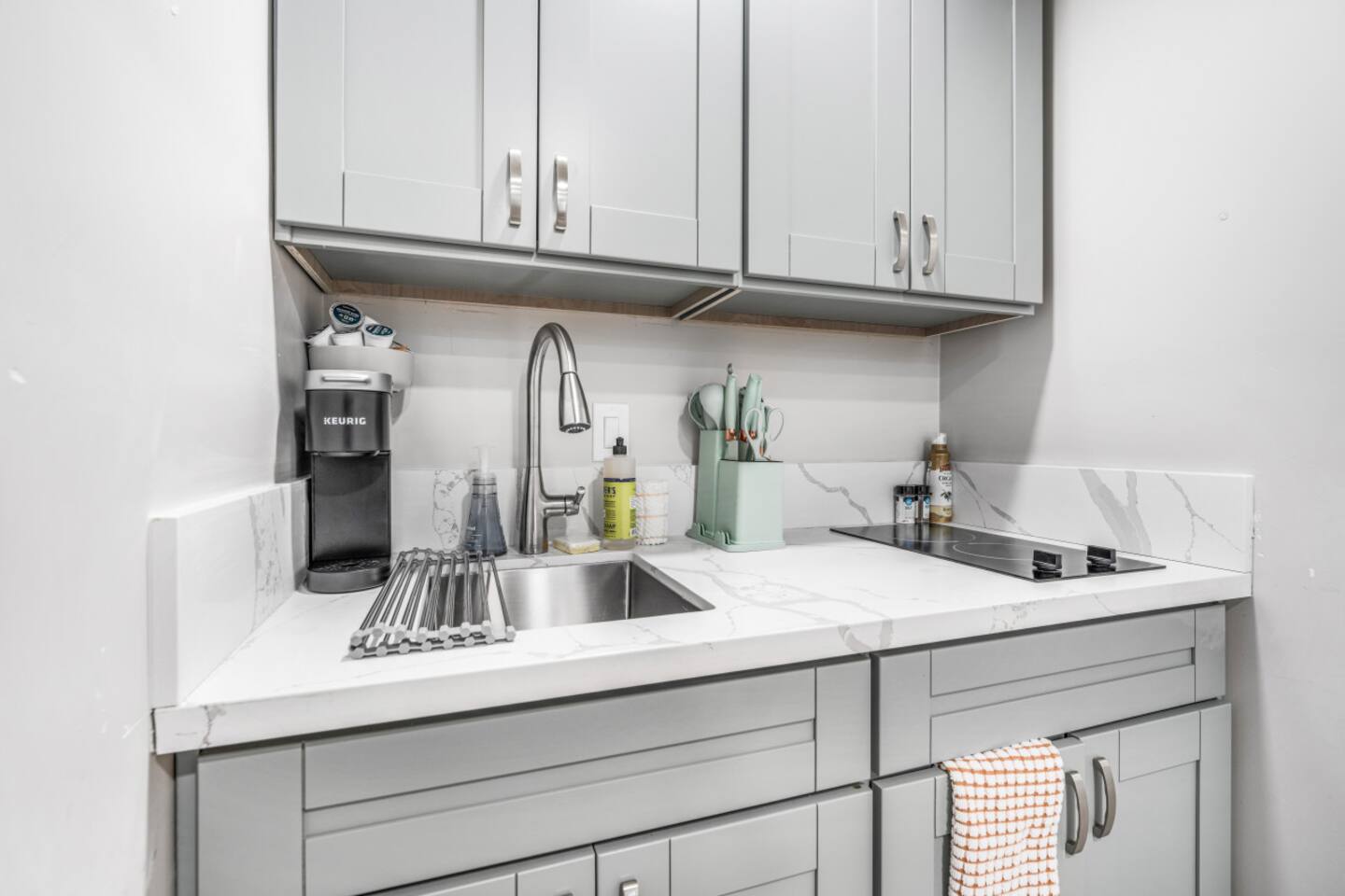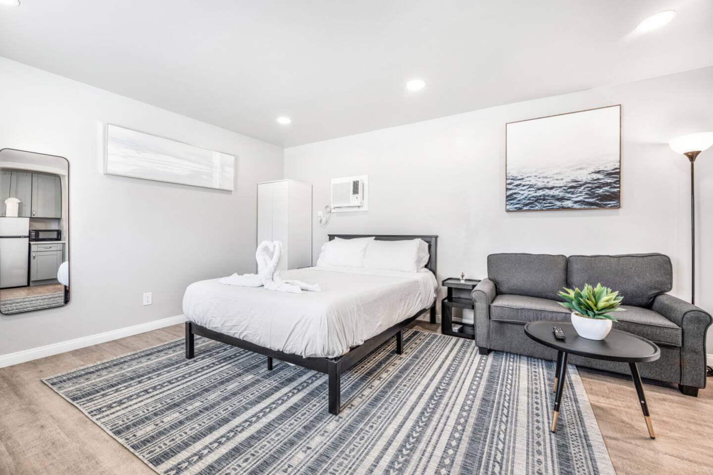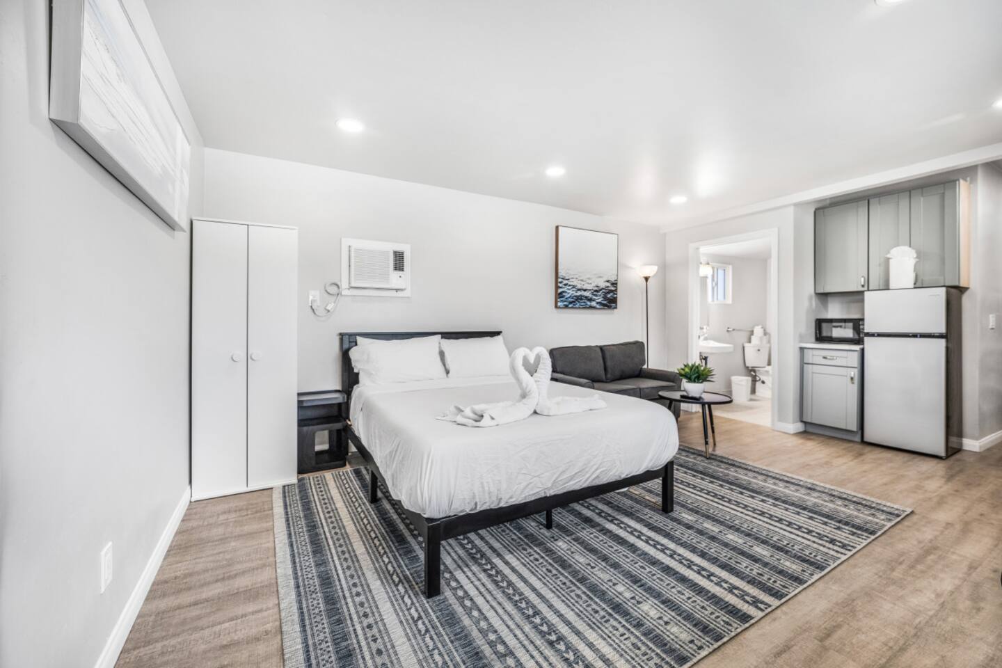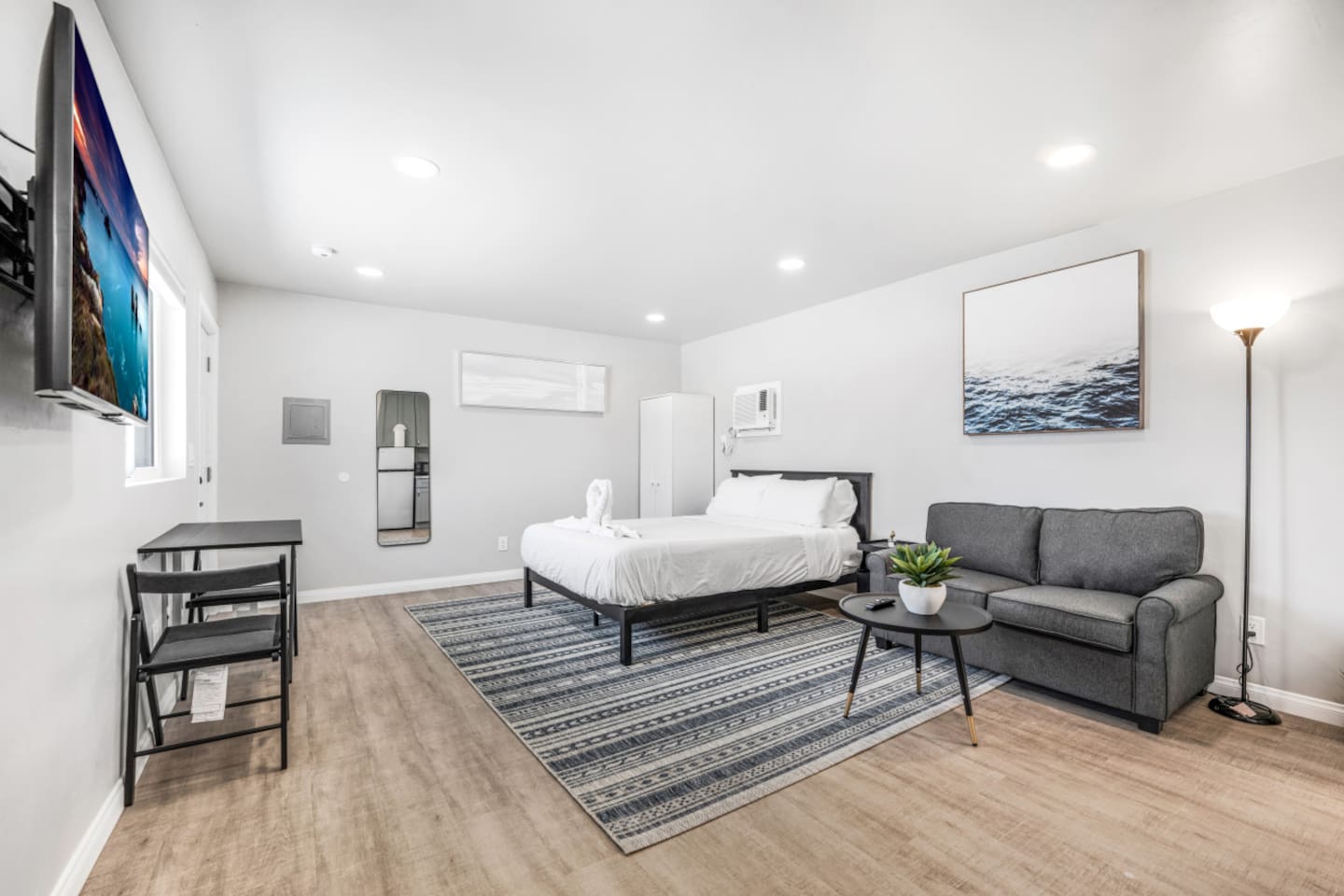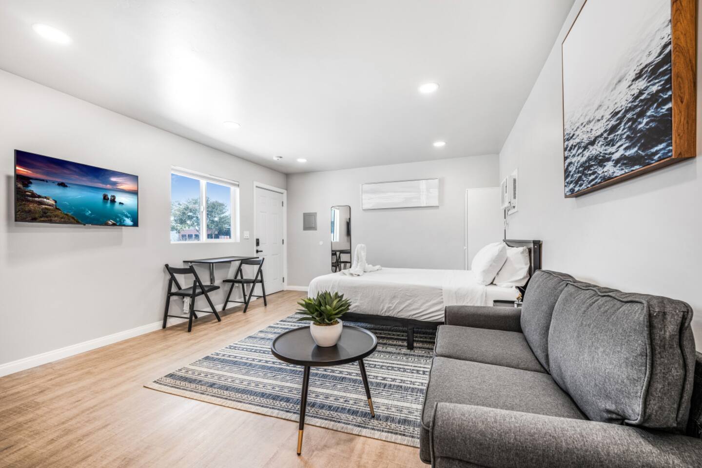 Welcome to our spacious studio in El Cajon! Perfect for up to 3 guests, it features a queen bed, a couch with a pull-out twin bed, and a full bathroom with walk-in shower. Enjoy a well-equipped kitchen with an induction stove (no oven). Centrally located with excellent freeway access, this studio is ideal for both short and extended stays. Experience comfort and convenience in a fully accessible space. Book now for a memorable stay!