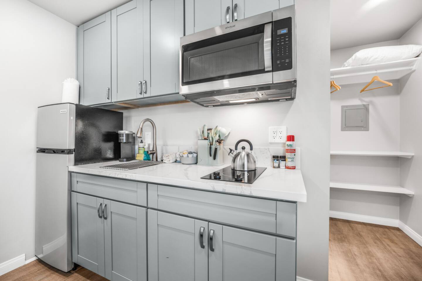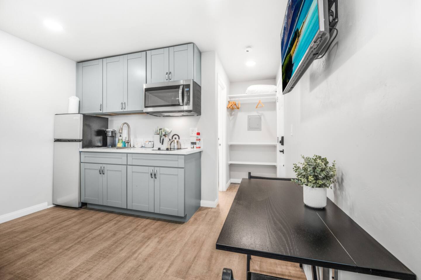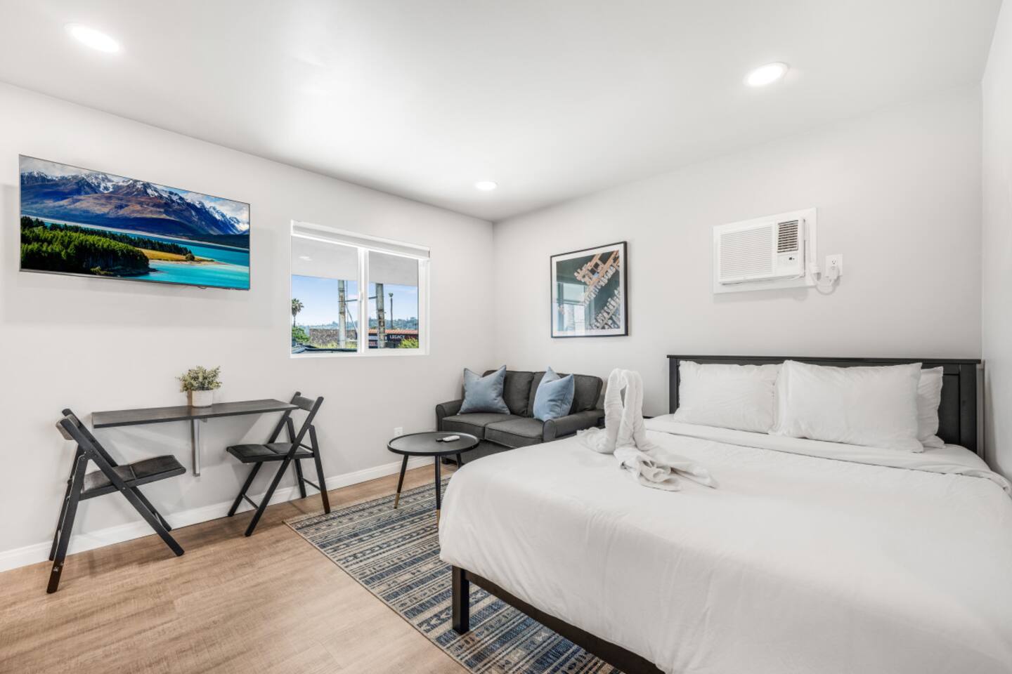 Welcome to our spacious studio in El Cajon! Perfect for up to 3 guests, it features a queen bed, a couch with a pull-out twin bed, and a full bathroom with walk-in shower. Enjoy a well-equipped kitchen with an induction stove (no oven). Centrally located with excellent freeway access, this studio is ideal for both short and extended stays. Experience comfort and convenience in a fully accessible space. Book now for a memorable stay!