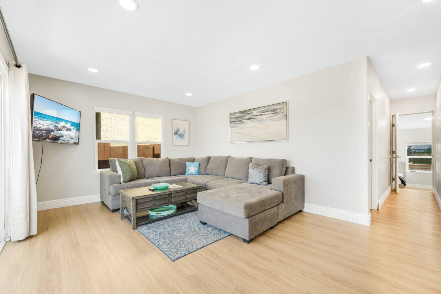 Welcome to our coastal oasis in the charming neighborhood of Ocean Beach, San Diego! Our beautifully designed property is the perfect place to escape the hustle and bustle of everyday life and experience the laid-back, beachy vibe of this vibrant community. A/C wall units in the living room and two of the bedrooms. The A/C and Heater allow you to have the optimal temperature for each room. Our property features three bedrooms and two bathroom, each thoughtfully decorated to capture the essence of coastal living. The bedrooms are outfitted with comfortable beds and plenty of storage, guaranteeing a great night's rest. The living room is designed to be a cozy and inviting space, perfect for unwinding after a day of exploring Ocean Beach. The fully equipped kitchen has all the modern appliances you need to cook up a delicious meal and enjoy it al fresco on the large balcony. The real highlight of our property is its prime location in the heart of Ocean Beach. You'll be just a short walk from the beach, where you can enjoy swimming, sunbathing, and beachcombing. The famous Ocean Beach Pier is just a short walk away, as well as the quaint main street, where you'll find plenty of unique shops, delicious restaurants, and bars. Our property also includes free Wi-Fi, so you can stay connected while you're on vacation. Whether you're looking to relax and unwind or explore all that Ocean Beach has to offer, our coastal oasis is the perfect place to call home. We look forward to hosting you in our beautiful home! Primary Bedroom – King bed with ensuite bathroom Bedroom 2 – King bed Bedroom 3 - King bed Living Room - One queen sized pull out sofa (sleeps 2) The layout: From main entrance you will find the living space with a large pull-out couch, large tv and some spectacular views of San Diego. Next to the living room is a spacious dining area with large table that comfortably seats 6 people with amazing views to enjoy sunsets while eating. Followed by three large bedrooms with king beds. The exterior of the home has multiple seating areas and spaces to enjoy the San Diego weather and sunshine. Off the living room on the front of the home is a large patio area with a BBQ and outdoor dining table to hang out with friends and family and watch the nightly Sea World firework show or the amazing California sunsets.