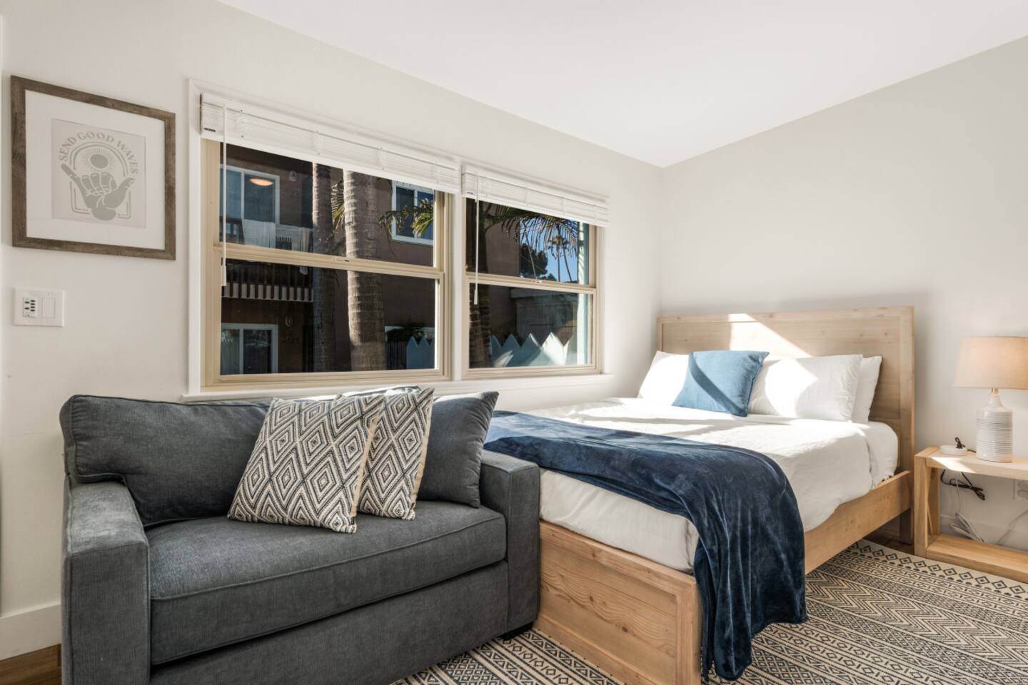 Welcome to our inviting and stylish studio nestled in the heart of Pacific Beach, San Diego! This thoughtfully designed space promises a comfortable and enjoyable stay, ensuring you experience the best of coastal living. Property Highlights: Size: Our spacious studio provides an open and airy atmosphere, perfect for relaxation and unwinding after a day of exploring the vibrant surroundings. Sleeping Comfort: Enjoy a restful night's sleep on our premium Bedgear queen beds and pillows, designed for ultimate comfort and support. Additional sleeping options are available with a convenient twin pull-out couch. Entertainment: Stay entertained with the smart TV, offering access to your favorite streaming services. Whether you want to catch up on your favorite shows or have a movie night, the entertainment options are at your fingertips. Decor: The studio is tastefully decorated to create a warm and welcoming ambiance. Thoughtful touches and stylish furnishings contribute to the overall comfort and aesthetic appeal. Kitchen: The fully equipped kitchen is ready for your culinary adventures. Whether you're preparing a quick snack or a gourmet meal, you'll find all the essential appliances and utensils at your disposal. Bathroom: The well-appointed bathroom is stocked with all the essentials, including fresh towels and toiletries, ensuring a pleasant and convenient experience. Connectivity: Stay connected with complimentary high-speed Wi-Fi throughout the studio. Whether you need to check emails, plan your day, or share your vacation moments on social media, staying connected is a breeze. Central Location: Our studio is strategically located in the heart of Pacific Beach, offering easy access to the area's beaches, restaurants, and attractions. Immerse yourself in the local vibe and explore everything this vibrant community has to offer. We've created a cozy and well-equipped haven for your stay in Pacific Beach. If you have any questions or need recommendations, don't hesitate to reach out. We look forward to hosting you and making your time in San Diego truly memorable!