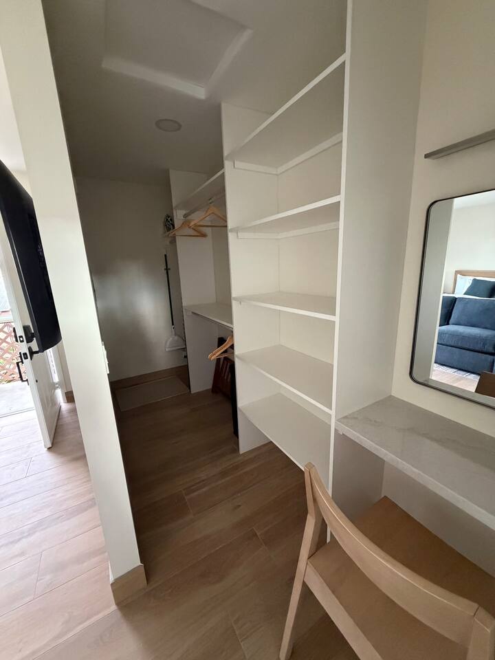 Welcome to a completely remodeled, light-filled second-floor studio in the heart of Pacific Beach. You’re just a short walk from the sand, boardwalk, surf breaks, sunset views, coffee shops, tacos, and the relaxed, lively PB energy everyone comes for. Arrival is effortless: one set of exterior stairs to reach the unit (no stairs inside the apartment), and no one above you for extra quiet and privacy. Keyless entry means you simply receive your personal code the morning of check-in and walk right in. Step inside to a bright, open floor plan with large windows that flood the space with natural light. At the center is a luxurious premium king BedGear bed — dressed in crisp hotel-quality linens and topped with pillows designed for deep, restful sleep. In front of the bed sits a comfortable sofa that pulls out into a full-size queen sleeper, easily sleeping 4 guests. Large nightstands with extension cords make overnight charging simple and tidy. Roll-down blackout shades cover every window, giving you total control over light and guaranteeing peaceful mornings no matter how late the PB nightlife runs. The full kitchen feels brand new and ready to use: stainless steel appliances, generous counter space, plenty of storage for anything you bring, and a Keurig coffee maker stocked with pods and sugar so your day starts right. Nearby is a proper dining table that seats four comfortably. The spa-like bathroom features a deep tub enclosed by a sleek sliding glass door, soft-close toilet, hair dryer, and a full set of bathroom essentials (shampoo, conditioner, body wash, body lotion). Just outside the bathroom you’ll find a handy desk/vanity area — perfect for work, makeup, or extra prep space. A large walk-in closet gives you tons of room for luggage, beach gear, clothes, and everything else you bring. We’ve thought of the little things too: beach chairs, Pack ’n Play, iron + ironing board, luggage rack, vacuum, and basic cleaning supplies are all provided. One dedicated parking spot is included — a true luxury in Pacific Beach. And to make life even easier (especially with little ones, beach towels, or packing up), guests have access to the on-site shared laundry room. We provide two stackable high-efficiency washers and dryers exclusively for our guests — completely complimentary, including detergent and dryer sheets. Pet-friendly and family-friendly, this fresh, modern studio feels clean, stylish, and perfectly set up for an effortless Pacific Beach getaway. Your ideal PB home base is ready — come make some memories!