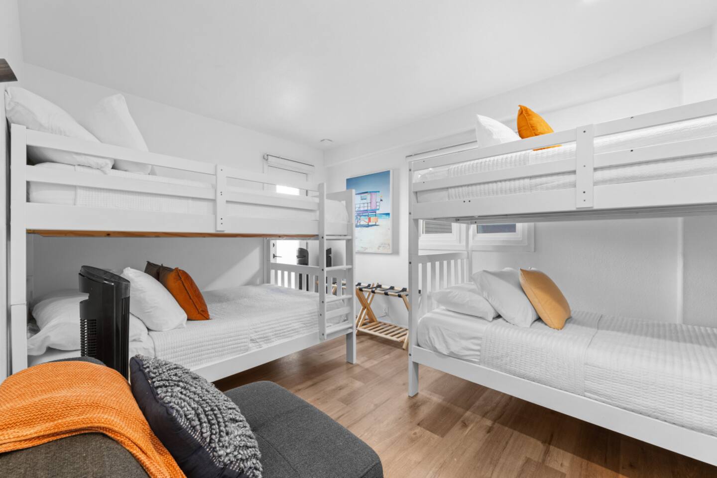 Welcome to our stunning Mission Beach getaway, where coastal charm meets modern luxury. This spacious 3-bedroom, 2.5-bathroom vacation rental is spread across two floors of a duplex(top floor home), offering ample space and comfort for your group. First Floor: Bunk bedroom, queen bedroom, laundry room and full bathroom Second Floor: main bedroom w/ ensuite bathroom, living space, kitchen, private balcony, half bathroom. As you step inside and walk up the stairs, you'll be greeted by a beautifully furnished living area, complete with plush sofas and a large smart TV, perfect for cozy nights in with your loved ones. The adjacent dining area provides seating for six, ideal for family meals or friendly gatherings. Prepare delicious meals with ease in the fully equipped kitchen, featuring stainless steel appliances, granite countertops, and all the essentials you need. And when it's time to unwind, head outside to the private patio, where a BBQ grill awaits, offering the perfect setting for cookouts and sunset dinners. Retreat to the comfort of our inviting bedrooms, each thoughtfully designed to provide a peaceful haven for rest and relaxation after a day of beachside fun. The main bedroom, located upstairs, boasts a luxurious king-size bed with plush linens and pillows, ensuring a restful night's sleep. Guests will also appreciate the convenience of the ensuite bathroom, featuring a spacious shower for added comfort and convenience. The secondary bedroom, located on the first floor offers a cozy queen-size bed, perfect for unwinding after a day of exploring the vibrant streets of Mission Beach. With soft bedding and ample storage space, this bedroom provides a comfortable retreat for guests to recharge and rejuvenate. Ideal for families or groups traveling with children, the third bedroom features 3 bunk beds, providing plenty of sleeping space for your guests. In addition to the modern comforts of home, our vacation rental also provides beach gear for your convenience, including chairs, umbrellas, and towels. And with a washer and dryer located within the unit, keeping up with laundry is a breeze, allowing you to spend more time enjoying your vacation. Located just steps from Belmont Park and the beach, this vacation rental offers unbeatable access to all the excitement of Mission Beach. Whether you're riding the waves, exploring local shops and restaurants, or simply soaking up the sun, you'll find endless opportunities for adventure right outside your door. Parking: There is additional parking in front of the home. It is free street parking, but you CAN'T park there Monday-Thursday/Friday 8am-10am. Please read all street signs carefully. Don't miss out on the ultimate San Diego getaway at our Mission Beach retreat. Book now and start making memories that will last a lifetime! Transient Occupancy Registration Certificate Numbers 518498 License Number STR-03654L