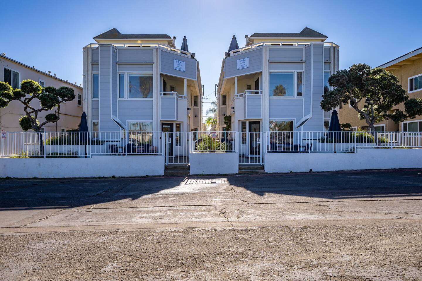 Welcome to our stunning Mission Beach getaway, where coastal charm meets modern luxury. This spacious 3-bedroom, 3-bathroom vacation rental is spread across two floors of a duplex, offering ample space and comfort for your group. As you step inside, you'll be greeted by a beautifully furnished living area, complete with plush sofas and a large smart TV, perfect for cozy nights in with your loved ones. The adjacent dining area provides seating for six, ideal for family meals or friendly gatherings. Prepare delicious meals with ease in the fully equipped kitchen, featuring stainless steel appliances, granite countertops, and all the essentials you need. And when it's time to unwind, head outside to the private patio, where a BBQ grill awaits, offering the perfect setting for cookouts and sunset dinners. Retreat to the comfort of our inviting bedrooms, each thoughtfully designed to provide a peaceful haven for rest and relaxation after a day of beachside fun. The main bedroom, located upstairs, boasts a luxurious king-size bed with plush linens and pillows, ensuring a restful night's sleep. Guests will also appreciate the convenience of the ensuite bathroom, featuring a spacious shower for added comfort and convenience. The secondary bedroom, located on the main floor offers a cozy queen-size bed, perfect for unwinding after a day of exploring the vibrant streets of Mission Beach. With soft bedding and ample storage space, this bedroom provides a comfortable retreat for guests to recharge and rejuvenate. Ideal for families or groups traveling with children, the third bedroom features two twin bunk beds, providing plenty of sleeping space for younger guests. In addition to the modern comforts of home, our vacation rental also provides beach gear for your convenience, including chairs, umbrellas, and towels. And with a washer and dryer located within the unit, keeping up with laundry is a breeze, allowing you to spend more time enjoying your vacation. Located just steps from Belmont Park and the beach, this vacation rental offers unbeatable access to all the excitement of Mission Beach. Whether you're riding the waves, exploring local shops and restaurants, or simply soaking up the sun, you'll find endless opportunities for adventure right outside your door. Parking: There is additional parking in front of the home. It is free street parking, but you CAN'T park there Monday-Thursday/Friday 8am-10am. Please read all street signs carefully. Don't miss out on the ultimate San Diego getaway at our Mission Beach retreat. Book now and start making memories that will last a lifetime! Transient Occupancy Registration Certificate Numbers 635962 License Number STR-03653L