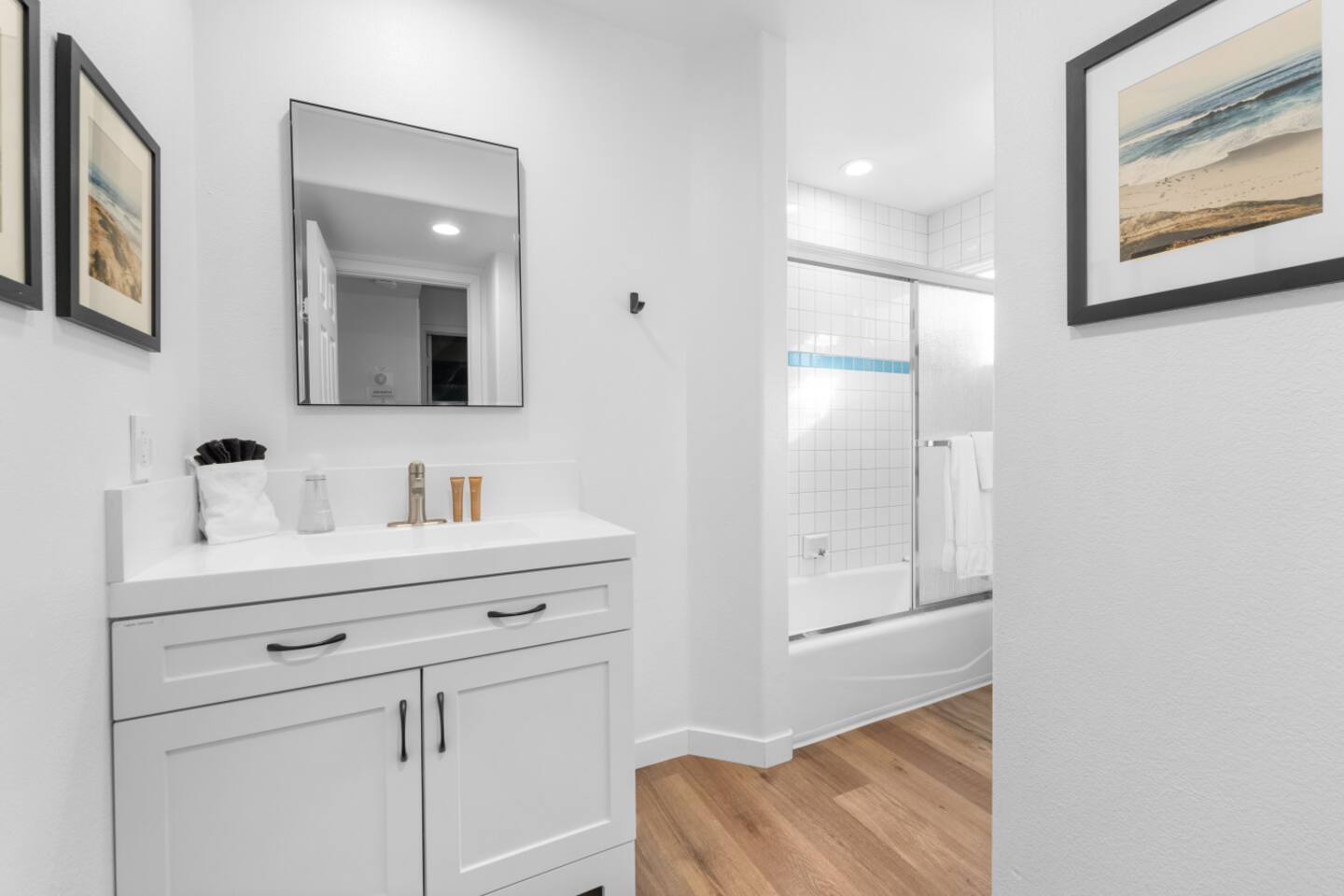 WALK/BIKE/eSCOOTERS: The best of the beach community is easily walkable or an easy bike ride at most. This location is the epicenter of the San Diego beaches, right along the best section of Mission Bay in the heart of Mission Beach. CAR RENTAL/PARKING: Your rental comes complete with a two-car private tandem garage, but unless you are planning on taking day trips outside of the city, we HIGHLY recommend uber/lyft for airport transport or venturing beyond the immediate area. The wait is never longer than 1-3 minutes and the fare is usually significantly less than parking would be. Parking is very limited and quite expensive in most of the city. PUBLIC TRANSPORTATION: Bus stop nearby at Belmont Park. Unless you've visited the area you may not realize just how great this location is.... you are walking distance to dozens of rooftop restaurants, beachfront bars, coffee shops, and even fine dining right on the water. Surf shops, watersport rentals, e-scooters, groceries, and fitness studios are also steps away.