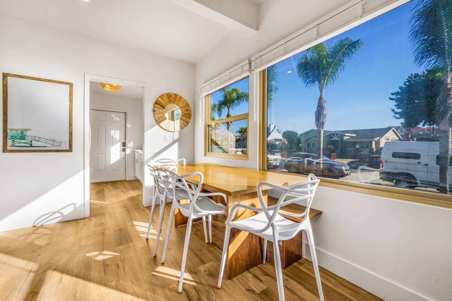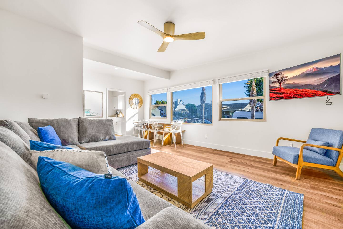 Discover the ultimate Pacific Beach getaway! Our Airbnb enclave offers four chic studios with king beds, pull-out couches, kitchens, and bathrooms. Additionally, a two-bedroom home features a king bed, two queens, and a pull-out couch. Each room also has a mini split AC/heater. With a combined capacity for 24 guests, it's perfect for group retreats. Enjoy the vibrant Pacific Beach scene, just moments away from beaches and attractions. Book now for a stylish and comfortable stay in San Diego!