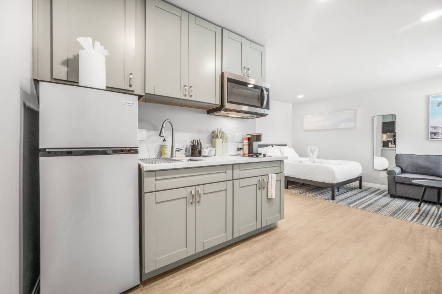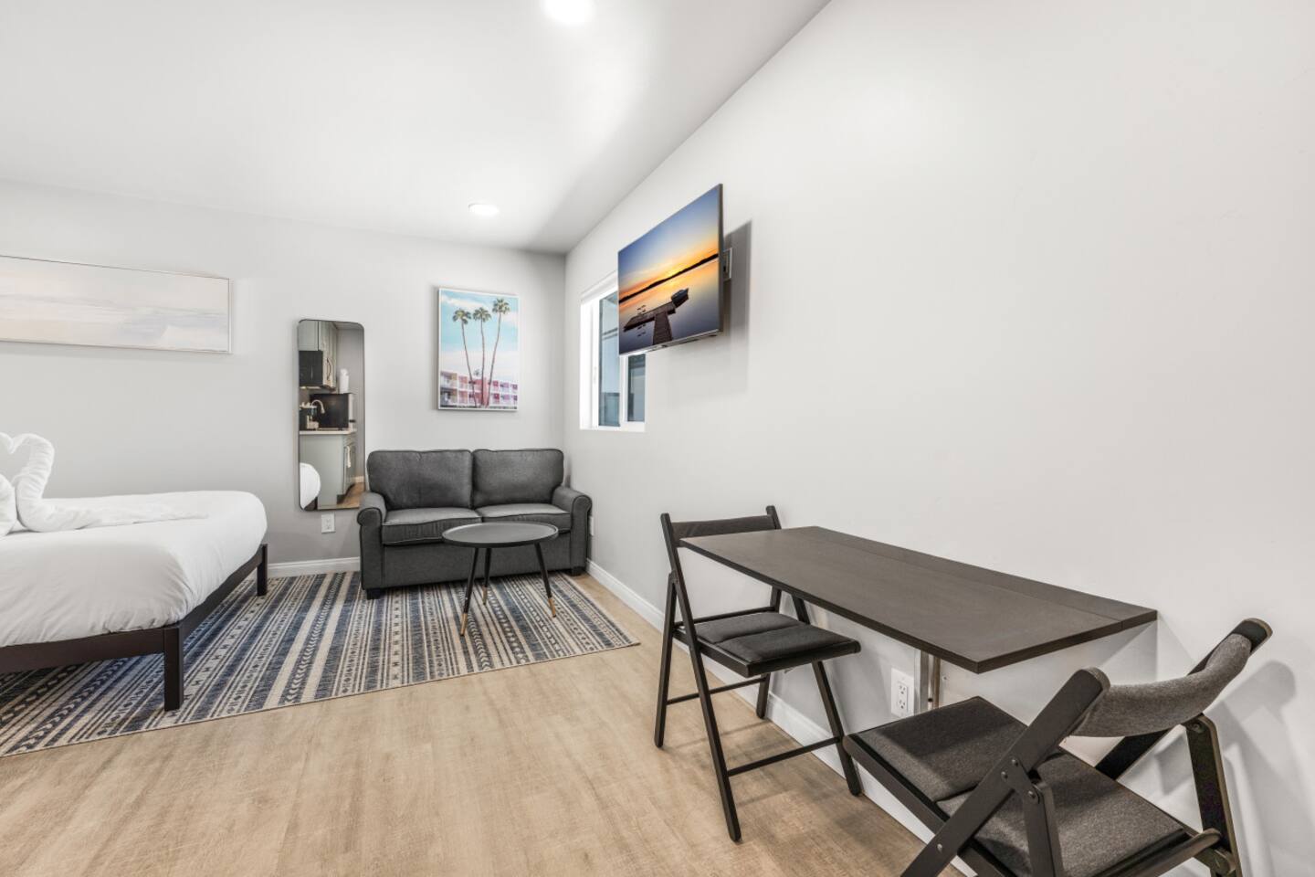 This charming studio in El Cajon, San Diego, offers the perfect blend of comfort and convenience. Features: Studio Layout: Open and inviting space with a kitchen. Comfortable Sleeping Arrangements: Twin pull-out couch, comfortably sleeps3 guests. Parking Included: Hassle-free parking for your convenience. Central Location: Ideally situated with easy access to major freeways, making it perfect for exploring SD Great Freeway Access: Quick and easy routes to all major attractions and destinations.