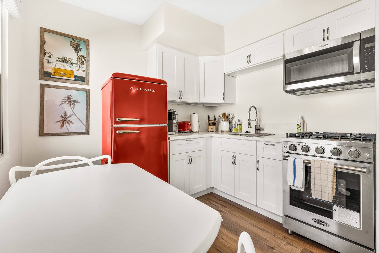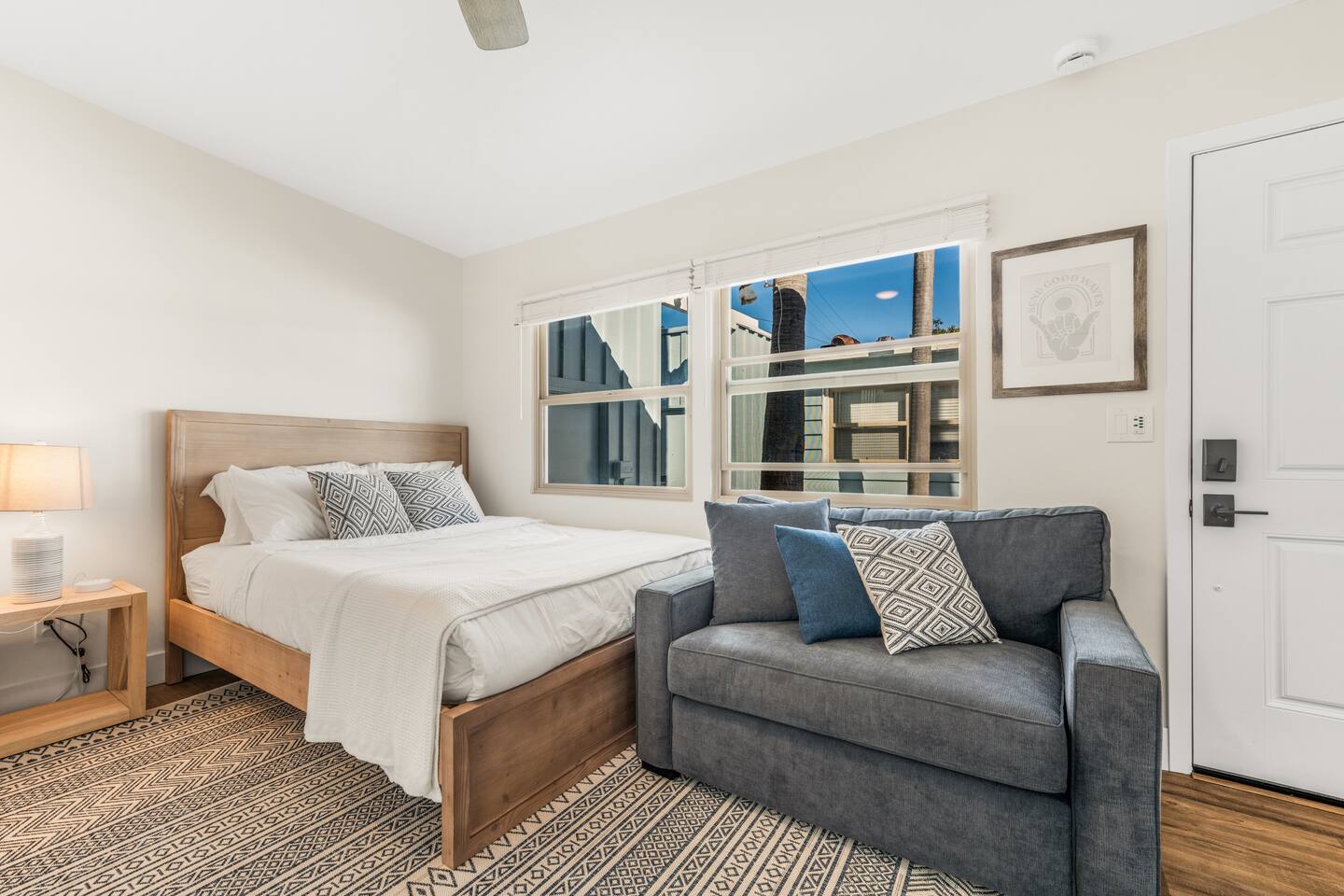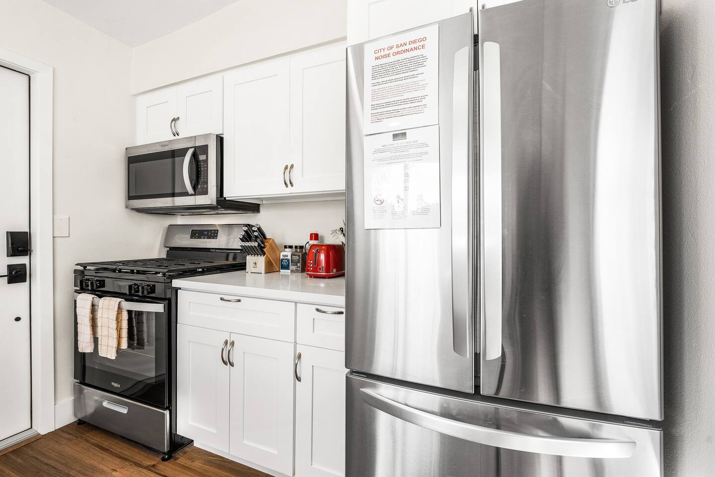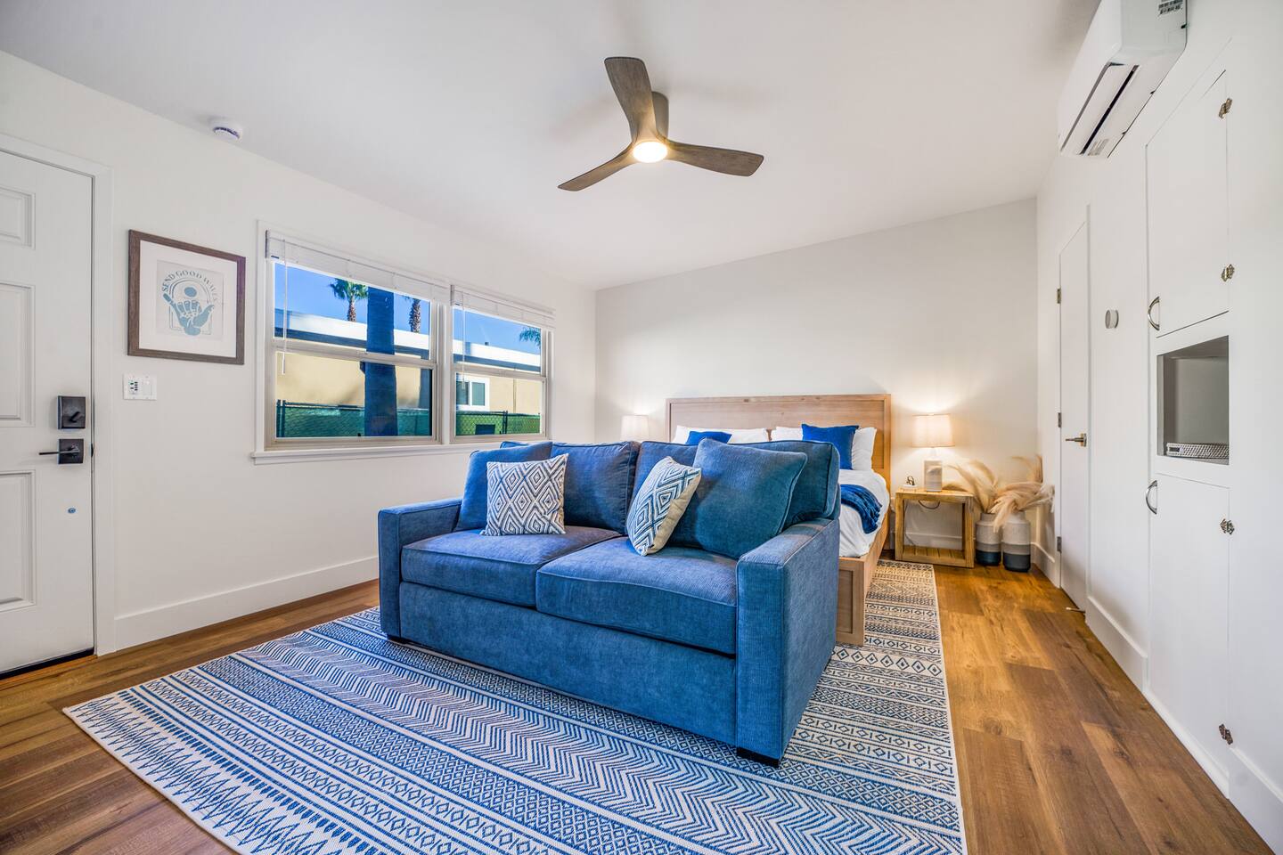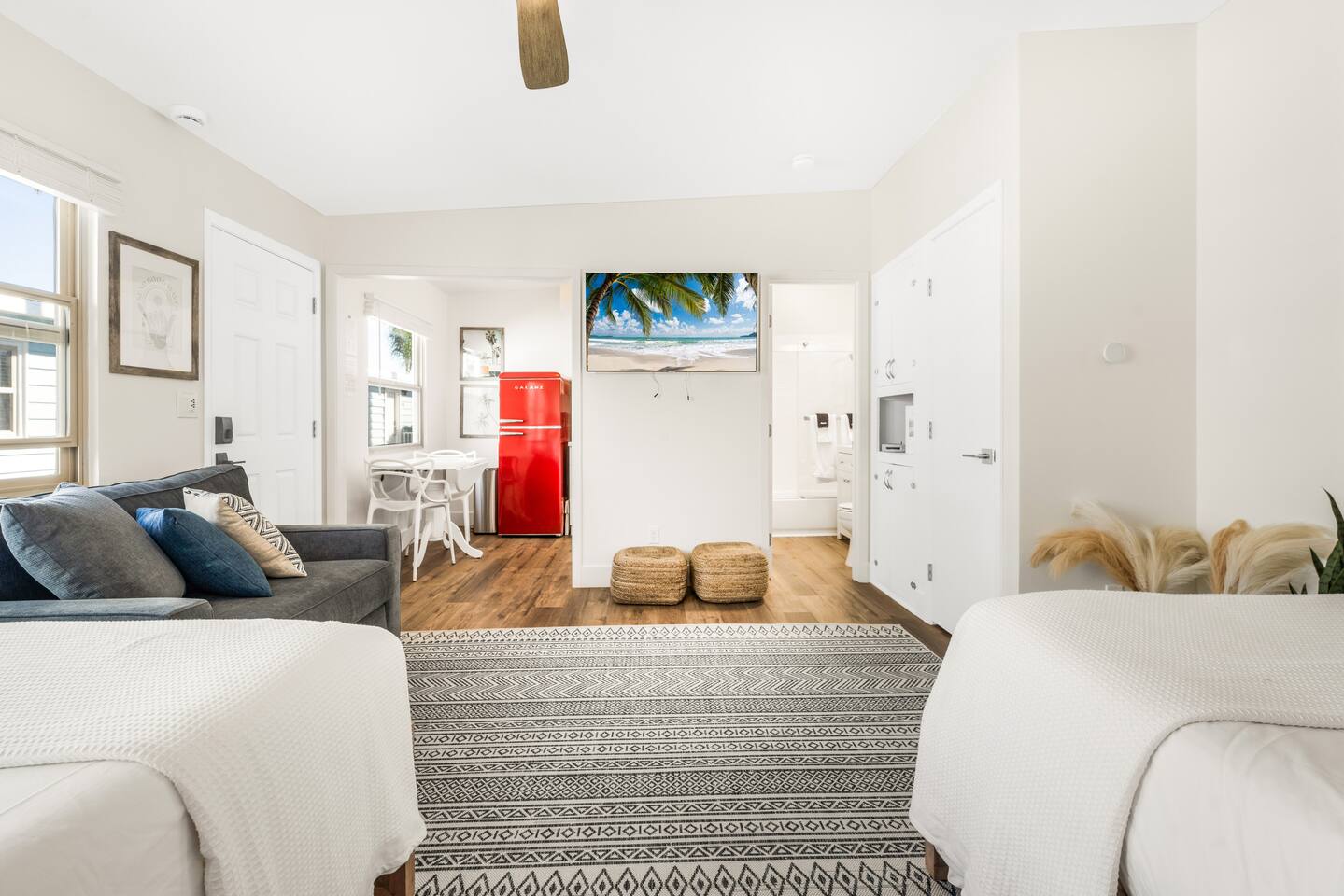 During your stay, you'll have access to 8 large studios and 2, 2-bedroom homes, which includes: The spacious sleeping area with a comfortable king-size and queen-size beds. The cozy living space featuring a sofa bed for additional guests. (full size for four studios. twin size for four studios, and queen size for 2bed) A fully equipped kitchen in each home with appliances and cookware for your culinary needs. The full bathroom stocked with essential amenities. Hotel-quality linens, beach towels and bathroom essentials for your comfort. Feel free to make yourself at home in our Pacific Beach studio. Enjoy the entire space and make the most of your stay!