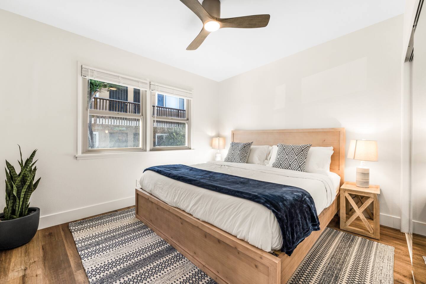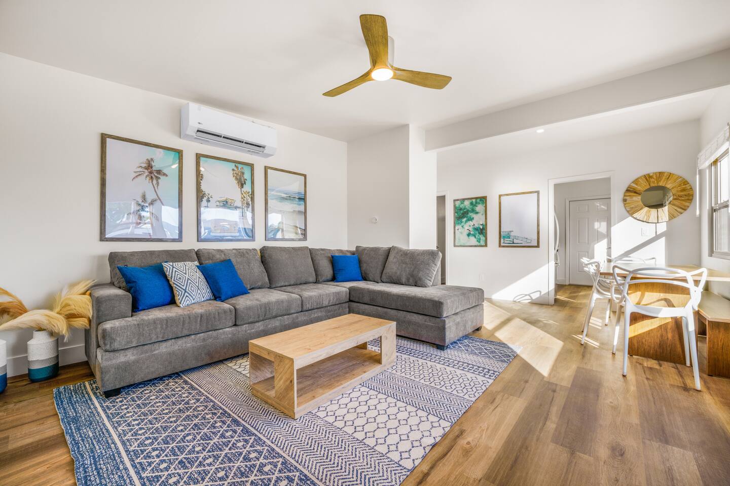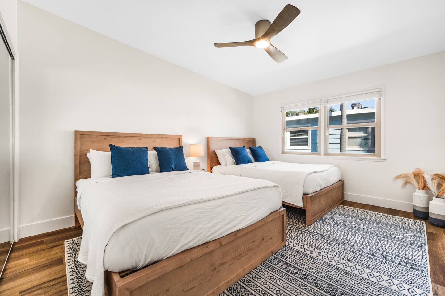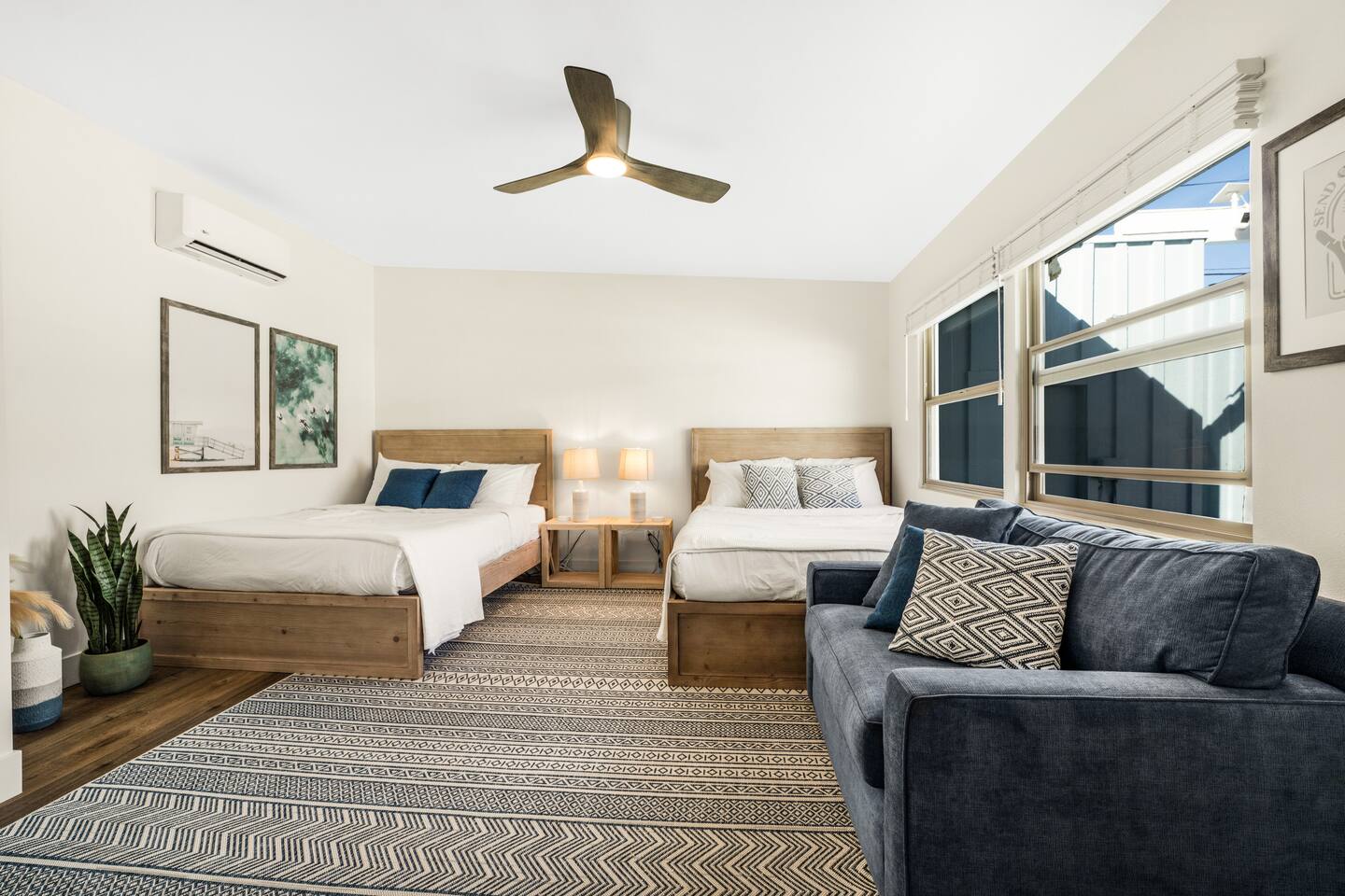 Discover the ultimate Pacific Beach getaway offering eight studios and two, 2-bedroom homes combined into one rental w/ AC. Four studios with king beds and pull-out sofas. Four studios with dual queen beds and pull-out sofas. Two 2-bedroom homes with a king bed, two queens, and a pull-out sofa each. A combined capacity for 52 guests, it's perfect for group retreats. Enjoy the vibrant Pacific Beach scene, just moments away from beaches and attractions. Book now for a perfect stay in San Diego!