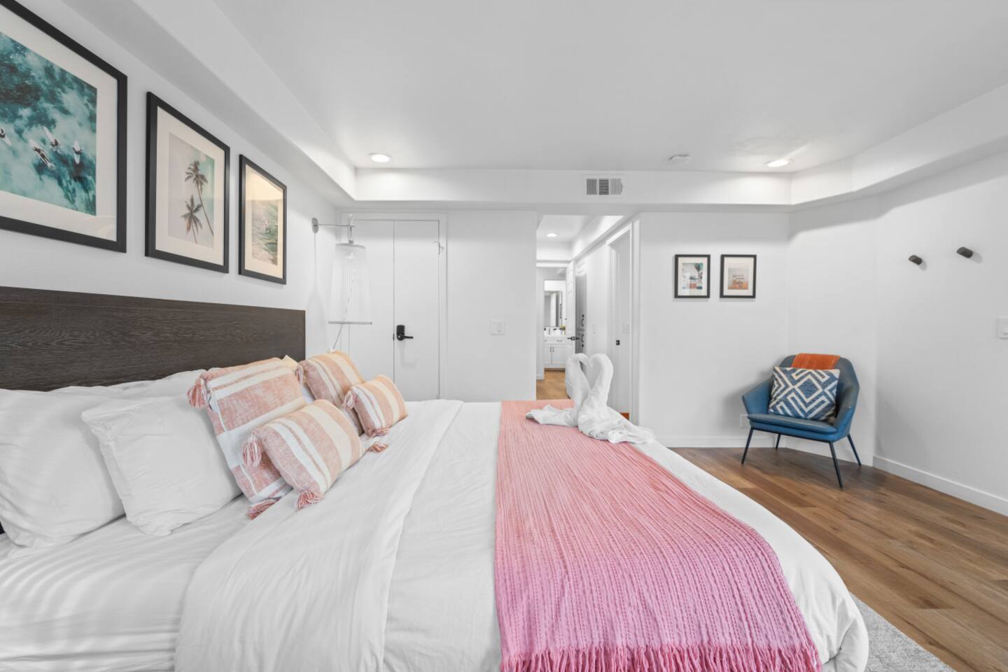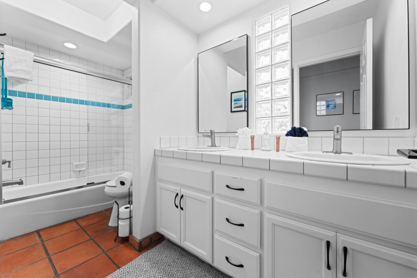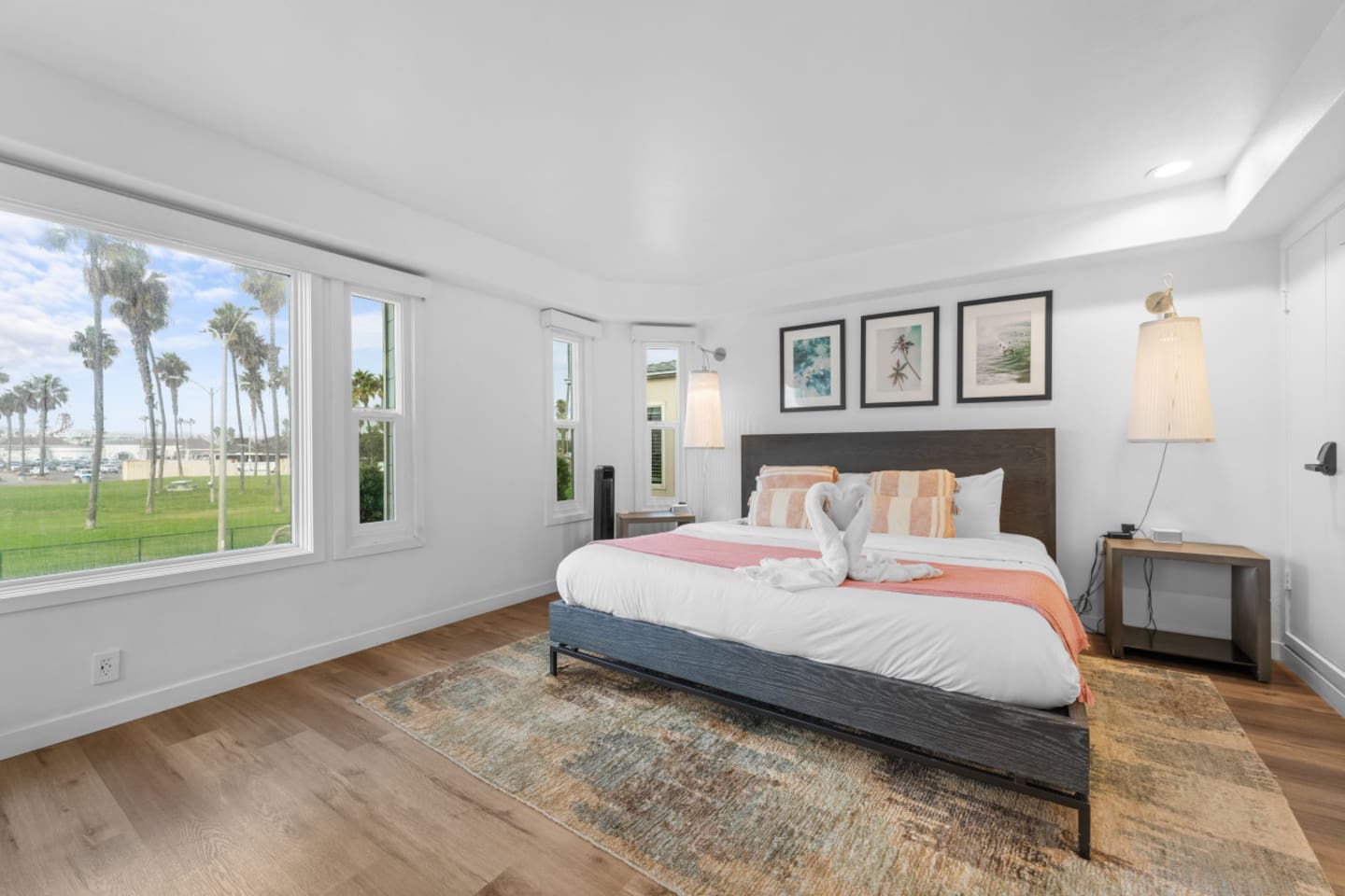 Welcome to our expansive quad-home vacation rental, designed to comfortably host families and large groups, offering plenty of space, privacy, and stunning views of Belmont Park and the beach. There are two sets of the following, the building mirrors the other: First Home (2-Story, 3-Bedroom, 3-Bath) Upon entering the first home, you'll walk into an inviting open-concept living area featuring a spacious dining table, a comfortable seating area with a large TV, and a fully equipped kitchen with modern appliances, ideal for group meals. The room is flooded with natural light, thanks to the large windows that overlook the outdoor patio. On the ground floor, there’s a cozy bedroom with a queen bed, perfect for guests who prefer easy access to the main living space. Adjacent to the bedroom is a full bathroom, conveniently located for both guests and those in the common areas. From this level, you can access the garage, offering secure parking and extra storage for your beach gear. Upstairs, a large laundry closet sits at the top of the stairs for easy access. You'll find a bunk room with two sets of bunk beds, ideal for kids or friends traveling together. A full bathroom with a shower/tub combo is located just outside the bunk room, providing convenience for all upstairs guests. The highlight of the second floor is the main suite—a spacious retreat featuring a luxurious king bed, ample closet space, and an ensuite bathroom with dual vanities and a walk-in shower. The bedroom opens up to a private balcony, where you can enjoy your morning coffee while taking in views of Belmont Park and the nearby beach. The outdoor patio on the ground level is perfect for dining and relaxing. Equipped with a dining table, comfortable outdoor seating, and a BBQ, it’s a great spot to enjoy meals outside or unwind after a day at the beach. Second Home (3-Bedroom, 2.5-Bath) Situated directly above the first home, the second home offers additional space with a private entrance, perfect for larger groups who want to stay close but maintain some privacy. Upon entering, you'll walk through a hallway that leads to the bedrooms and bathrooms. On your left is a full bathroom and a laundry room with a washer and dryer. To the right is a bedroom with a queen bed, offering a quiet retreat for guests. At the end of the hall is a spacious bunk room, making it an excellent spot for families or kids. As you ascend the stairs, you'll be greeted by half bathroom and an open-plan living area with vaulted ceilings and large windows that offer sweeping views of Belmont Park and the beach. The kitchen is equipped with modern stainless-steel appliances, ample counter space, and everything needed to prepare meals for a large group. Adjacent to the kitchen is a dining area that seats eight, perfect for shared meals and game nights. The main bedroom is also located on the second floor and features a king bed, a walk-in closet, and an ensuite bathroom with a large walk-in shower and dual sinks. A private balcony off the main bedroom offers another quiet spot to relax and enjoy the views. The living area opens up to a large balcony, fully furnished with a lounge set, dining table, and BBQ. This space is perfect for outdoor entertaining, whether you're enjoying sunset views or grilling dinner after a day at the beach. Both homes are designed to provide a seamless combination of shared and private spaces, making them ideal for large families or groups looking for a comfortable beachside retreat. With stunning views, modern amenities, and plenty of room to relax, this property offers the perfect getaway. 7 miles from San Diego International Airport. PLEASE MESSAGE US BEFORE BOOKING TO CONFIRM AVAILABILITY, WE WILL GET BACK TO YOU QUICKLY :) Please note we require a 4 night minimum for weekends unless there is a last minute vacancy. We have one week minimums, Saturday - Saturday, June 20 through August 15. Winter holidays are also one week minimums, Thanksgiving is a 5 night minimum. Guest access Electronic lock access to home and access to four separate garages, each fitting two cars for total parking for 8 vehicles. Two private & enclosed 2 car side by side garages Height (at lowest point): 7 ft 4 inches Width: 16 ft Stall 1 length: 13 feet 5 inches Stall 2 length: 18 feet 5 inches Two private & enclosed 2 car tandem / stacked parking Height (at lowest point): 6 ft 9 inches Width: 8 ft Length: 35 feet Other things to note Coronavirus has been a worldwide concern and has affected all business including short term rentals. We have implemented extra precautions to ensure a worry free stay. We bleach the floors, sheets, towels, railings, door handles, remote controls, light switch and switch plates. We also provide Lysol wipes to keep your stay as virus and bacteria free as possible. Please note this is NOT a party house. No additional guests allowed in or near the property at any time. Please consider another listing if you want to entertain during your vacation. (Gatherings of all sizes currently mandated against. See below.) Strictly enforced noise curfew from 10PM-9AM daily No smoking in or around the property. There is a $1,000 fine for smoking on the property. No commercial use of the property including personal services, photo or video shoots or other business use. NO PETS our cleaner is allergic to pets, please consider another listing if you have a service animal or comfort dog. There is a $1,000 fine for unauthorized pets. Transient Occupancy Registration Certificate Numbers 635962, 518498, 635963, 636462 License Number STR-03653L STR-03654L STR-06031L STR-03655L