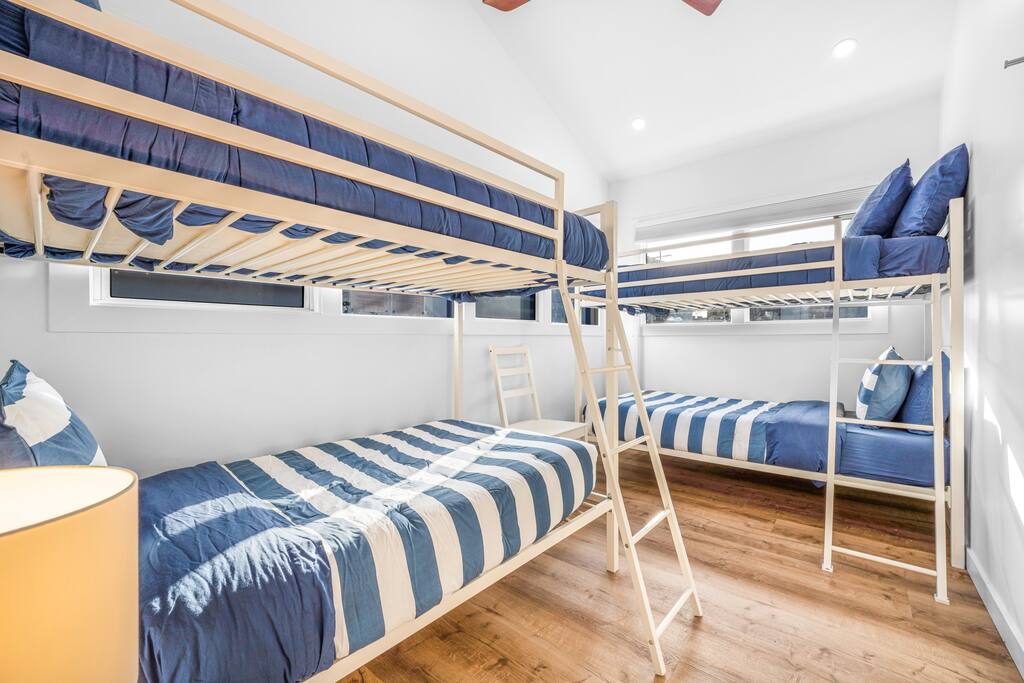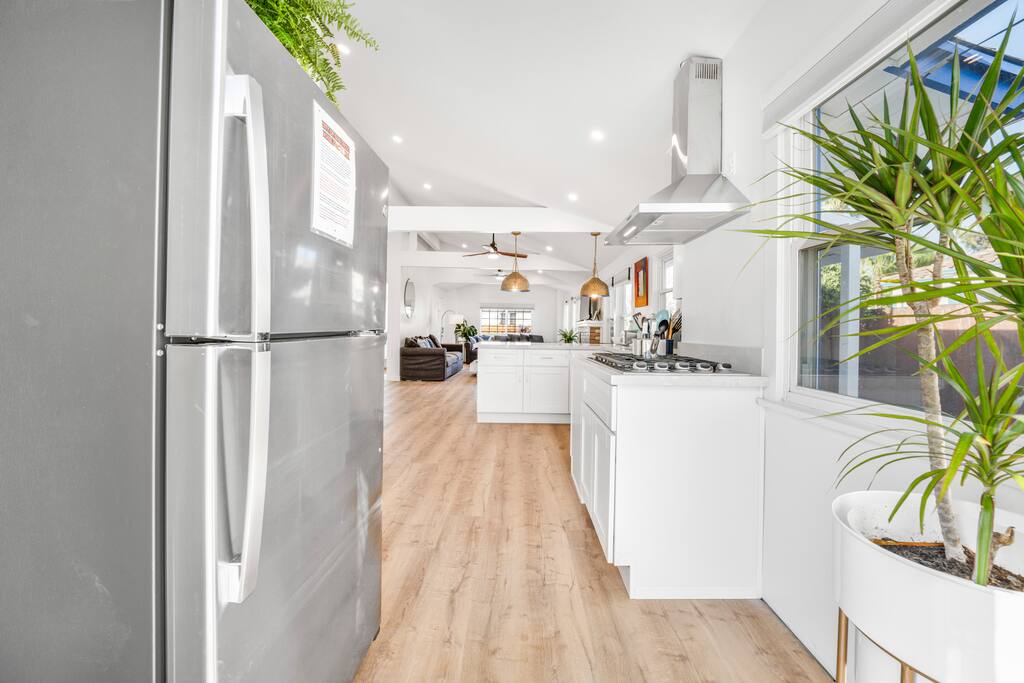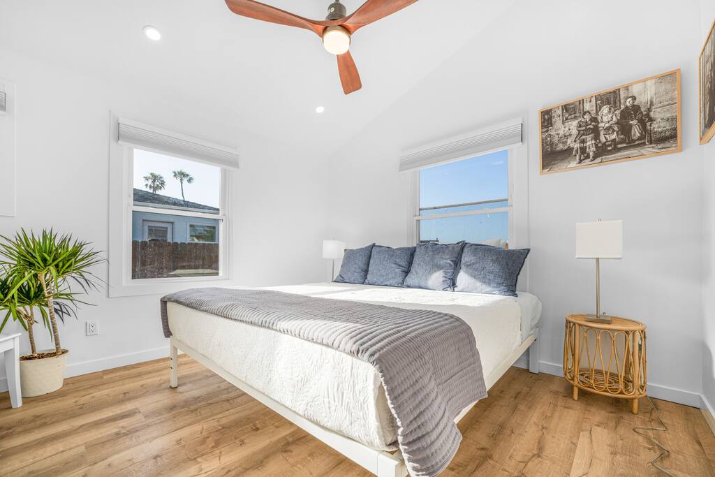 Welcome to the ultimate Ocean Beach experience! This freshly updated, single-level 3-bedroom, 1-bath vintage beach house sits on one of the best streets in the heart of OB, just a short walk from the sand, the iconic OB Pier, and the world-famous Dog Beach. You can literally hear the waves and smell the ocean air from the front porch. ★ THE HOUSE ★ Sleeping Arrangements (comfortably sleeps 8) Bedroom 1 (front): King bed Bedroom 2 (middle): Queen bed Bedroom 3 (back): x2 twin-over-twin bunk bed — perfect for kids or extra friends Full Bathroom Tub/shower combo, vanity with plenty of storage, fluffy towels, hair dryer, starter shampoo/conditioner/body wash. Living & Dining Open-plan living room with 55” Smart TV (Netflix, Disney+, YouTube TV, etc. — just log in to your own accounts), fast Wi-Fi. Fully Equipped Kitchen Gas stove/oven, full-size fridge, dishwasher, microwave, Keurig coffee maker, blender, toaster, pots/pans, dishes, spices, olive oil — everything you need to cook like home. Outdoor Living Massive, fully fenced private backyard to enjoy the San Diego weather! Convenience & Extras In-unit washer & dryer (detergent provided) Free tandem driveway parking for 2 cars (huge deal in OB!) Beach gear: beach chairs, umbrellas, foam surfboards and beach towels. Pack ’n Play available on request ★ LOCATION — LITERALLY THE BEST IN OB ★ 4-minute walk to the sand and Dog Beach (off-leash heaven for pups) 6–8 minutes on foot to Newport Avenue: Hodad’s burgers, OB Brewery, South Beach Tacos, Wonderland cocktails, Farmers Market (every Wednesday), live music, vintage shops, and sunrise-to-sunset people-watching 2-minute walk to Robb Field (tennis, skatepark, grassy fields) 5-minute bike ride or 15-minute walk to the bay side for paddle boarding and calmer water Easy drive to SeaWorld (8 min), Belmont Park (10 min), Sunset Cliffs (5 min), Point Loma, and downtown PET-FRIENDLY Dogs are family here! Up to 1 dogs of any size welcome PERFECT FOR Families, friend groups, digital nomads, surfers, dog parents, or anyone who wants to live the authentic Ocean Beach lifestyle — not just visit it. We’re local, responsive Superhosts who love this neighborhood and want you’ll feel that the second you walk in. The house is professionally cleaned and sanitized between every stay.
