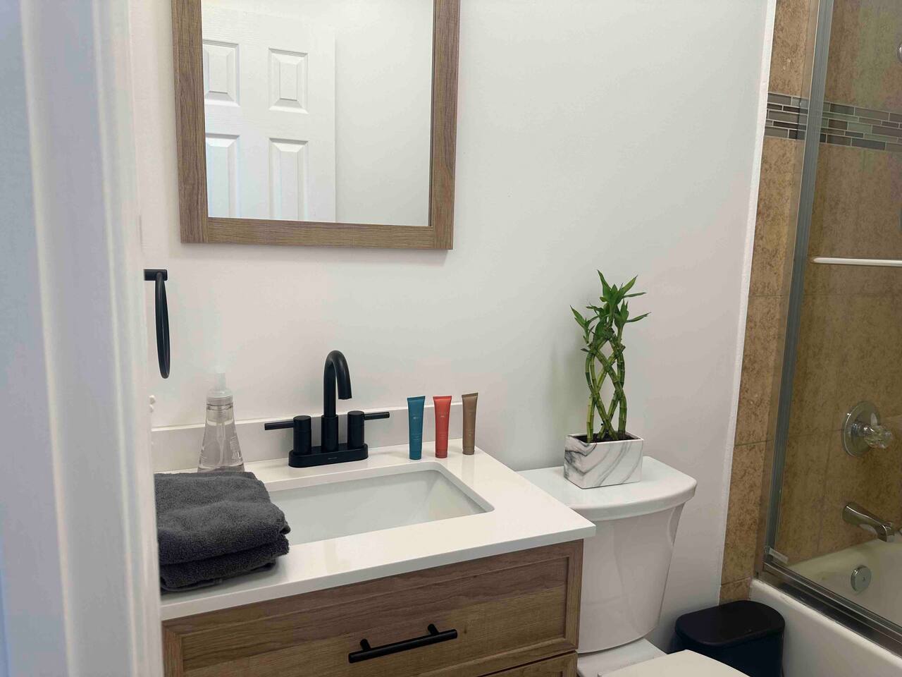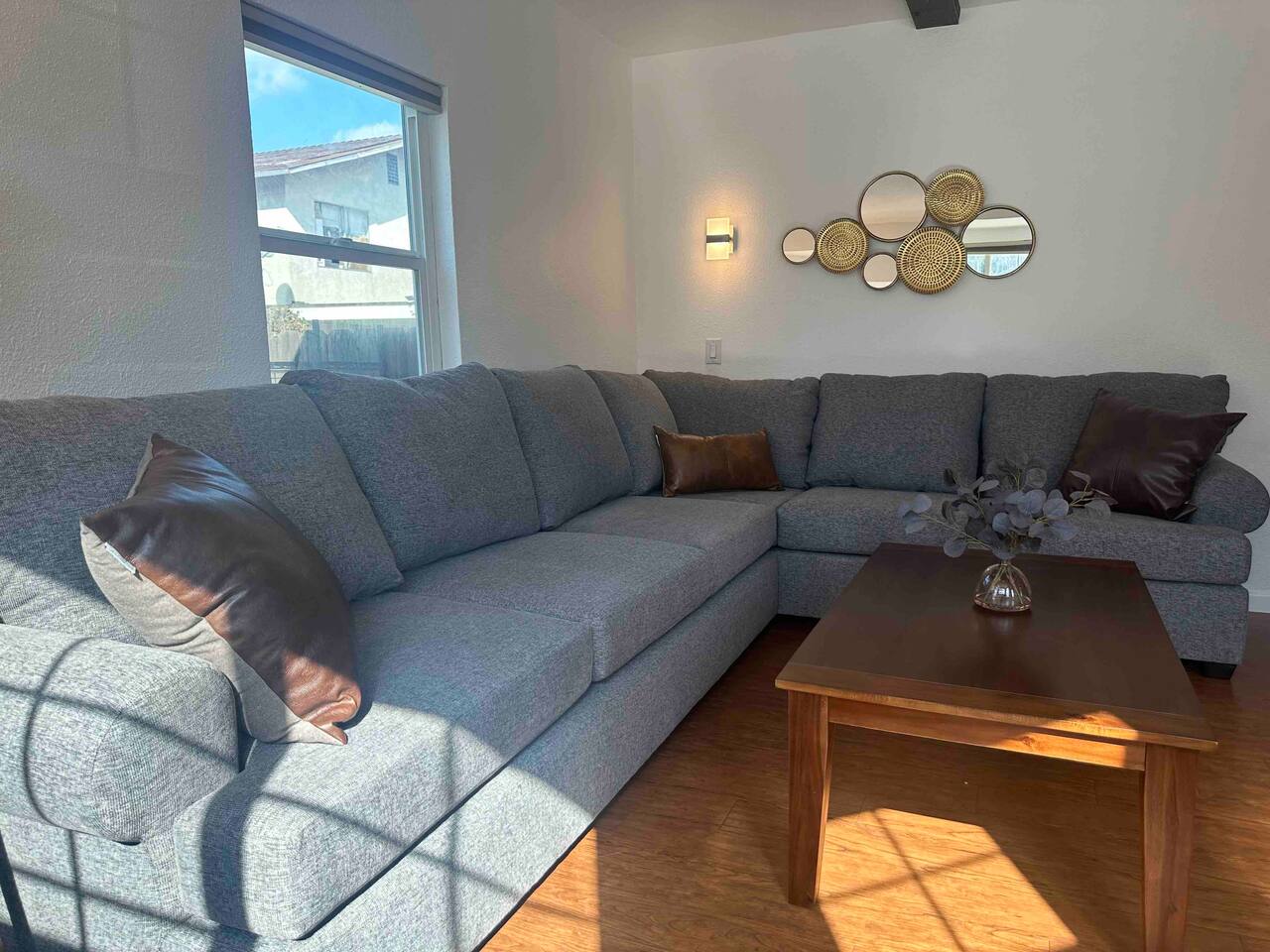 Welcome to our home, a beautifully updated and thoughtfully designed home that offers the ideal space for your San Diego getaway. From the moment you step inside, you’ll feel right at home in this modern retreat, complete with all the comforts and amenities you need for a relaxing stay. The spacious kitchen is fully stocked with all the cooking essentials, so you can prepare meals just like at home. It seamlessly flows into the cozy dining area, which comfortably seats four—perfect for family meals or casual dining. In the living room, you'll find a queen-sized pullout sofa, offering extra sleeping space for two guests. Whether you’re relaxing after a long day of sightseeing or enjoying a movie night, this space is perfect for unwinding. Both bedrooms are designed for comfort. The primary bedroom features a cozy queen-sized bed, while the second bedroom also has a queen-sized bed, offering plenty of space for guests to relax and sleep soundly. The freshly remodeled bathroom is spacious and modern, with a tub/shower combo that adds a touch of luxury and convenience. Our home ensures your comfort year-round with both A/C and heating, allowing you to stay cozy no matter the season. You'll also have access to a private laundry room with a washer and dryer, making longer stays even more convenient. For added convenience, the property offers gated parking in the driveway for two vehicles, with additional free street parking available nearby. This secure parking option ensures you won’t have to worry about finding a spot, whether you're coming home after a day at the beach or a night out. Whether you’re here for a quick weekend getaway or an extended stay, the home provides everything you need for a memorable San Diego experience. This home is perfect for families, friends, or anyone looking for a comfortable, convenient, and pet-friendly place to call home during their stay.