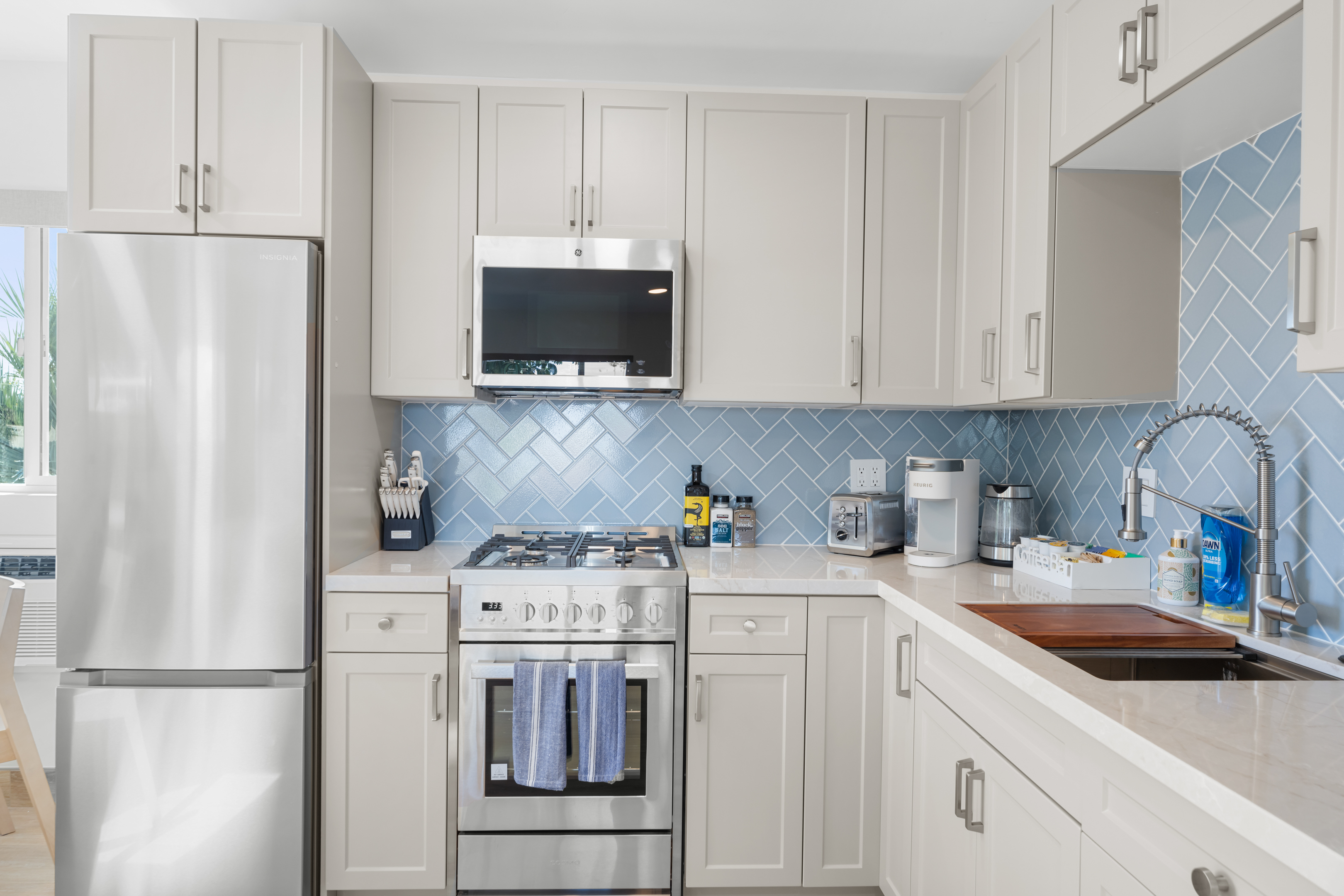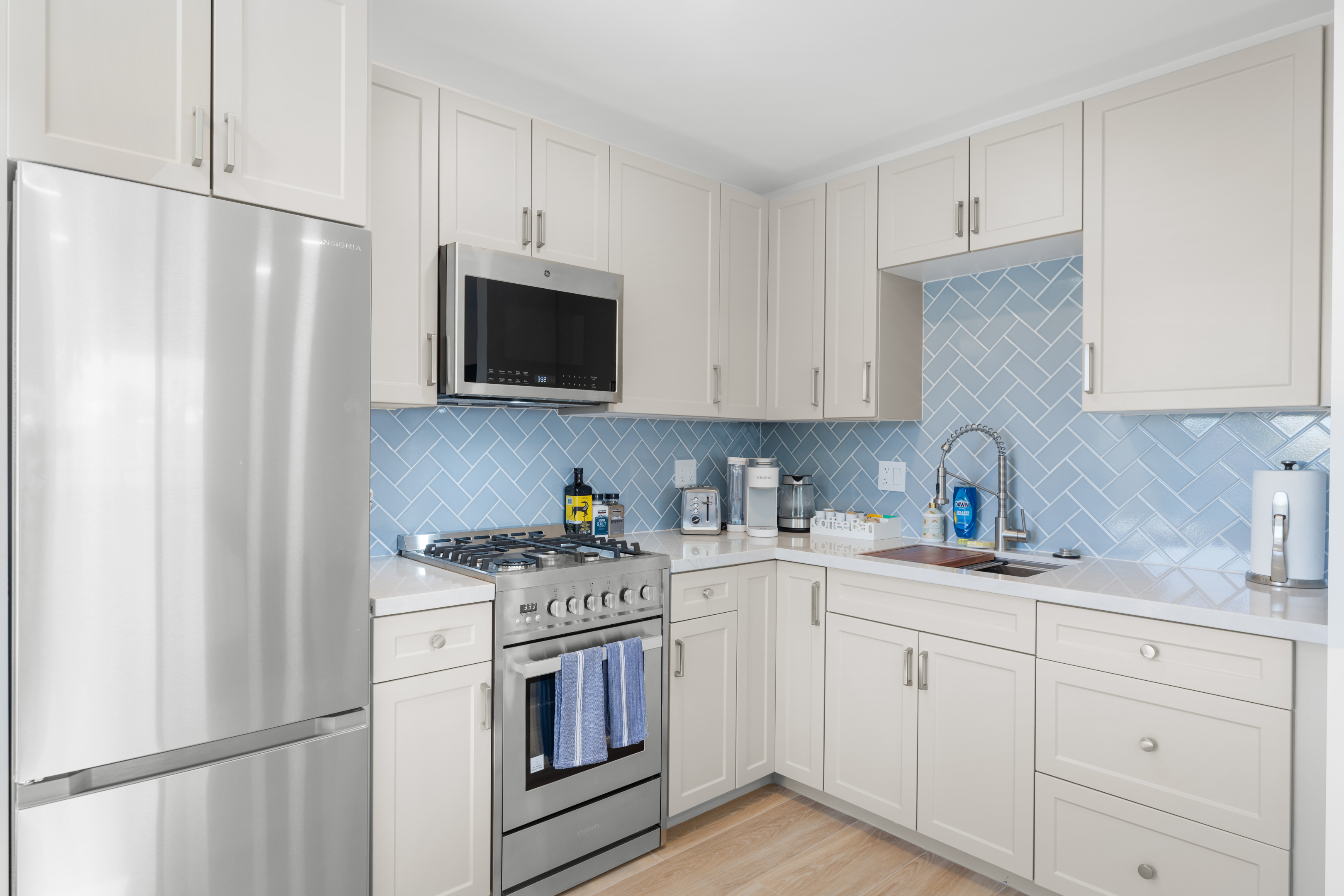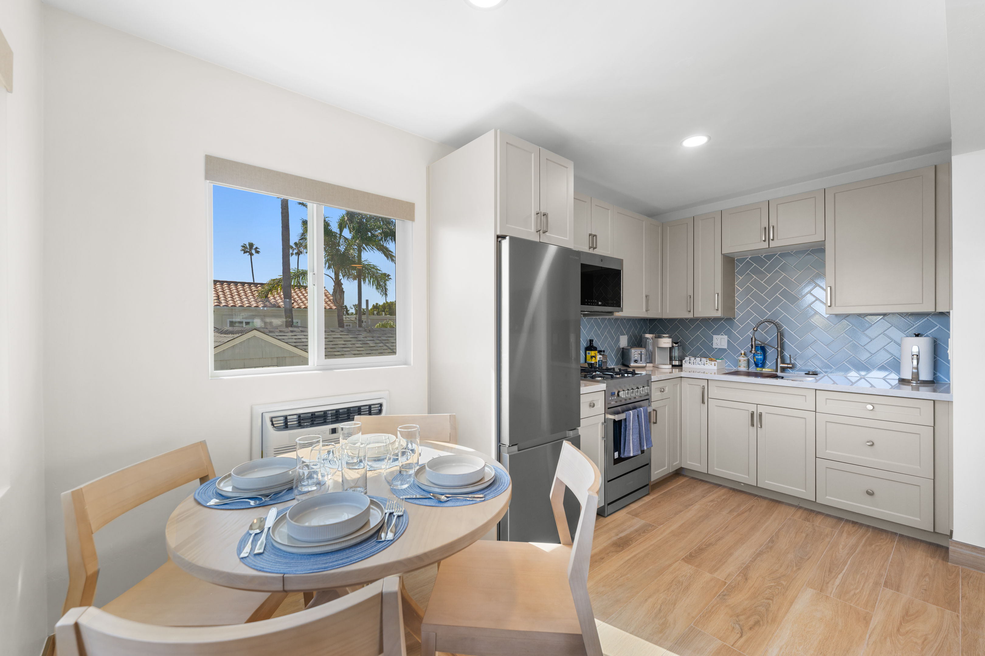 Welcome to a completely remodeled, light-filled second-floor studio in the heart of Pacific Beach. You’re just a short walk from the sand, boardwalk, surf breaks, sunset views, coffee shops, tacos, and the relaxed, lively PB energy everyone comes for. Arrival is effortless: one set of exterior stairs to reach the unit (no stairs inside the apartment), and no one above you for extra quiet and privacy. Keyless entry means you simply receive your personal code the morning of check-in and walk right in. Step inside to a bright, open floor plan with large windows that flood the space with natural light. At the center is a luxurious premium king BedGear bed — dressed in crisp hotel-quality linens and topped with pillows designed for deep, restful sleep. In front of the bed sits a comfortable sofa that pulls out into a full-size queen sleeper, easily sleeping 4 guests. Large nightstands with extension cords make overnight charging simple and tidy. Roll-down blackout shades cover every window, giving you total control over light and guaranteeing peaceful mornings no matter how late the PB nightlife runs. The full kitchen feels brand new and ready to use: stainless steel appliances, generous counter space, plenty of storage for anything you bring, and a Keurig coffee maker stocked with pods and sugar so your day starts right. Nearby is a proper dining table that seats four comfortably. The spa-like bathroom features a deep tub enclosed by a sleek sliding glass door, soft-close toilet, hair dryer, and a full set of bathroom essentials (shampoo, conditioner, body wash, body lotion). Just outside the bathroom you’ll find a handy desk/vanity area — perfect for work, makeup, or extra prep space. A large walk-in closet gives you tons of room for luggage, beach gear, clothes, and everything else you bring. We’ve thought of the little things too: beach chairs, Pack ’n Play, iron + ironing board, luggage rack, vacuum, and basic cleaning supplies are all provided. One dedicated parking spot is included — a true luxury in Pacific Beach. And to make life even easier (especially with little ones, beach towels, or packing up), guests have access to the on-site shared laundry room. We provide two stackable high-efficiency washers and dryers exclusively for our guests — completely complimentary, including detergent and dryer sheets. Pet-friendly and family-friendly, this fresh, modern studio feels clean, stylish, and perfectly set up for an effortless Pacific Beach getaway. Your ideal PB home base is ready — come make some memories! STR-13269L TOT: 659992
