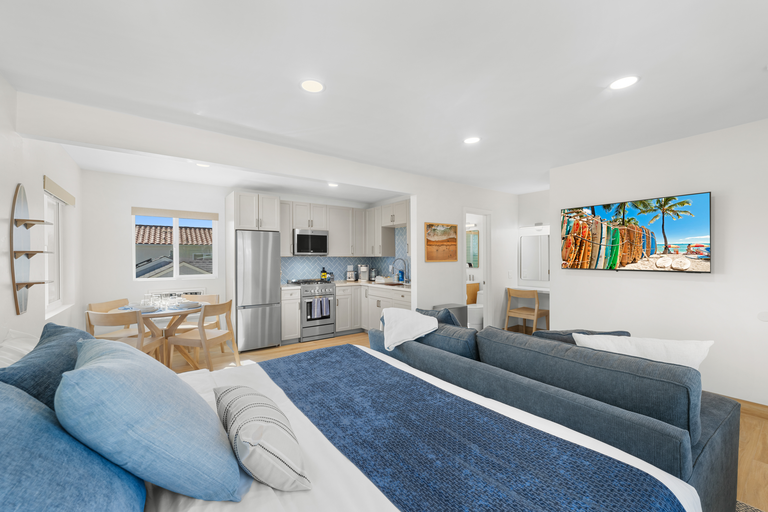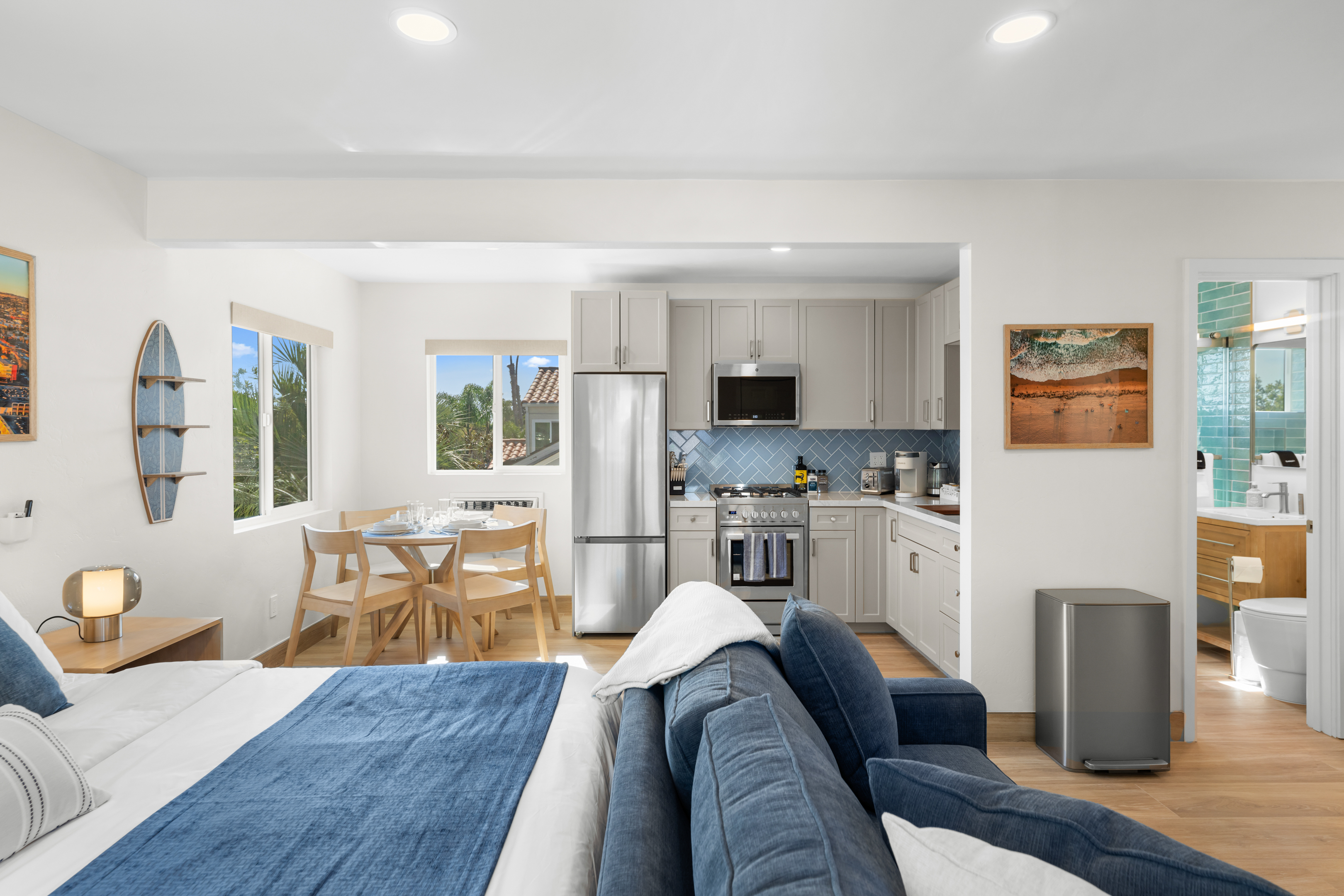 Just steps from the sand, boardwalk, surf breaks, sunset views, great coffee spots and that classic PB laid-back energy. This freshly remodeled studio is bright, modern, and perfectly set up for an easy beach getaway — pet-friendly too!