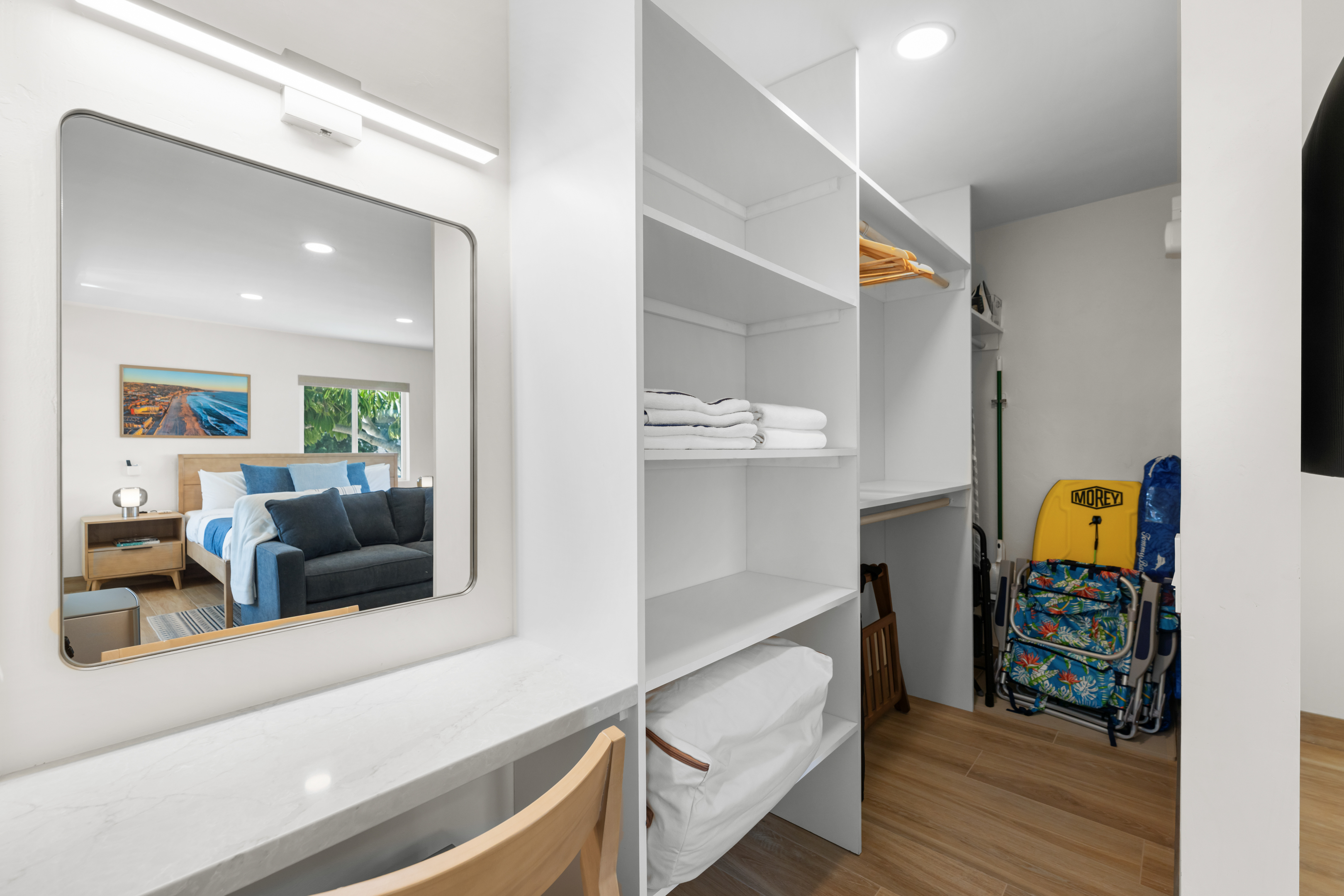 During your stay, you’ll have full, exclusive use of the entire studio. You’ll have access to: - The spacious sleeping area with a premium king-size bed (super comfy BedGear pillows + hotel-quality linens) - The cozy living area with a full-size queen sofa bed (perfect for extra guests) - A fully equipped kitchen — stainless steel appliances, plenty of cookware, dishes, utensils, Keurig coffee maker (with pods provided), and counter space to actually cook or prep - The full bathroom with a deep tub, sliding glass door, soft-close toilet, hair dryer, and stocked bathroom essentials (shampoo, conditioner, body wash, lotion) - Hotel-quality linens, plush beach towels. - Your own dedicated parking spot right at the building - The on-site shared laundry room — we provide two high-efficiency stackable washer + dryer units exclusively for our guests, completely free, plus detergent and dryer sheets (great for beach towels, kid clothes, or freshening up before you leave) Everything is set up so you can truly relax and feel at home the moment you arrive. Make yourself comfortable, kick back, and enjoy every minute of Pacific Beach life!