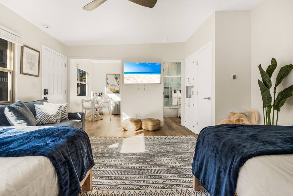 Welcome to our Pacific Beach oasis, where our large studio offers you the perfect blend of comfort and convenience. Feel like you're staying in a high-end hotel with two plush queen-size beds to ensure a restful night's sleep, and a cozy sofa bed for extra guests. Our fully equipped kitchen and the full bathroom provides all the amenities you need. We pride ourselves on providing hotel-quality linens and bathroom essentials. We're just 2-blocks away from the beach. Your PB retreat awaits!