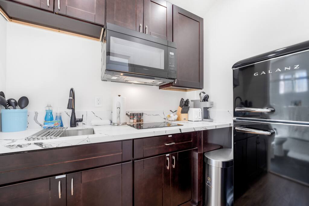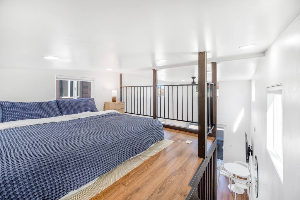 A gorgeous space to unwind and relax. Beautifully decorated with new designer furniture throughout. Extra comfy new beds and luxury linens. Enjoy sunsets from our patio. Our open living area with high ceilings and large windows flows into the outdoor patio area. Propane grill located in courtyard. Downstairs Loft Area: Queen bed downstairs in living room area, and a luxury futon style sofa. Central AC. 55 inch Smart T.V streams all your favorite apps. Upstairs Loft Area: King bed with luxury linens. Kitchen: Fully stocked kitchen with all the essentials including: two burner electric stovetop, microwave, toaster, fridge, freezer Keuring coffee maker. There is no oven in the home. We provide dish soap, soap, sponge, trash bags and paper towels. Bathroom: Freshly remodeled bathroom stocked with the essentials including: shampoo, conditioner, and body soap. Outdoor shower/laundry: Located outside the apartment. The washer & dryer and outdoor shower are shared with three other units on property. Parking: One parking spot for a mid size SUV