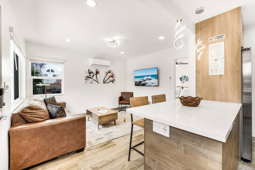 Welcome to your luxurious home away from home in the heart of Pacific Beach, San Diego. This stunning 1-bedroom, 1-bathroom property is the epitome of modern coastal living, offering the perfect blend of style, comfort, and convenience. Whether you're seeking a relaxing beach getaway or a vibrant urban adventure, this newly remodeled Airbnb promises an unforgettable experience. As you step inside, you'll immediately be struck by the contemporary design and high-end finishes that grace every corner of this spacious home. The living area welcomes you with an abundance of natural light streaming in through large windows, creating a bright and airy ambiance. The plush, designer furnishings invite you to unwind and relax after a day of exploring the nearby beaches and attractions. The living room features a cozy sofa and a large flat-screen TV, perfect for movie nights or catching up on your favorite shows. Adjacent to the living area is a fully equipped kitchen that would make any chef feel right at home. Stainless steel appliances, granite countertops, and ample cabinet space provide everything you need to prepare gourmet meals or simply enjoy a morning coffee at the breakfast bar. When it's time to rest, you'll find a beautifully appointed bedroom that offers a peaceful retreat. The bedroom boasts a king-sized bed and an en-suite bathroom, complete with modern fixtures. The bedroom also features a large walk-in closet for all of your storage needs. One of the standout features of this property is the private patio accessible from the living area. Here, you can savor your morning coffee or sip a glass of wine while taking in the Pacific Beach air. It's the perfect spot to soak up the Southern California sun or enjoy a meal alfresco. In addition to the stylish interiors, this Airbnb offers a range of amenities to enhance your stay. Stay connected with high-speed Wi-Fi. We also provide beach towels to make sure you're well-equipped for your days by the shore. Located in the heart of Pacific Beach, you'll have access to a plethora of dining, shopping, and entertainment options just steps from your door. Whether you want to catch some waves, stroll along the boardwalk, or explore the vibrant nightlife, everything you desire is within easy reach. This 1-bedroom, 1-bathroom luxury home in Pacific Beach, San Diego, offers an unparalleled experience. From the contemporary design and high-end amenities to the prime location near the beach, you'll have everything you need for a memorable stay. Whether you're planning a romantic getaway, a family vacation, or a friends' retreat, this property is sure to exceed your expectations, providing a true home away from home in one of San Diego's most desirable neighborhoods. Don't miss the opportunity to book your stay and make lasting memories in this coastal paradise.