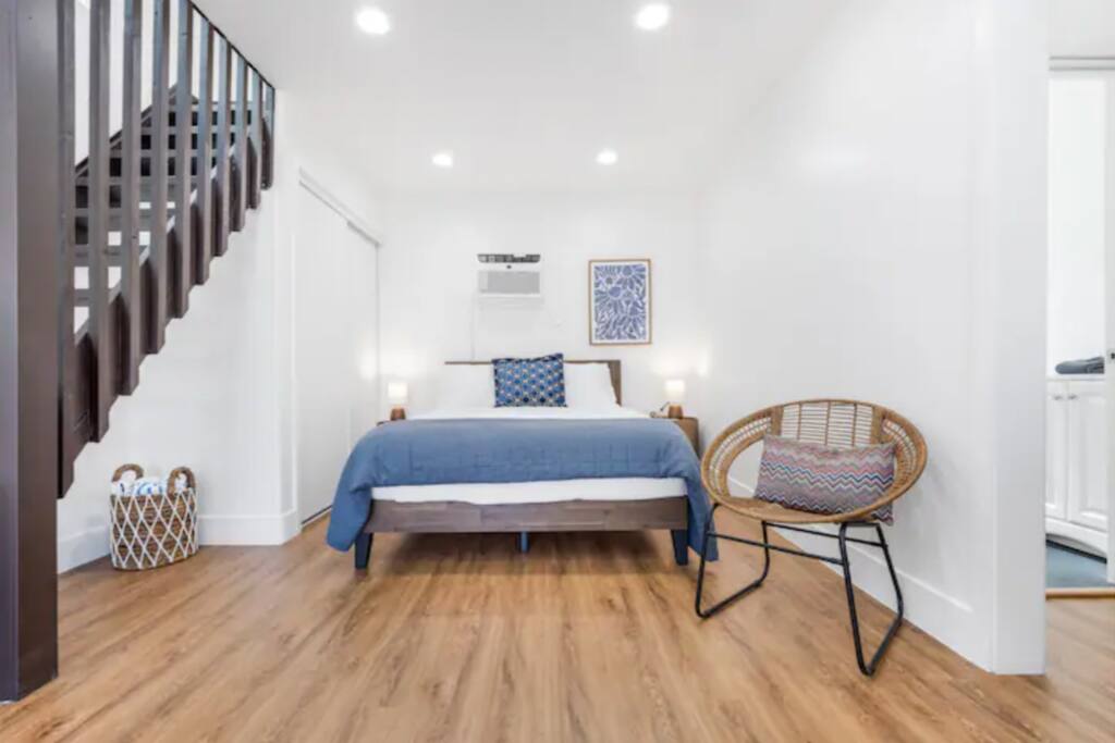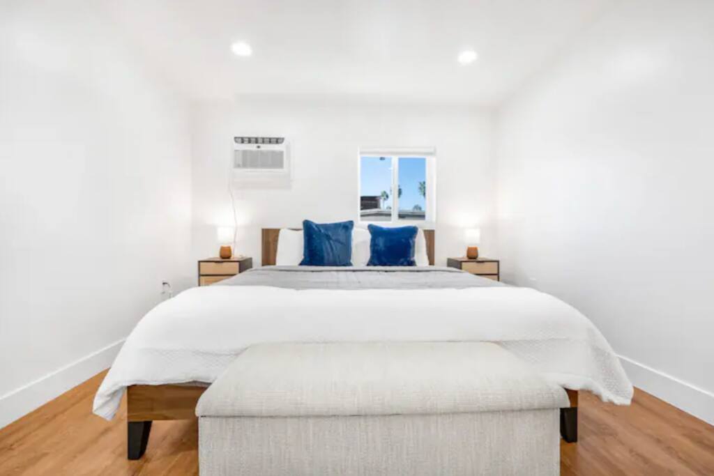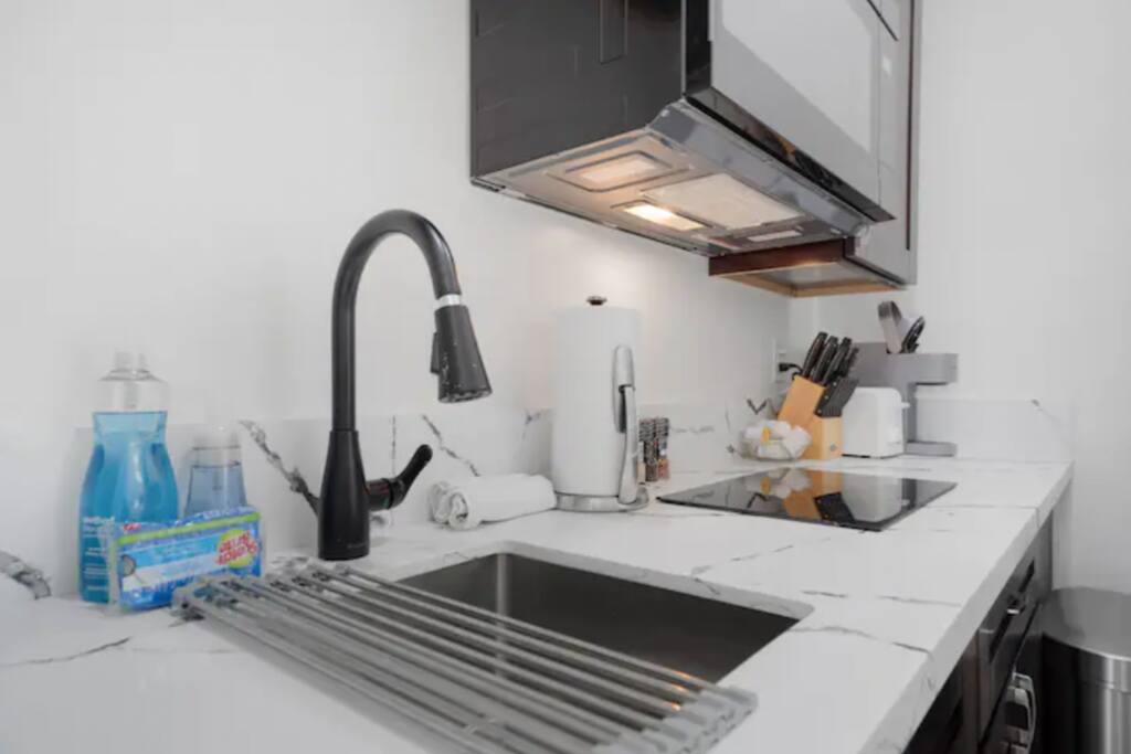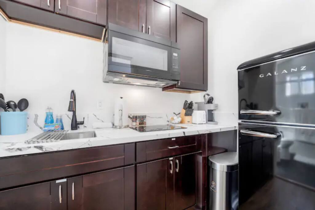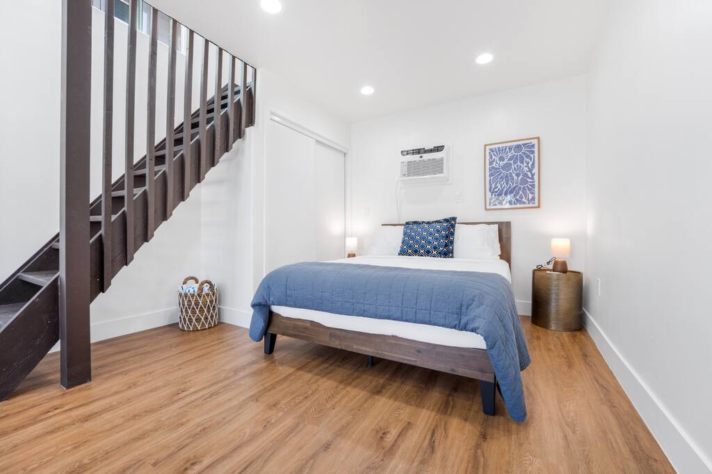 You have the entire compound of 4 units on the property including a massive patio and yard area great for entertaining! A gorgeous space to unwind and relax. Beautifully decorated with new designer furniture throughout. Really comfy new beds with high end linens. Your home away from home is equipped with everything you could possibly need for a long or short stay. Every detail has been considered to make your vacation a lasting memory. Enjoy sunsets from our patio. Our open plan living area with resort style couches, outdoor dining with BBQ grill for a wonderful dining experience. The open plan layout and large windows provide an abundance of natural light. This rental is for all 4 individual units on the property. Each unit has 1 full bathroom and a kitchen. The sleeping arrangements are: Unit 1: Loft style unit with a king bed up in the loft, a queen bed downstairs in the living room area, and a luxury futon style sofa in the living room area. Sleeps 5 guests comfortably. Unit 2: 1 bedroom unit with a queen bed in the bedroom with an ensuite bathroom and a queen sized pull out sofa in the living room area. Sleeps 4 guests comfortably. Unit 3: Studio unit with a king sized bed and a luxury futon style sofa both in the living room area. Sleeps 3 comfortably. Unit 4: 2 bedroom unit with a king bed in the primary bedroom, a bunk bed (twin and full beds) with an additional single bed in the second bedroom, and a luxury futon style sofa in the living room. The kitchens are very well equipped for your stay. We have an electric 2 burner stovetop, microwave, toaster, fridge, and freezer in each kitchen. There is no oven in any of the kitchens.