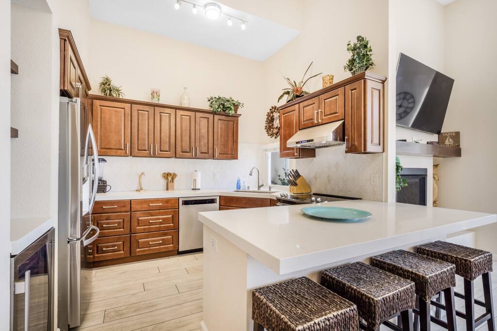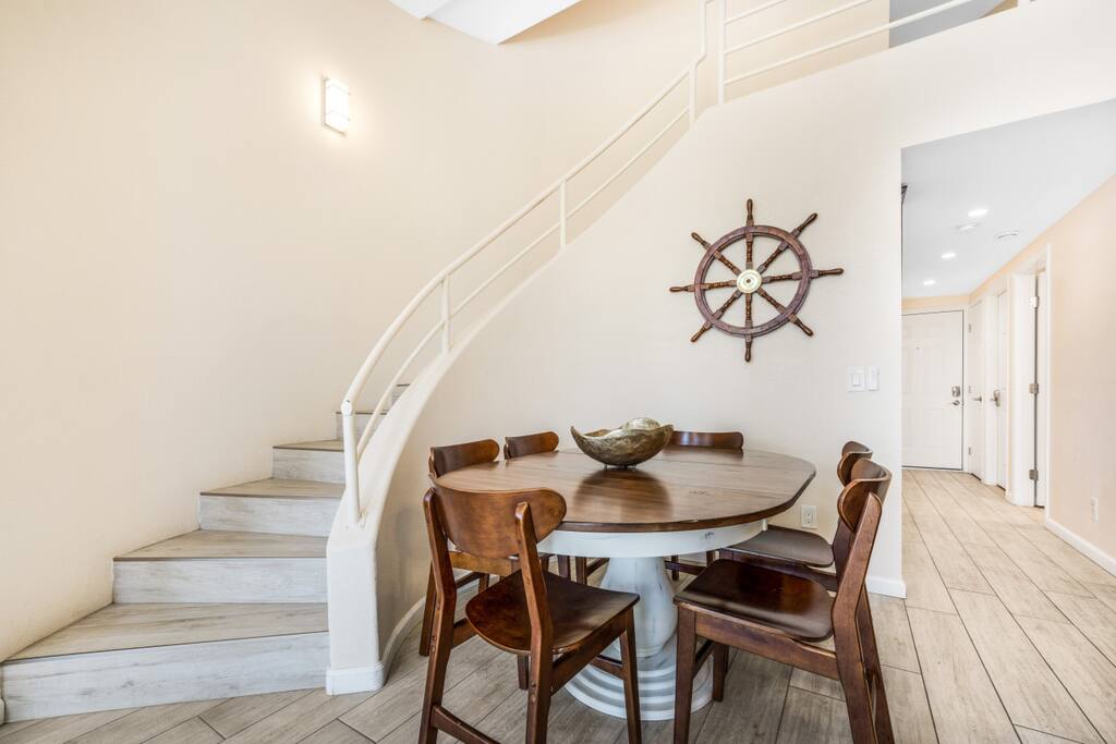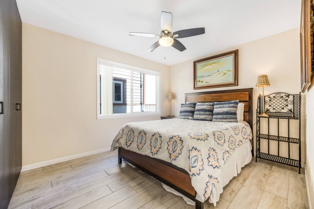 Welcome to our stunning Mission Beach getaway, where coastal charm meets modern luxury. This spacious 3-bedroom, 3-bathroom vacation rental is spread across two floors offering ample space and comfort for your group. As you step inside, you'll be greeted by a beautifully furnished living area, complete with plush sofas and a large smart TV, perfect for cozy nights in with your loved ones. The adjacent dining area provides seating for six, ideal for family meals or friendly gatherings. Prepare delicious meals with ease in the fully equipped kitchen, featuring stainless steel appliances, granite countertops, and all the essentials you need. And when it's time to unwind, head outside to the private patio, where a BBQ grill awaits, offering the perfect setting for cookouts and sunset dinners. Retreat to the comfort of our inviting bedrooms, each thoughtfully designed to provide a peaceful haven for rest and relaxation after a day of beachside fun. The main bedroom, located upstairs, boasts a luxurious king-size bed with plush linens and pillows, ensuring a restful night's sleep. Guests will also appreciate the convenience of the ensuite bathroom, featuring a spacious shower for added comfort and convenience. The secondary bedroom, located on the 2nd floor offers a cozy queen-size bed, perfect for unwinding after a day of exploring the vibrant streets of Mission Beach. With soft bedding and ample storage space, this bedroom provides a comfortable retreat for guests to recharge and rejuvenate. Ideal for families or groups traveling with children, the third bedroom features a trundle bunk bed with a twin on top, full on bottom, and a twin trundle underneath, providing plenty of sleeping space for younger guests. The living room has a queen sized pull out sofa as well. In addition to the modern comforts of home, our vacation rental also provides beach gear for your convenience, including chairs, umbrellas, and towels. And with a washer and dryer located within the unit, keeping up with laundry is a breeze, allowing you to spend more time enjoying your vacation. Located just steps from Belmont Park and the beach, this vacation rental offers unbeatable access to all the excitement of Mission Beach. Whether you're riding the waves, exploring local shops and restaurants, or simply soaking up the sun, you'll find endless opportunities for adventure right outside your door. Don't miss out on the ultimate San Diego getaway at our Mission Beach retreat. Book now and start making memories that will last a lifetime!