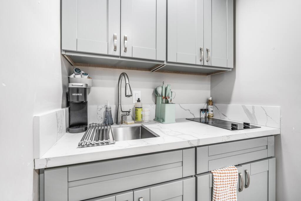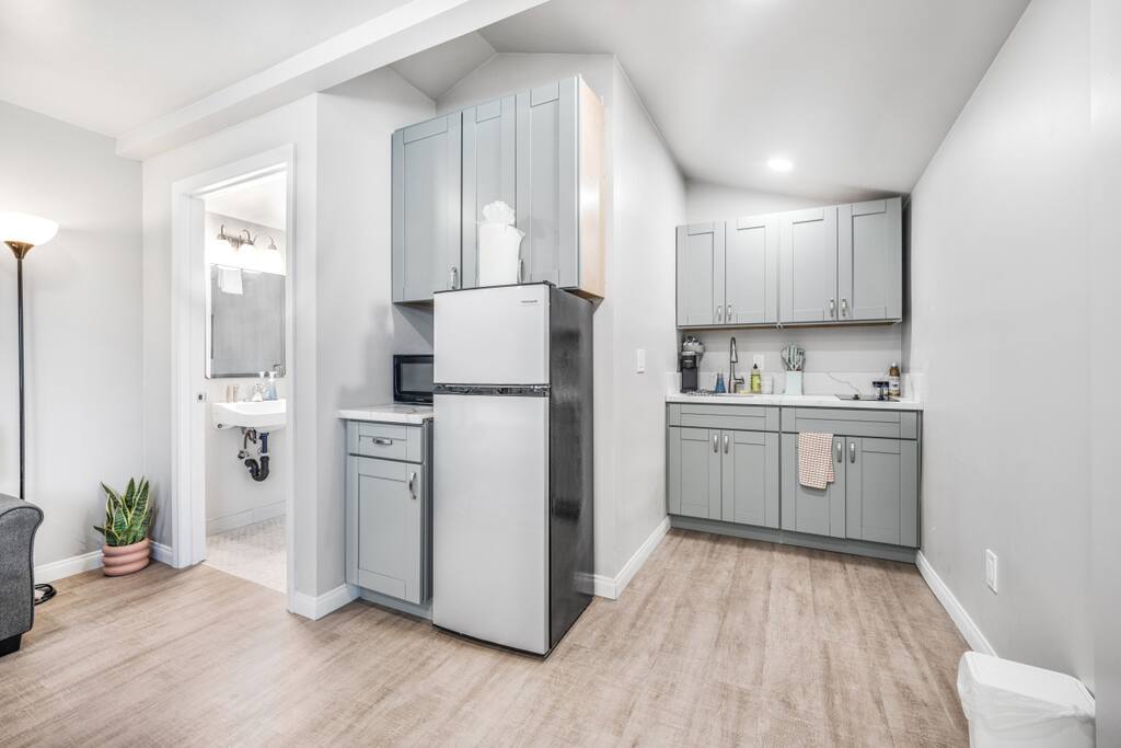 Cozy Pet-Friendly Studio in El Cajon Welcome to our charming and spacious studio in El Cajon! This comfortable retreat is perfect for up to 3 guests and is designed to provide a memorable stay with all the amenities you need. Sleeping Arrangements: A cozy queen bed with hotel-quality linens A comfortable couch with a twin pull-out bed Bathroom: A full-sized bathroom with a walk-in shower Hotel-quality bathroom essentials: lotion, shampoo, body wash, conditioner, bath towels, hand towels, and face cloths Kitchen: A fully-equipped kitchen (minus an oven) for your cooking needs Keurig coffee machine with complimentary coffee pods Amenities: Smart TV for your entertainment A/C and heater unit to ensure a comfortable temperature during your stay High-speed Wi-Fi to stay connected Pet-Friendly: We welcome your furry friends! Our studio is pet-friendly, ensuring a comfortable stay for all family members. Location: Centrally located with excellent freeway access, making it easy to explore San Diego and beyond