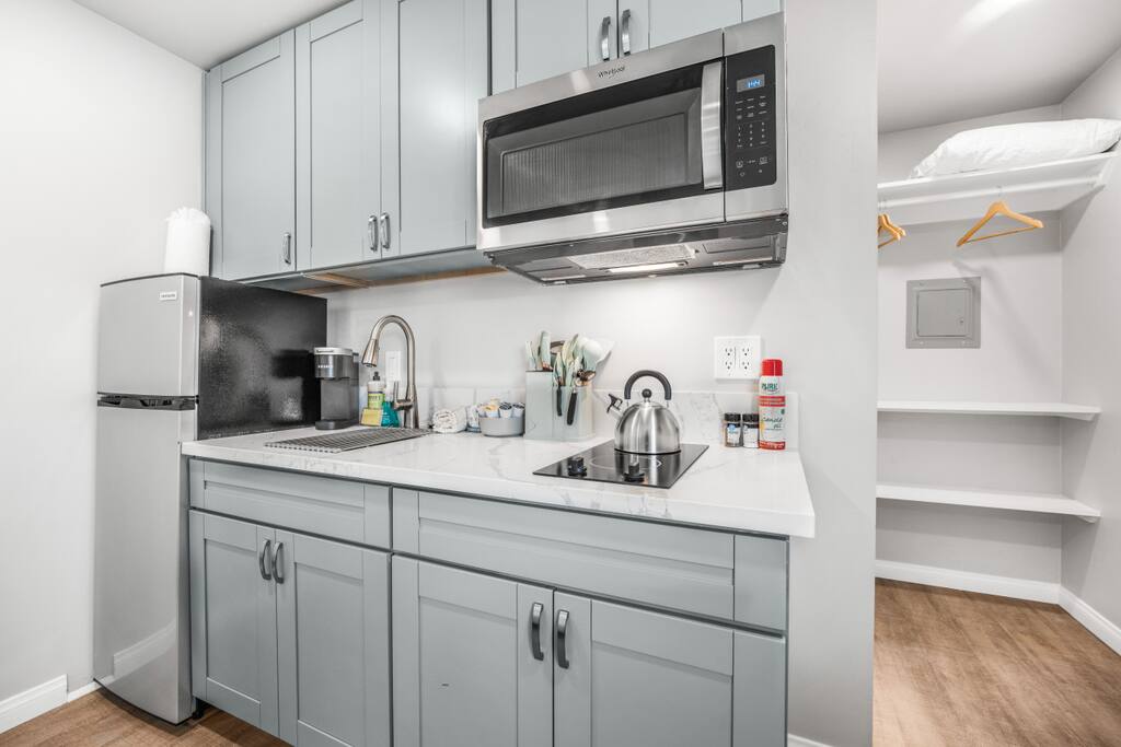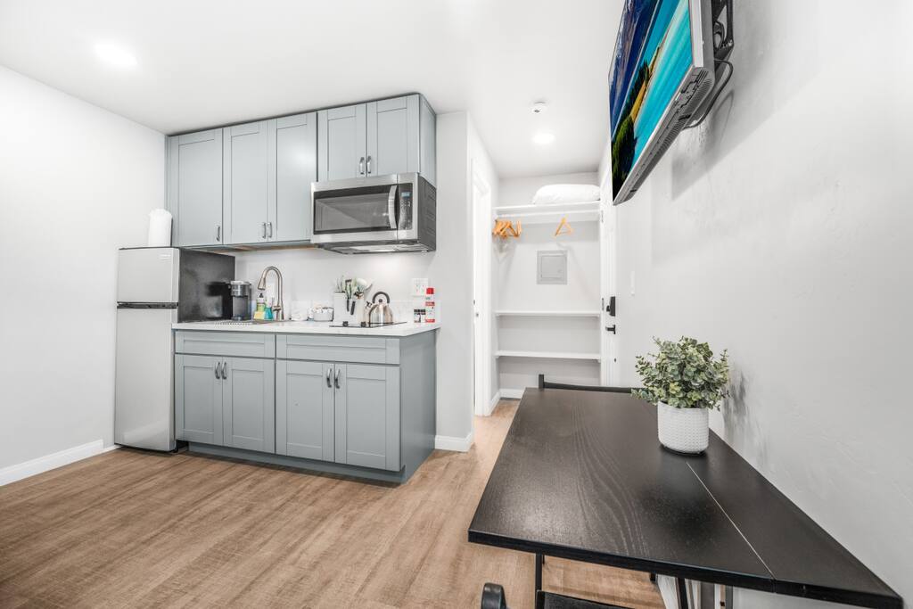 Cozy Pet-Friendly Studio in El Cajon Welcome to our charming and spacious studio in El Cajon! This comfortable retreat is perfect for up to 3 guests and is designed to provide a memorable stay with all the amenities you need. Sleeping Arrangements: A cozy queen bed with hotel-quality linens A comfortable couch with a twin pull-out bed Bathroom: A full-sized bathroom with a walk-in shower Hotel-quality bathroom essentials: lotion, shampoo, body wash, conditioner, bath towels, hand towels, and face cloths Kitchen: A fully-equipped kitchen (minus an oven) for your cooking needs Keurig coffee machine with complimentary coffee pods Amenities: Smart TV for your entertainment A/C and heater unit to ensure a comfortable temperature during your stay High-speed Wi-Fi to stay connected Pet-Friendly: We welcome your furry friends! Our studio is pet-friendly, ensuring a comfortable stay for all family members. Location: Centrally located with excellent freeway access, making it easy to explore San Diego and beyond