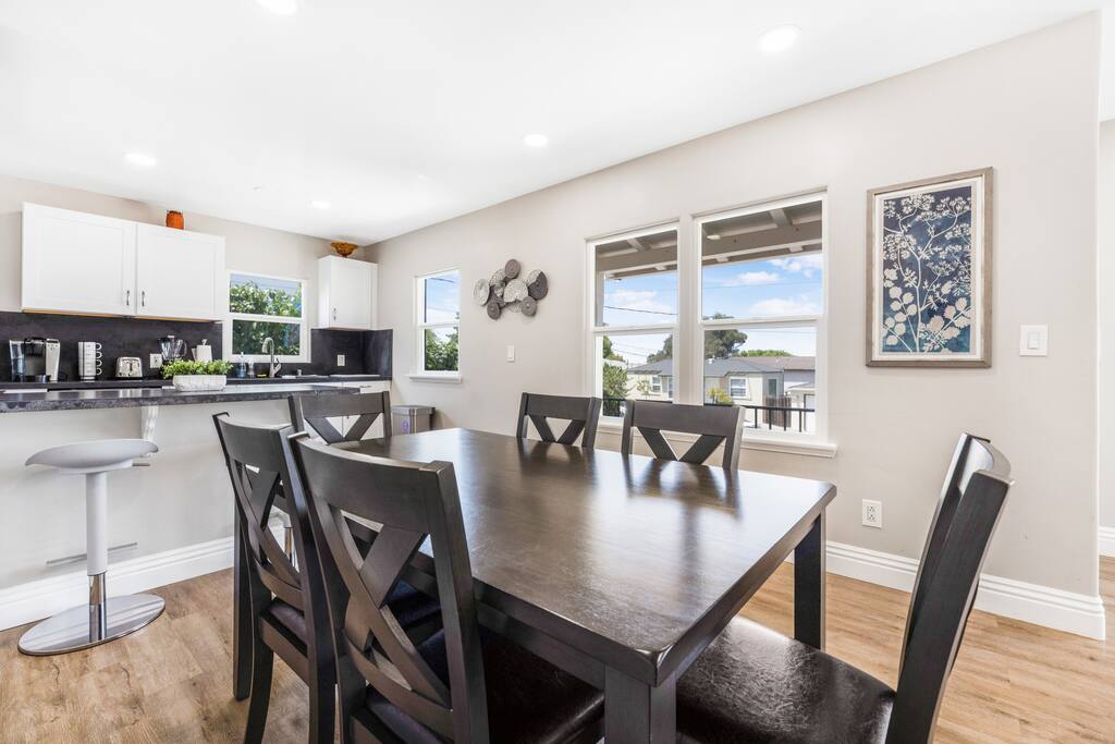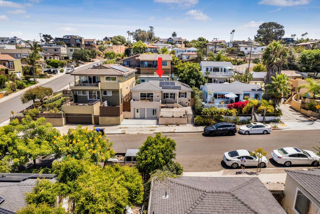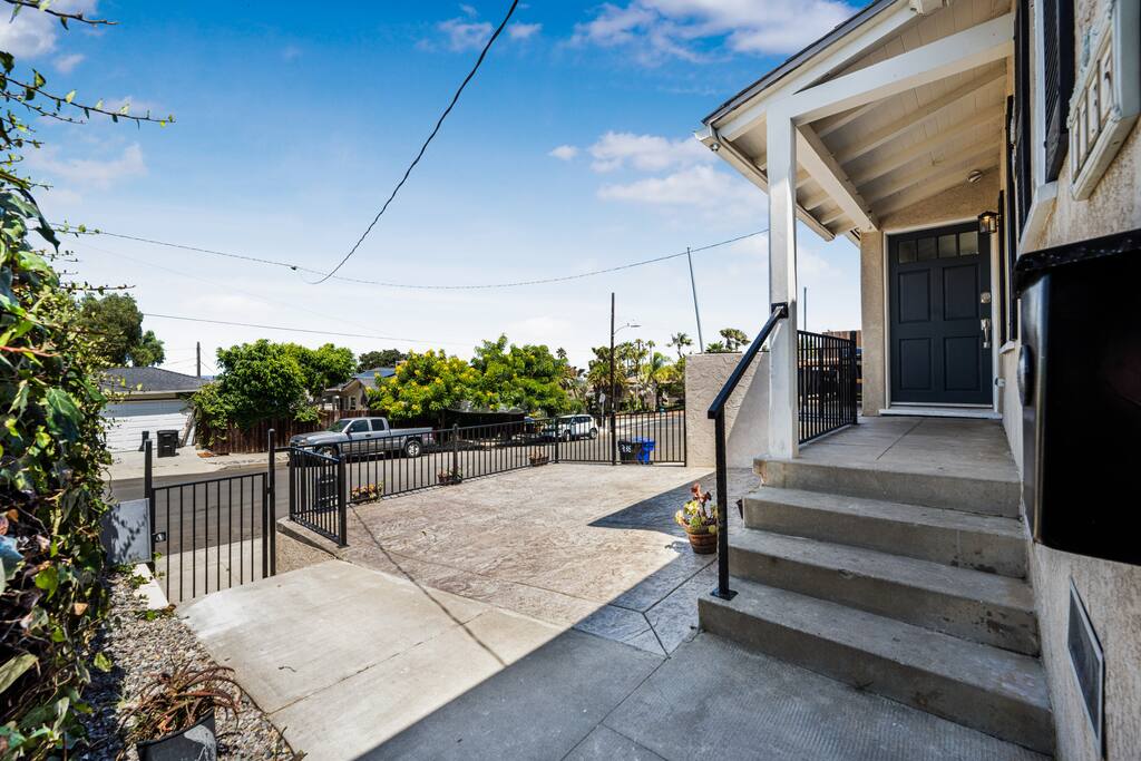 Welcome to our coastal oasis in the charming neighborhood of Ocean Beach, San Diego! Our beautifully designed property is the perfect place to escape the hustle and bustle of everyday life and experience the laid-back, beachy vibe of this vibrant community. A/C wall units in the living room and two of the bedrooms. The A/C and Heater allow you to have the optimal temperature for each room. Our property features three bedrooms and two bathroom, each thoughtfully decorated to capture the essence of coastal living. The bedrooms are outfitted with comfortable beds and plenty of storage, guaranteeing a great night's rest. The living room is designed to be a cozy and inviting space, perfect for unwinding after a day of exploring Ocean Beach. The fully equipped kitchen has all the modern appliances you need to cook up a delicious meal and enjoy it al fresco on the large balcony. The real highlight of our property is its prime location in the heart of Ocean Beach. You'll be just a short walk from the beach, where you can enjoy swimming, sunbathing, and beachcombing. The famous Ocean Beach Pier is just a short walk away, as well as the quaint main street, where you'll find plenty of unique shops, delicious restaurants, and bars. Our property also includes free Wi-Fi, so you can stay connected while you're on vacation. Whether you're looking to relax and unwind or explore all that Ocean Beach has to offer, our coastal oasis is the perfect place to call home. We look forward to hosting you in our beautiful home! Primary Bedroom – King bed with ensuite bathroom Bedroom 2 – King bed Bedroom 3 - King bed Living Room - One queen sized pull out sofa (sleeps 2) The layout: From main entrance you will find the living space with a large pull-out couch, large tv and some spectacular views of San Diego. Next to the living room is a spacious dining area with large table that comfortably seats 6 people with amazing views to enjoy sunsets while eating. Followed by three large bedrooms with king beds. The exterior of the home has multiple seating areas and spaces to enjoy the San Diego weather and sunshine. Off the living room on the front of the home is a large patio area with a BBQ and outdoor dining table to hang out with friends and family and watch the nightly Sea World firework show or the amazing California sunsets.