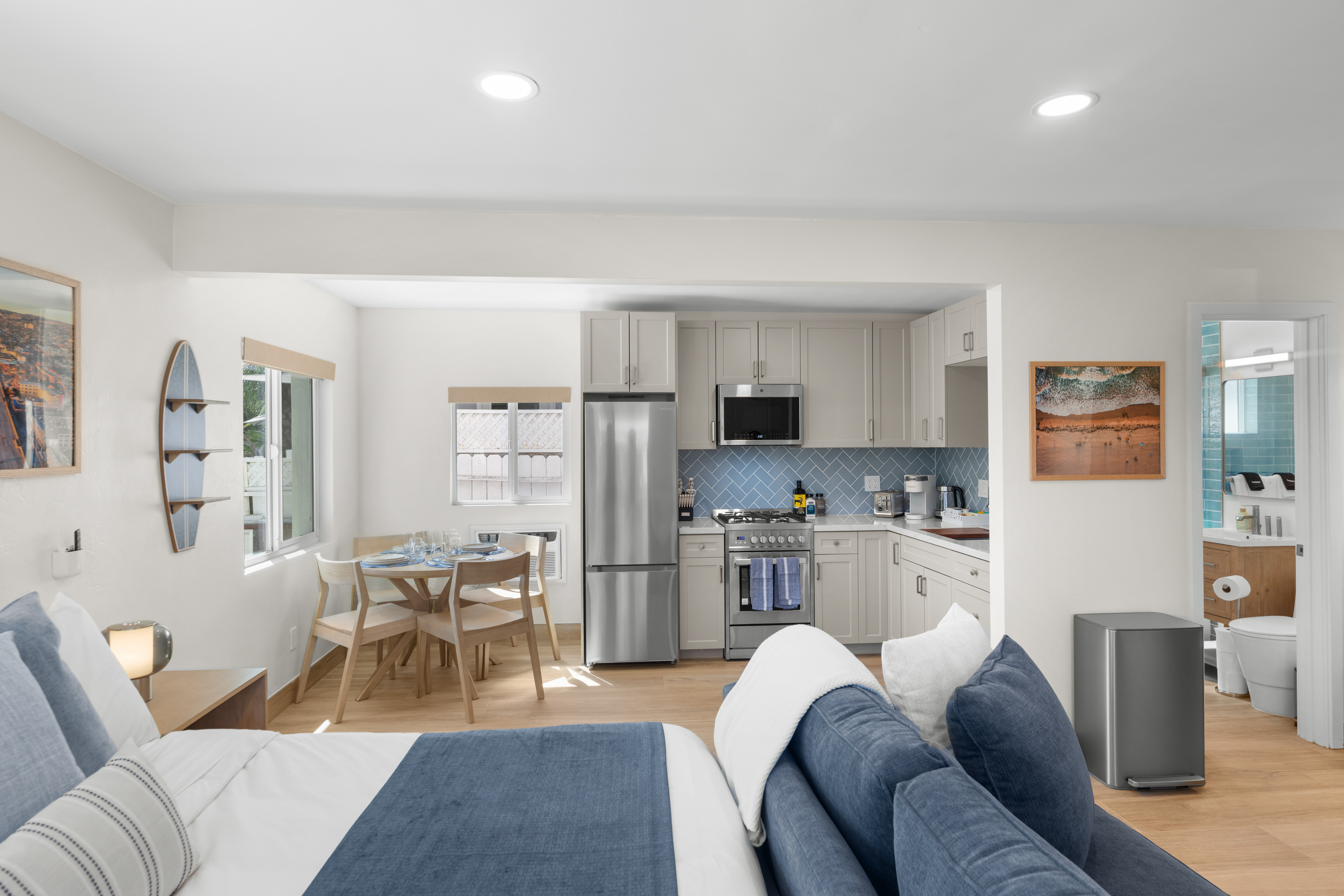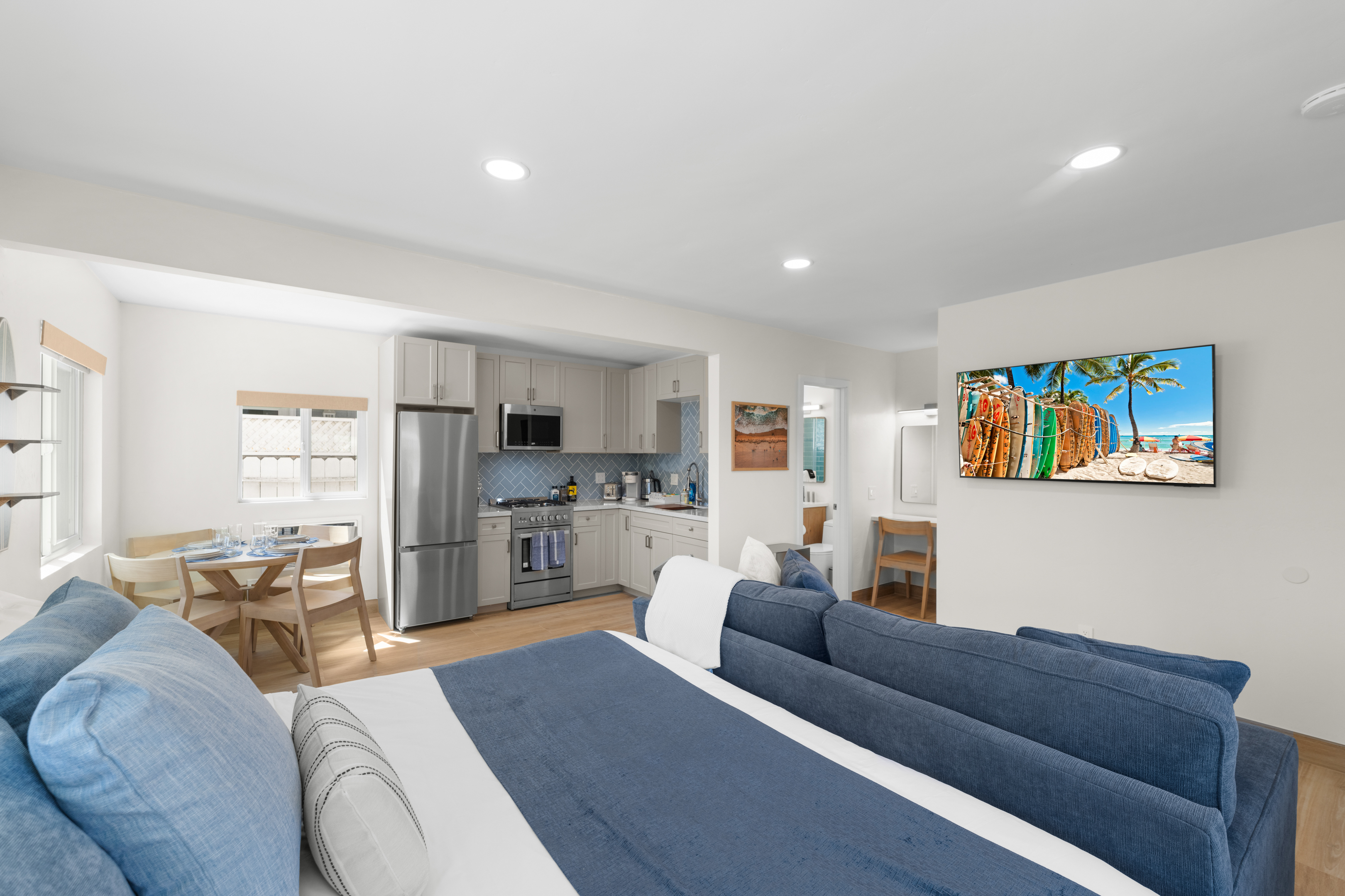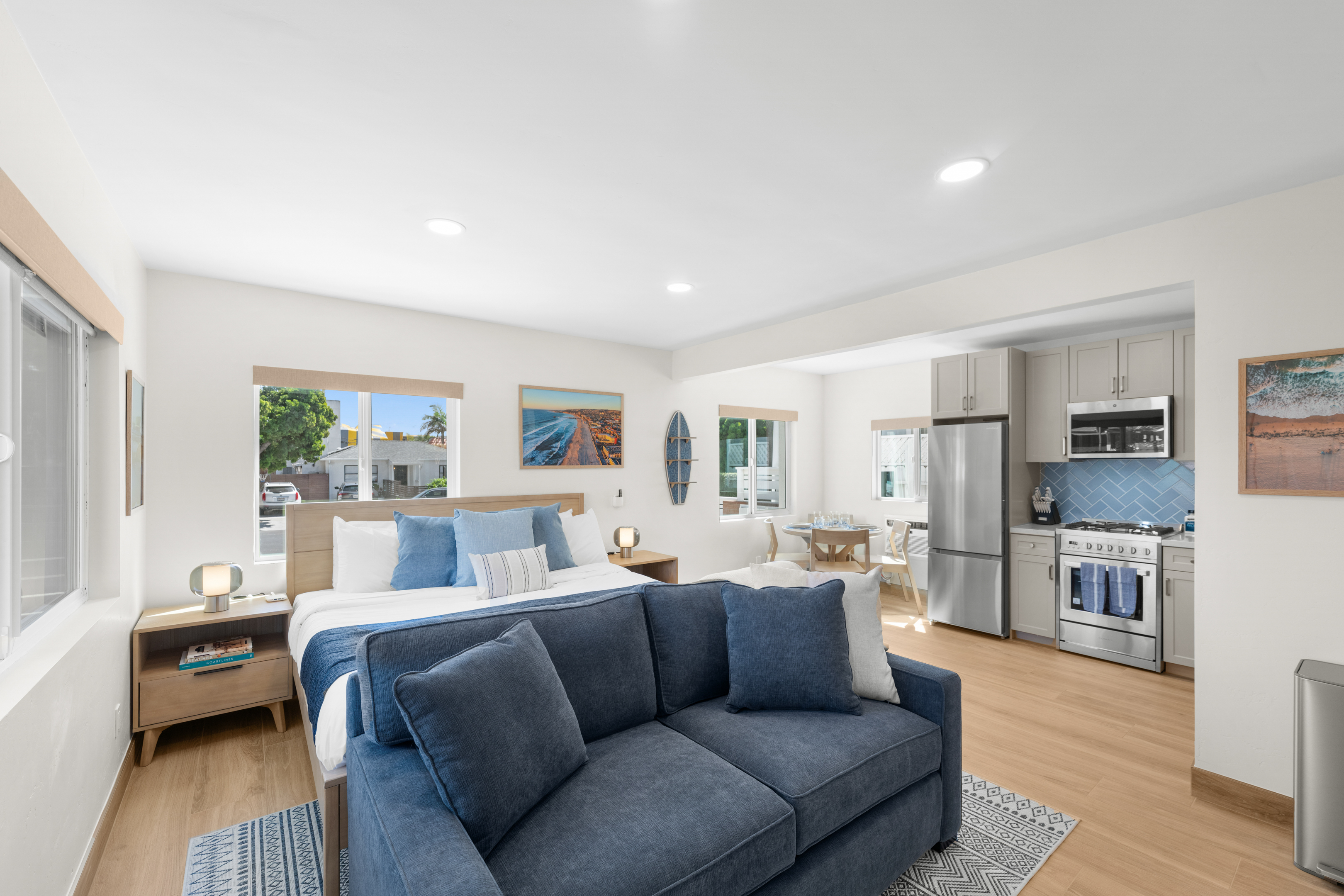 Just steps from the sand, boardwalk, surf breaks, sunset views, great coffee spots and that classic PB laid-back energy. This freshly remodeled studio is bright, modern, and perfectly set up for an easy beach getaway — pet-friendly too!