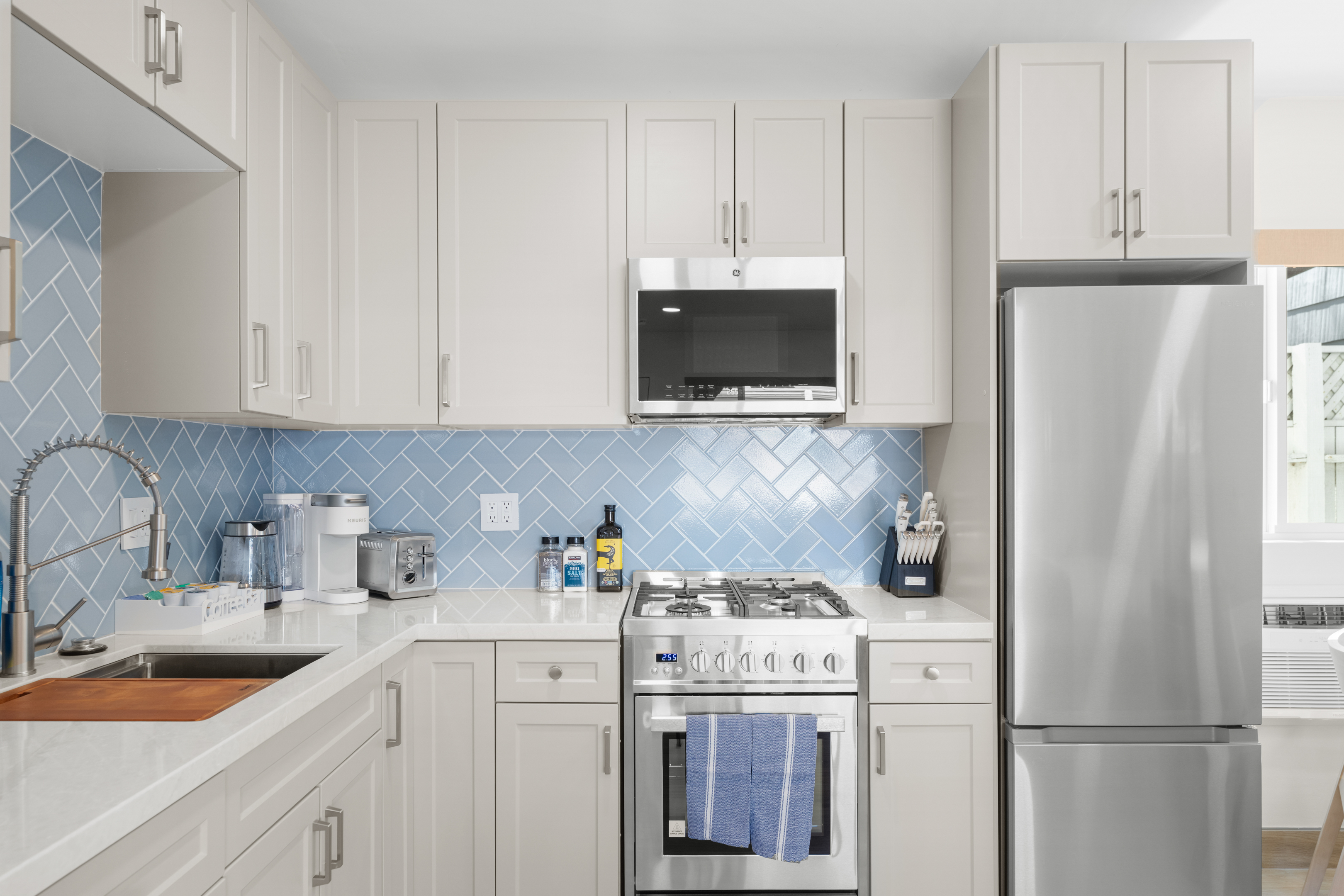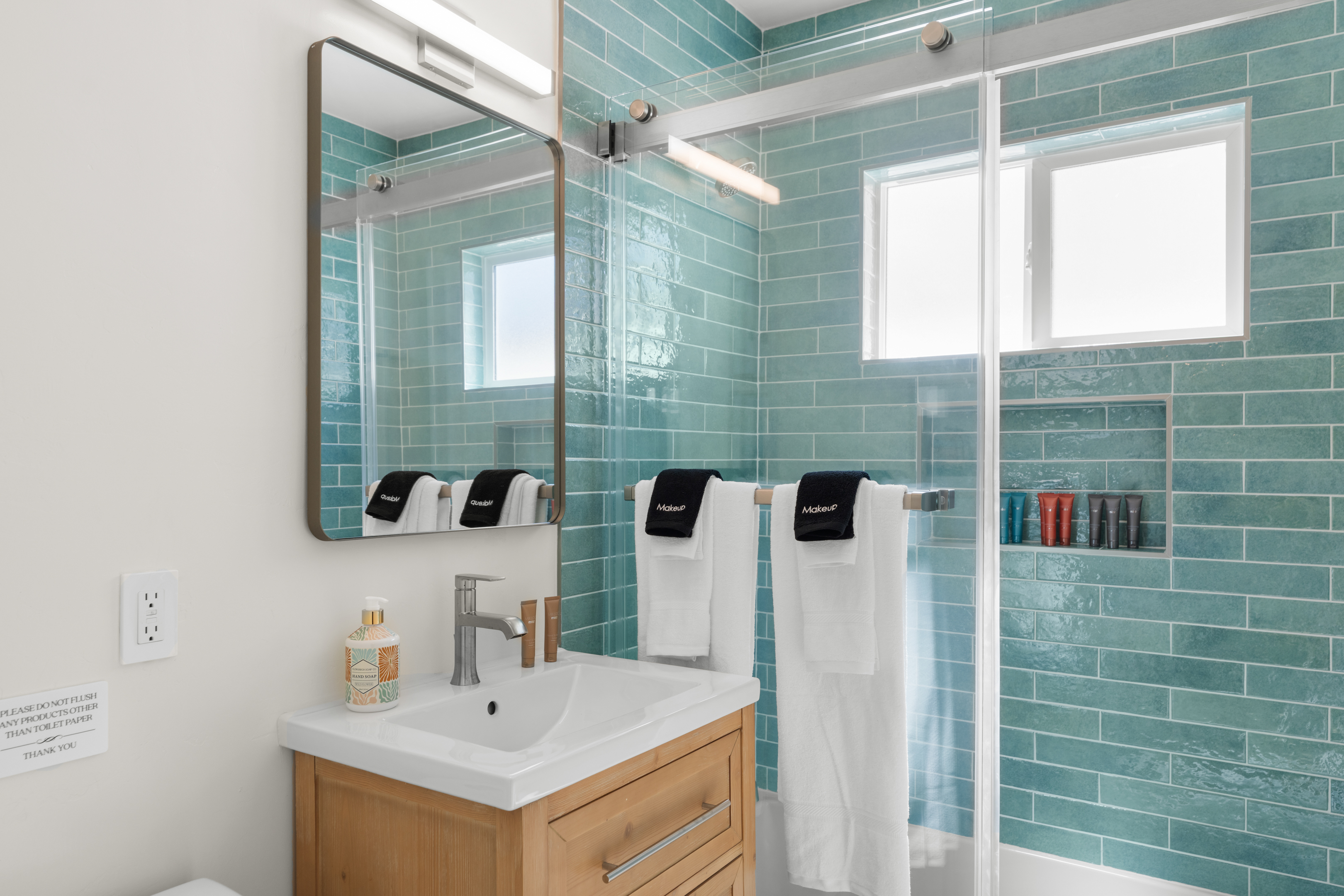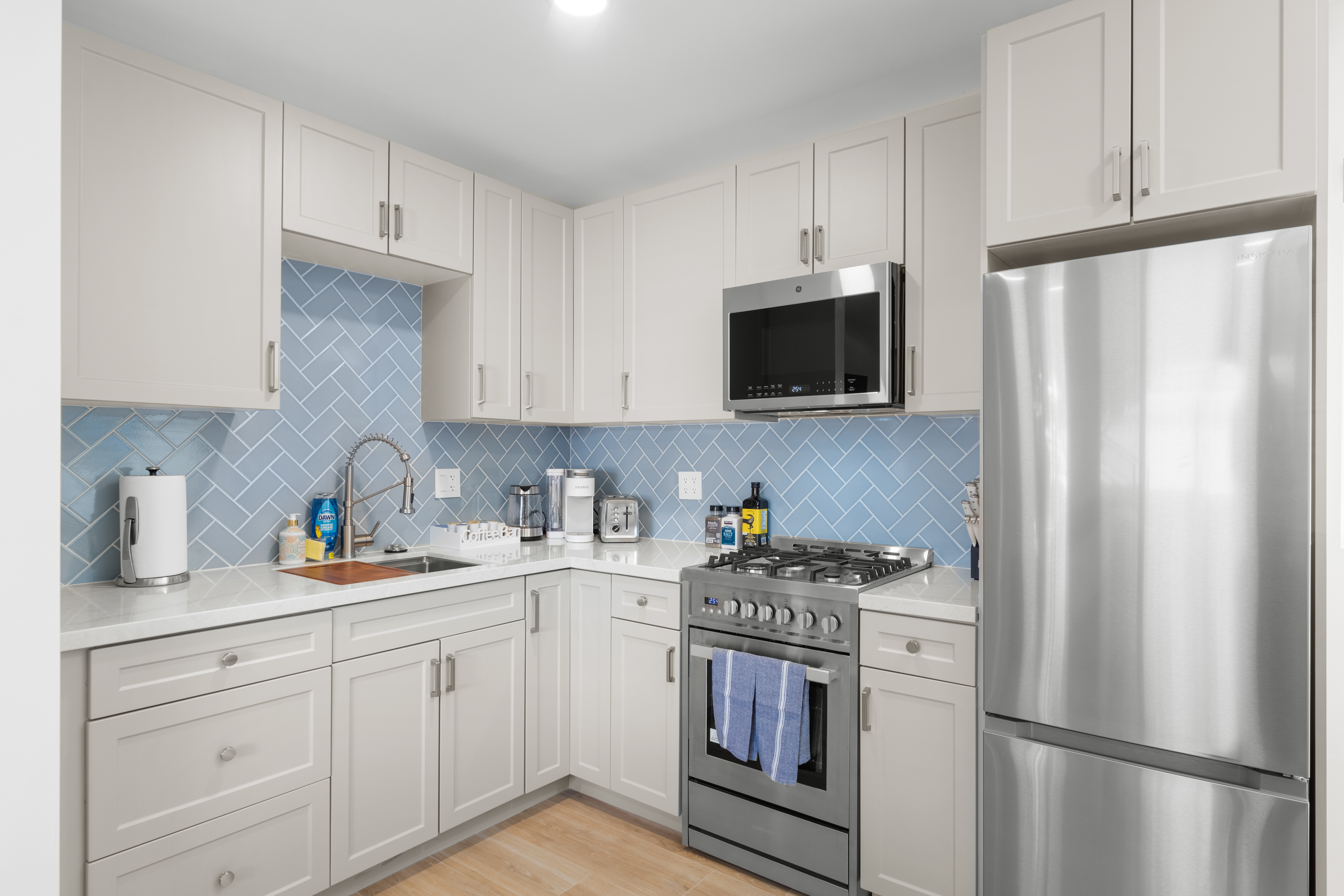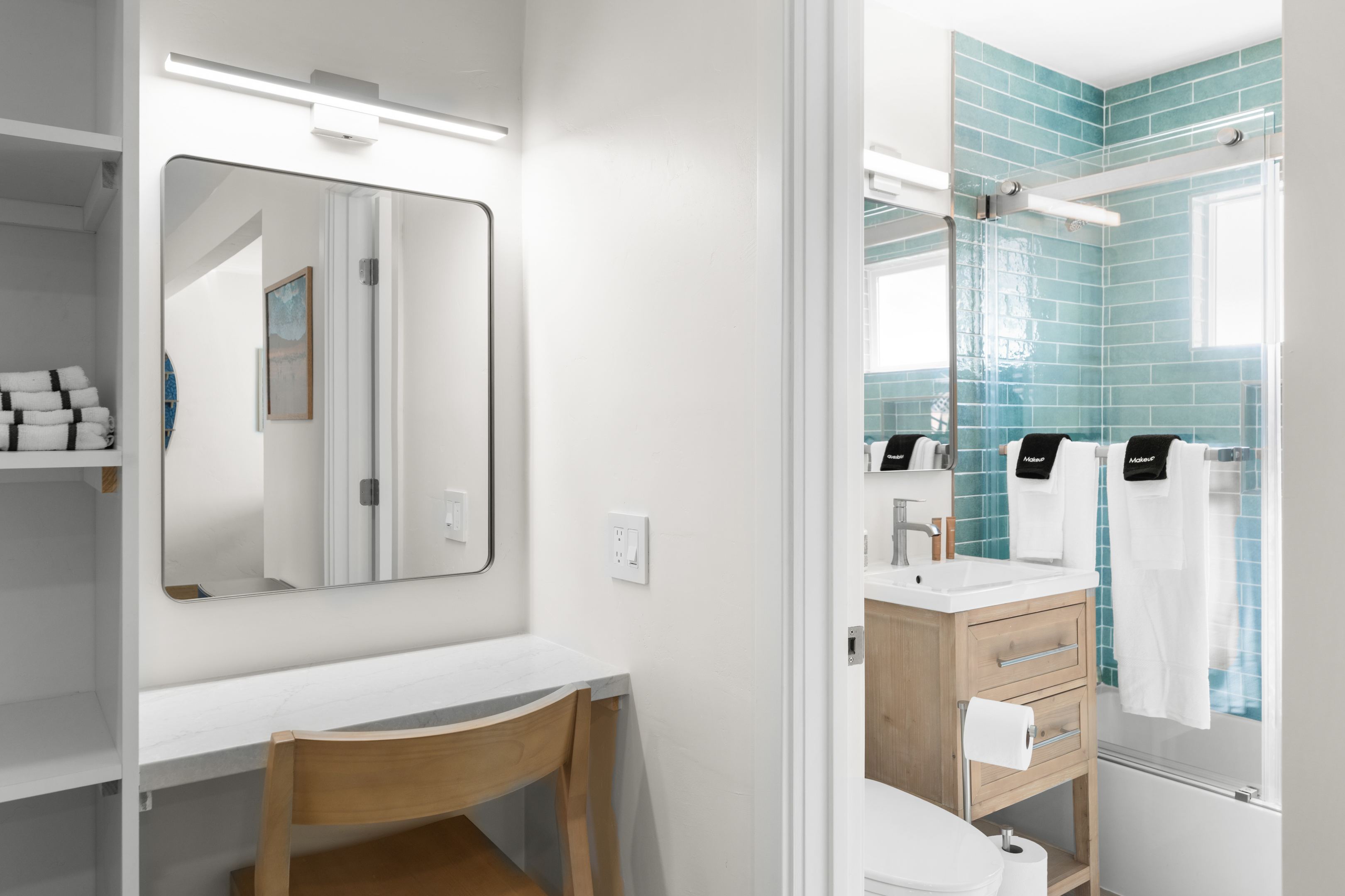 Welcome to a completely remodeled, light-filled first-floor studio in the heart of Pacific Beach. You’re just a short walk from the sand, boardwalk, surf breaks, sunset views, coffee shops, tacos, and the relaxed, lively PB energy everyone comes for. Arrival is effortless: no stairs to enter the apartment. Keyless entry means you simply receive your personal code the morning of check-in and walk right in. Step inside to a bright, open floor plan with large windows that flood the space with natural light. At the center is a luxurious premium king BedGear bed — dressed in crisp hotel-quality linens and topped with pillows designed for deep, restful sleep. In front of the bed sits a comfortable sofa that pulls out into a full-size queen sleeper, easily sleeping 4 guests. Large nightstands with extension cords make overnight charging simple and tidy. Roll-down blackout shades cover every window, giving you total control over light and guaranteeing peaceful mornings no matter how late the PB nightlife runs. The full kitchen feels brand new and ready to use: stainless steel appliances, generous counter space, plenty of storage for anything you bring, and a Keurig coffee maker stocked with pods and sugar so your day starts right. Nearby is a proper dining table that seats four comfortably. The spa-like bathroom features a deep tub enclosed by a sleek sliding glass door, soft-close toilet, hair dryer, and a full set of bathroom essentials (shampoo, conditioner, body wash, body lotion). Just outside the bathroom you’ll find a handy desk/vanity area — perfect for work, makeup, or extra prep space. A large walk-in closet gives you tons of room for luggage, beach gear, clothes, and everything else you bring. We’ve thought of the little things too: beach chairs, Pack ’n Play, iron + ironing board, luggage rack, vacuum, and basic cleaning supplies are all provided. One dedicated parking spot is included — a true luxury in Pacific Beach. And to make life even easier (especially with little ones, beach towels, or packing up), guests have access to the on-site shared laundry room. We provide two stackable high-efficiency washers and dryers exclusively for our guests — completely complimentary, including detergent and dryer sheets. Pet-friendly and family-friendly, this fresh, modern studio feels clean, stylish, and perfectly set up for an effortless Pacific Beach getaway. Your ideal PB home base is ready — come make some memories! STR-13328L TOT: 659992