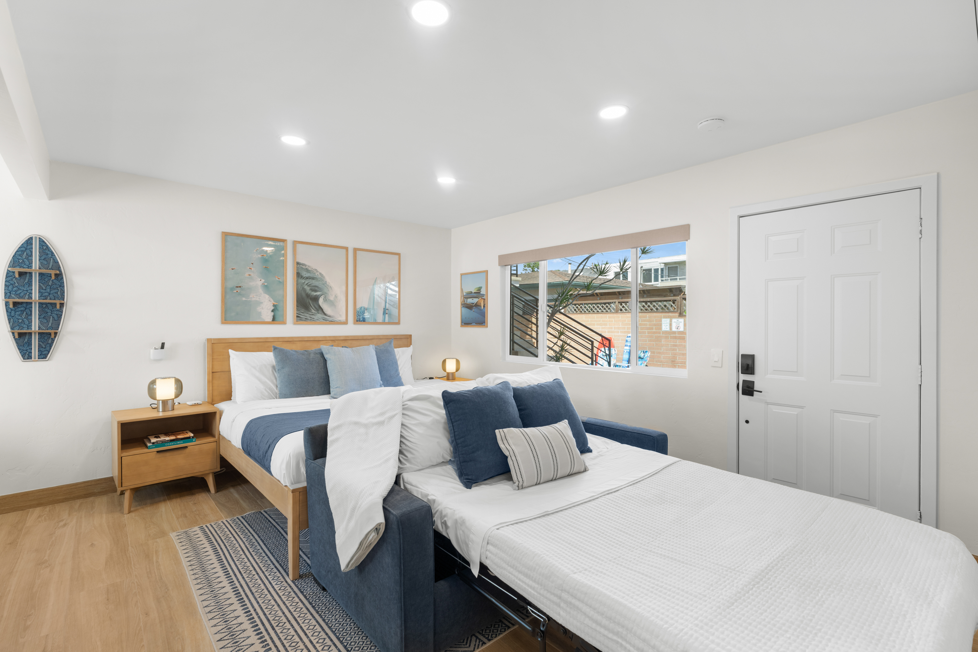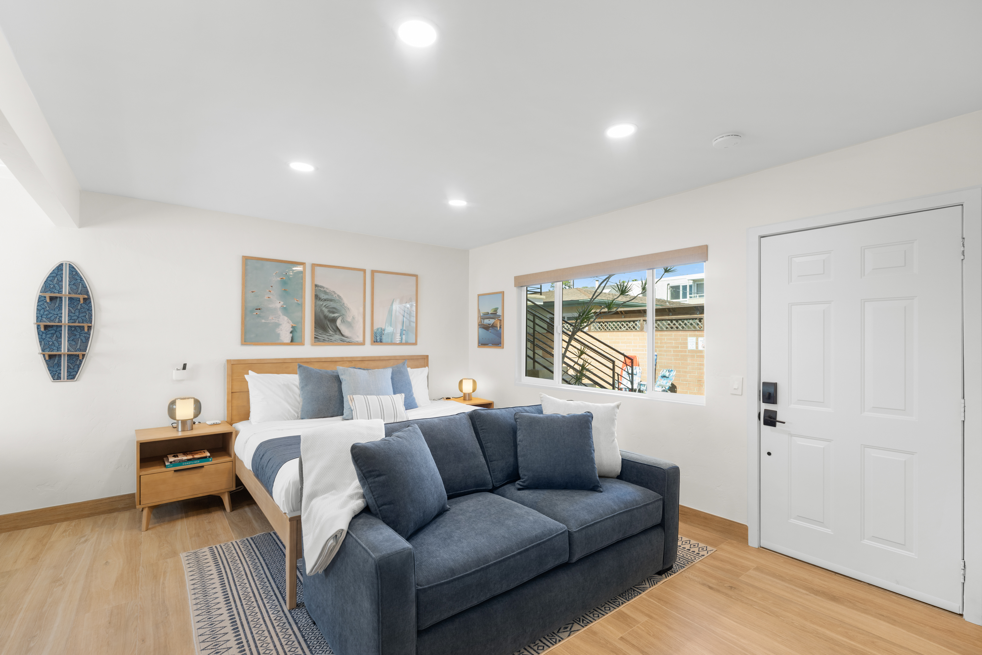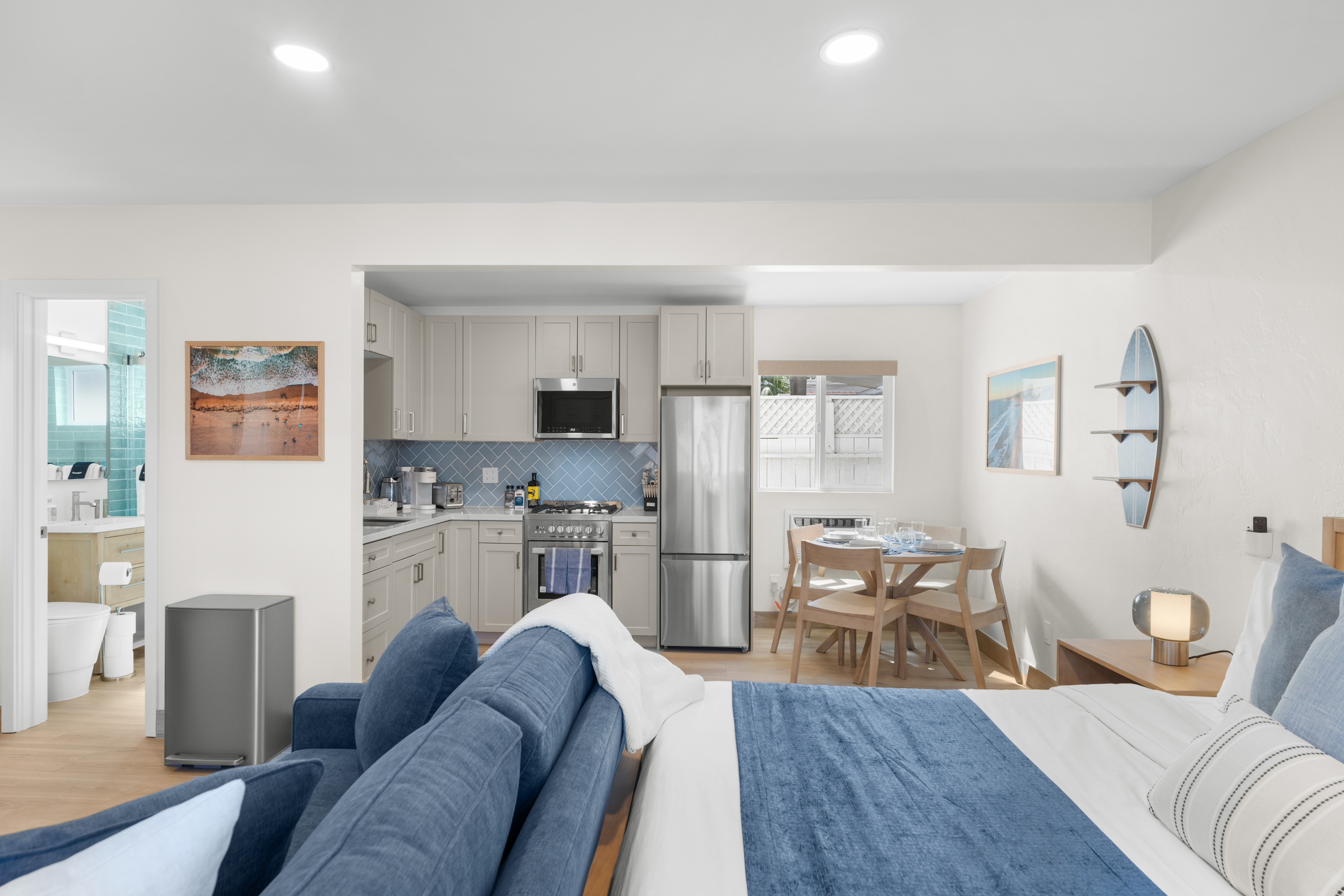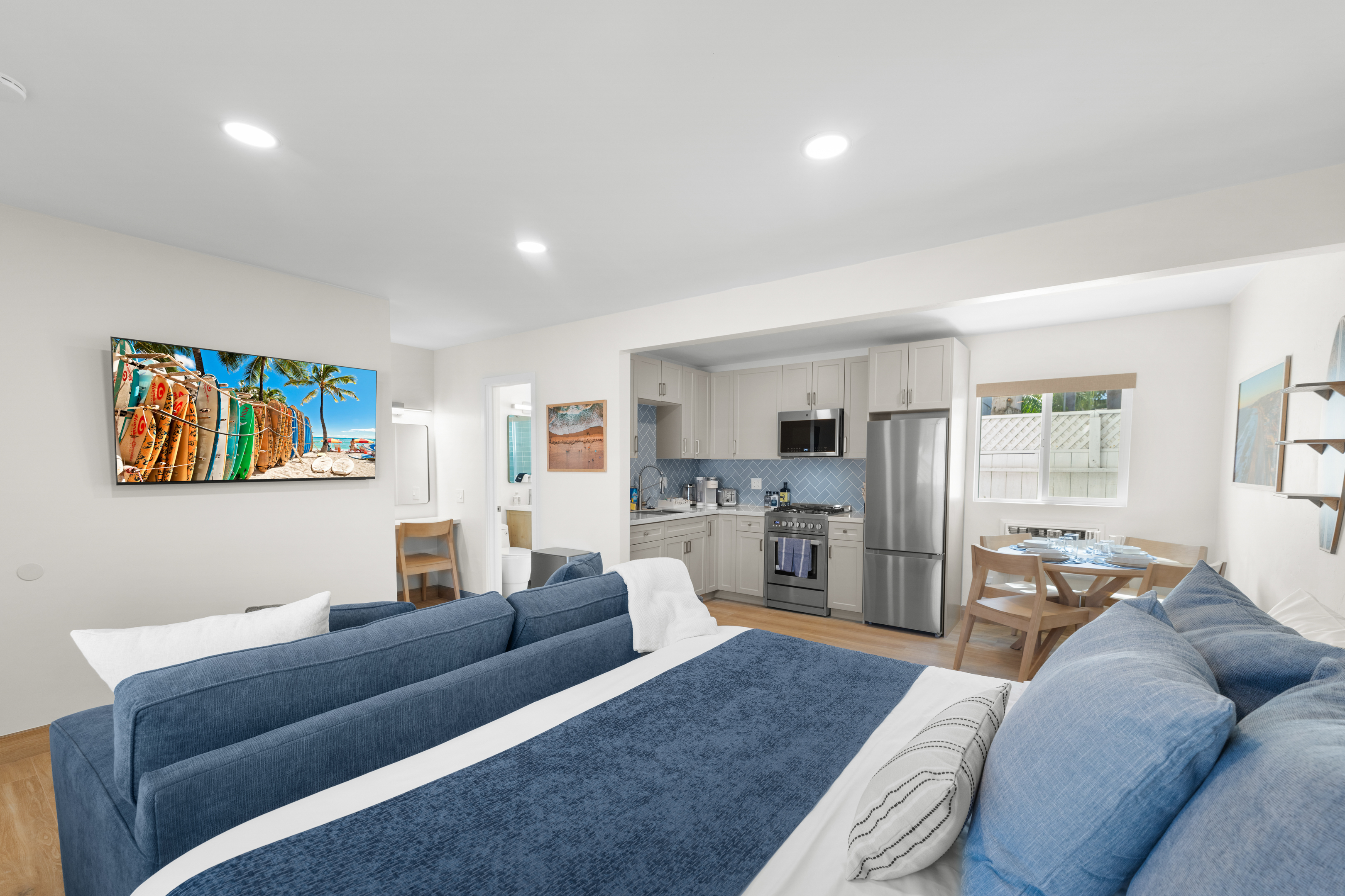 Just steps from the sand, boardwalk, surf breaks, sunset views, great coffee spots and that classic PB laid-back energy. This freshly remodeled studio is bright, modern, and perfectly set up for an easy beach getaway — pet-friendly too!