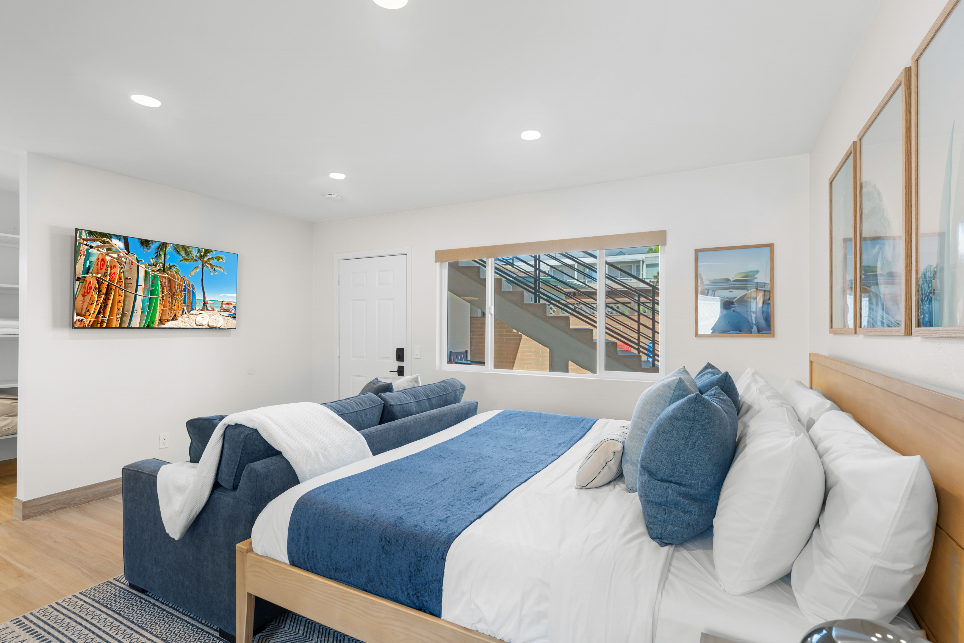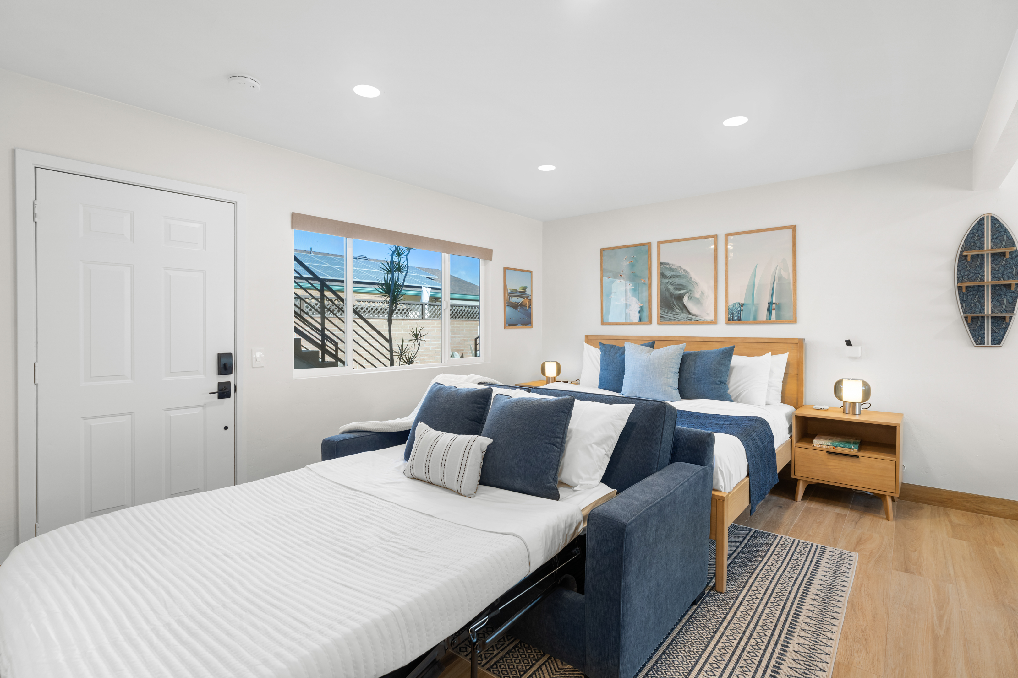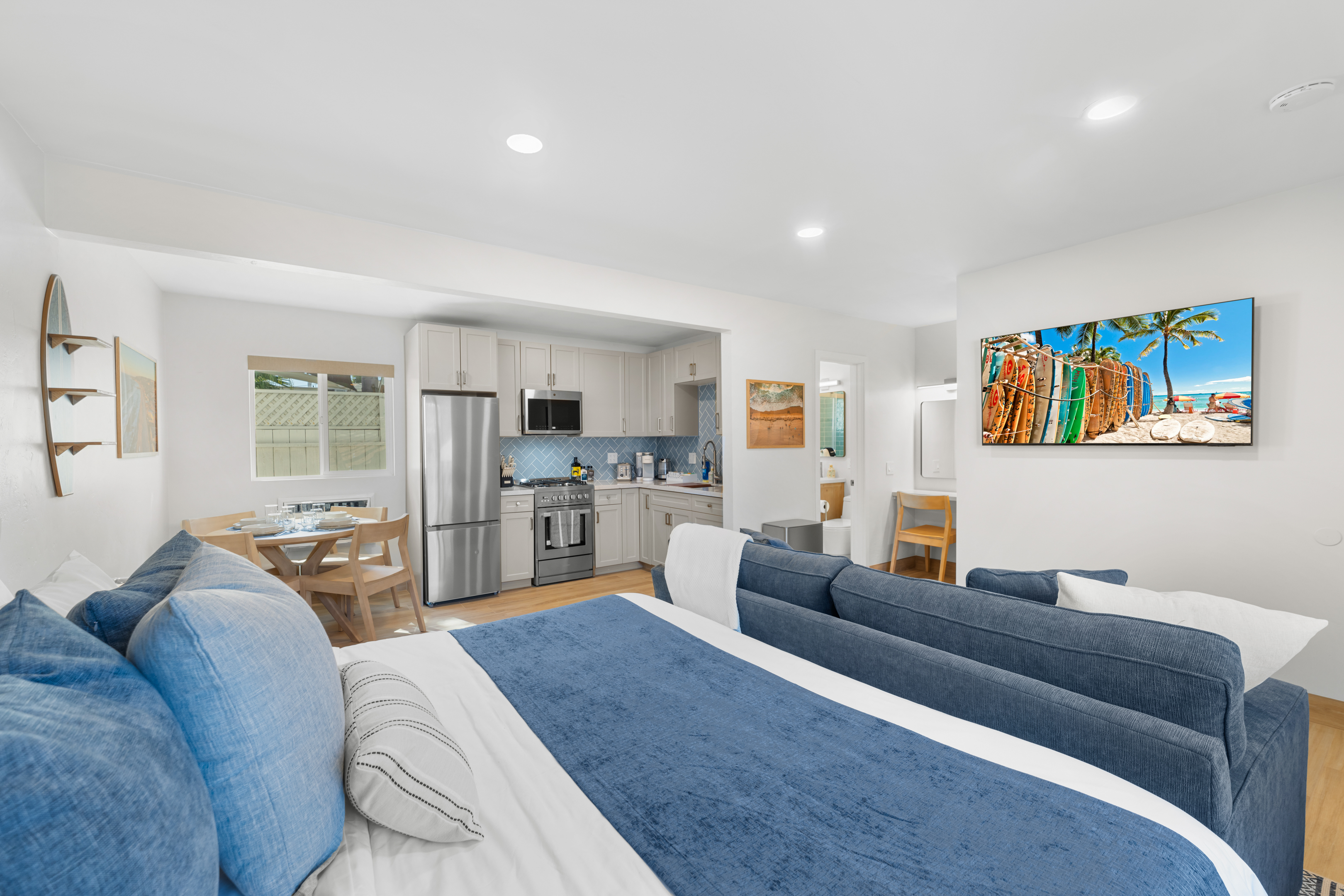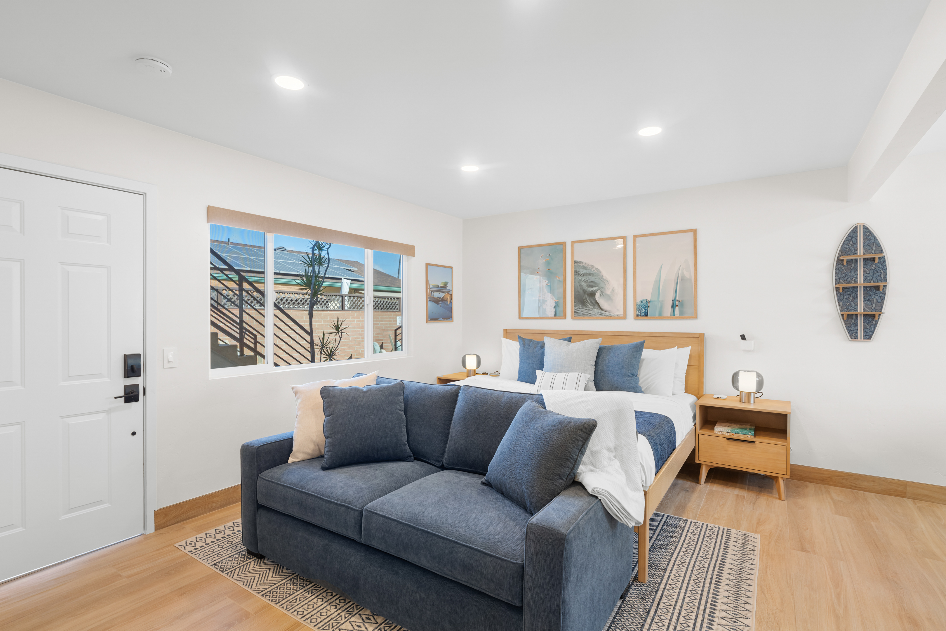 Just steps from the sand, boardwalk, surf breaks, sunset views, great coffee spots and that classic PB laid-back energy. This freshly remodeled studio is bright, modern, and perfectly set up for an easy beach getaway — pet-friendly too!