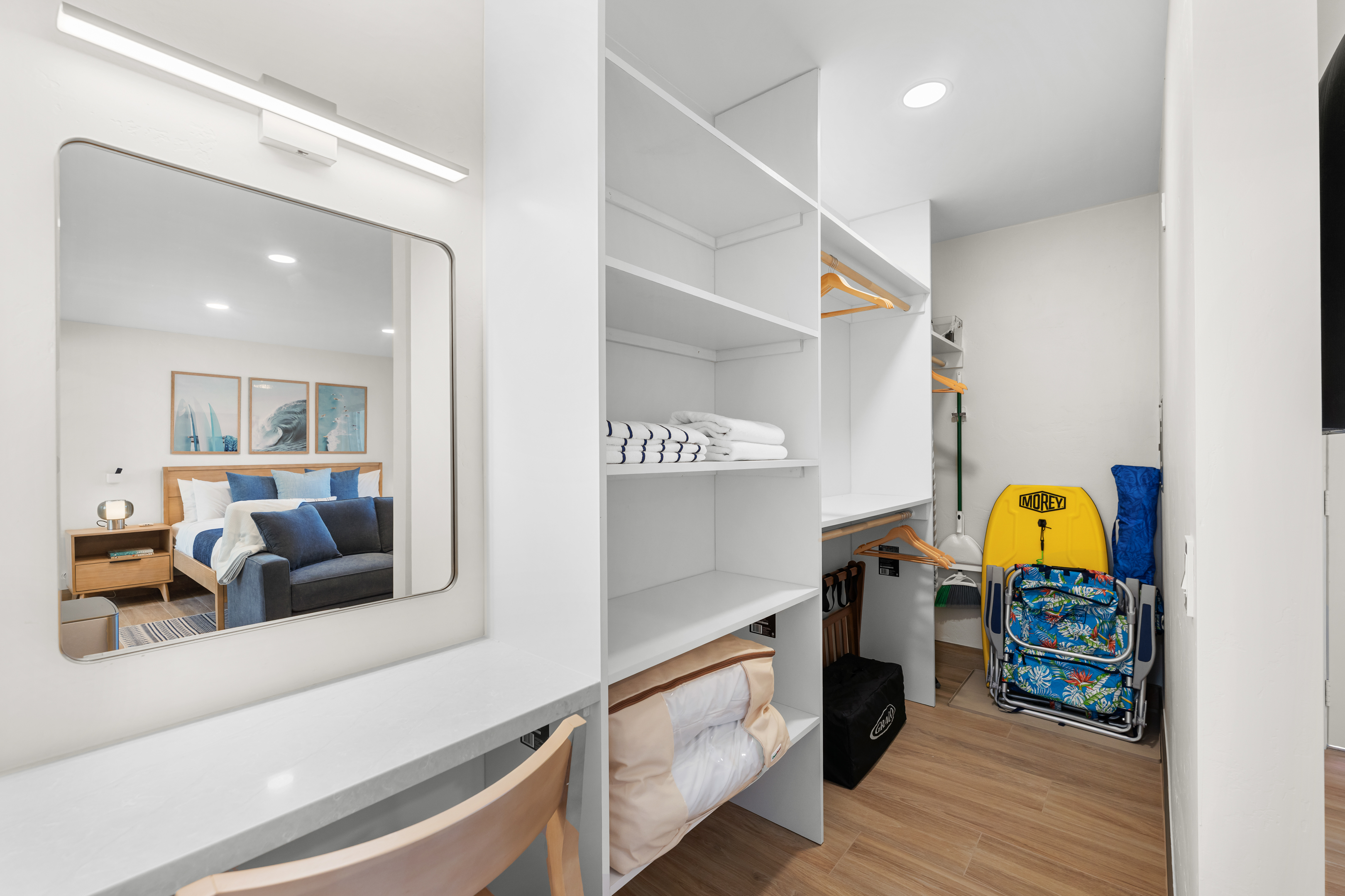 During your stay, you’ll have full, exclusive use of the entire studio. You’ll have access to: - The spacious sleeping area with a premium king-size bed (super comfy BedGear pillows + hotel-quality linens) - The cozy living area with a full-size queen sofa bed (perfect for extra guests) - A fully equipped kitchen — stainless steel appliances, plenty of cookware, dishes, utensils, Keurig coffee maker (with pods provided), and counter space to actually cook or prep - The full bathroom with a deep tub, sliding glass door, soft-close toilet, hair dryer, and stocked bathroom essentials (shampoo, conditioner, body wash, lotion) - Hotel-quality linens, plush beach towels. - Your own dedicated parking spot right at the building - The on-site shared laundry room — we provide two high-efficiency stackable washer + dryer units exclusively for our guests, completely free, plus detergent and dryer sheets (great for beach towels, kid clothes, or freshening up before you leave) Everything is set up so you can truly relax and feel at home the moment you arrive. Make yourself comfortable, kick back, and enjoy every minute of Pacific Beach life!