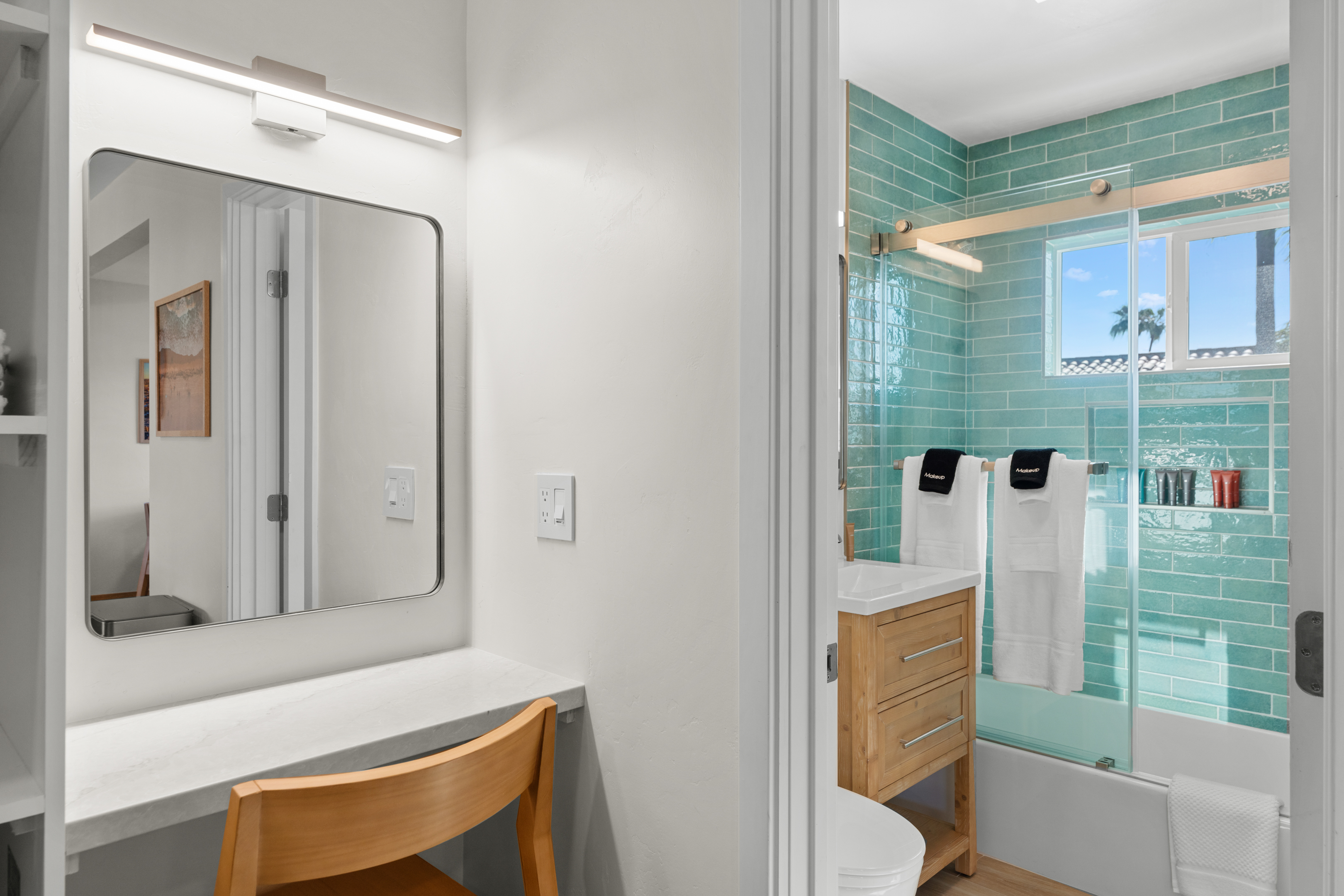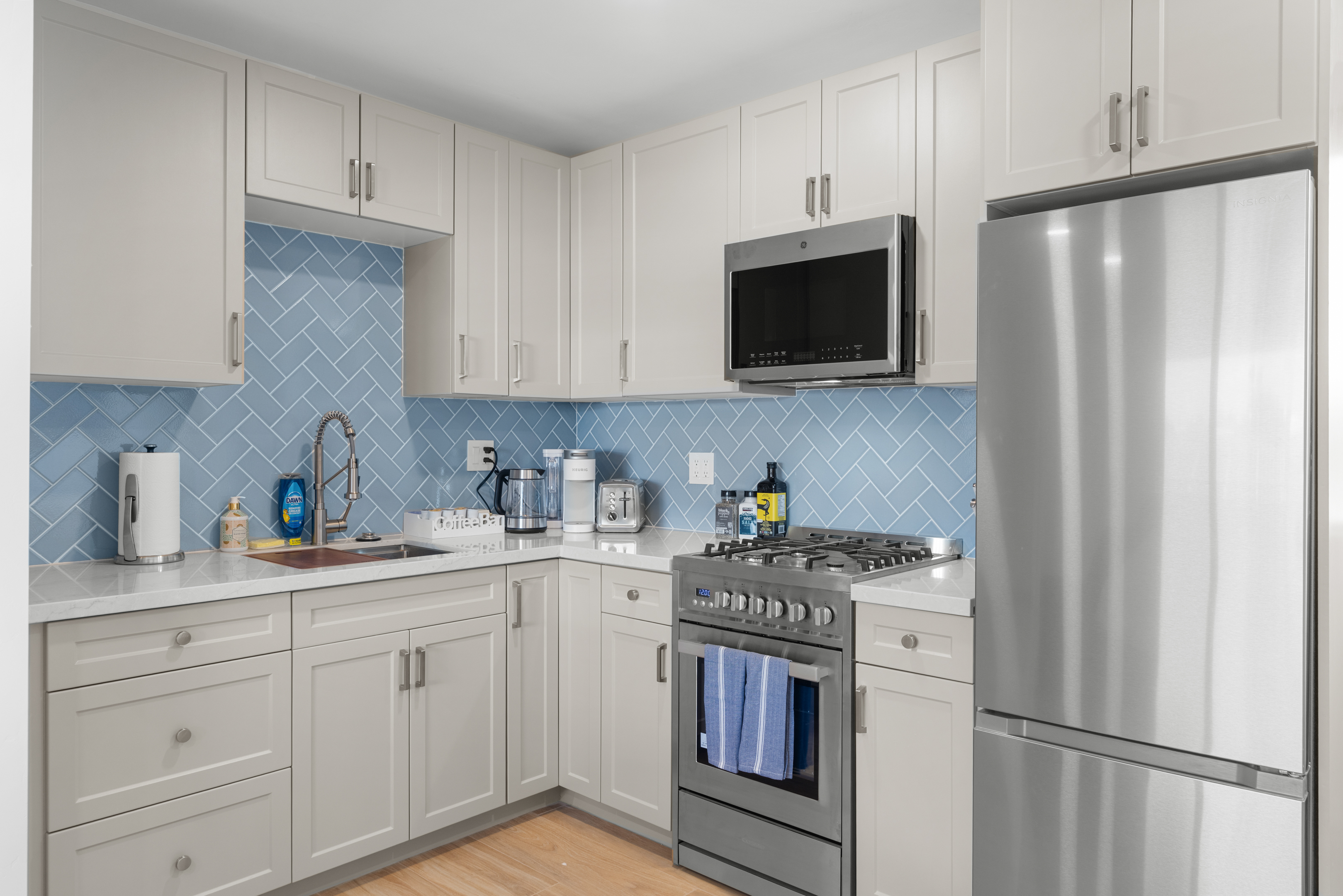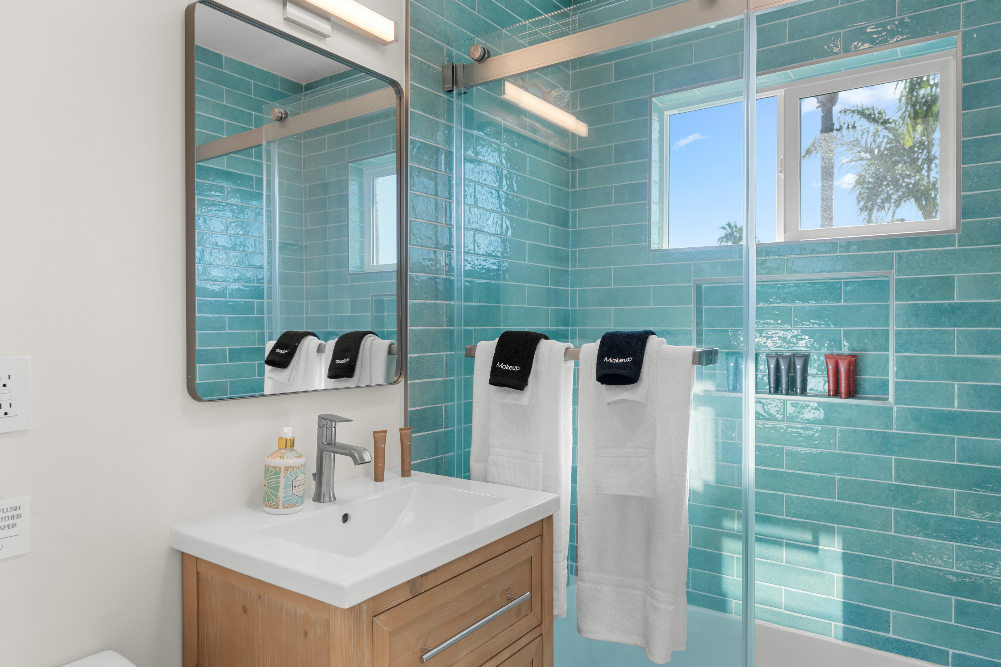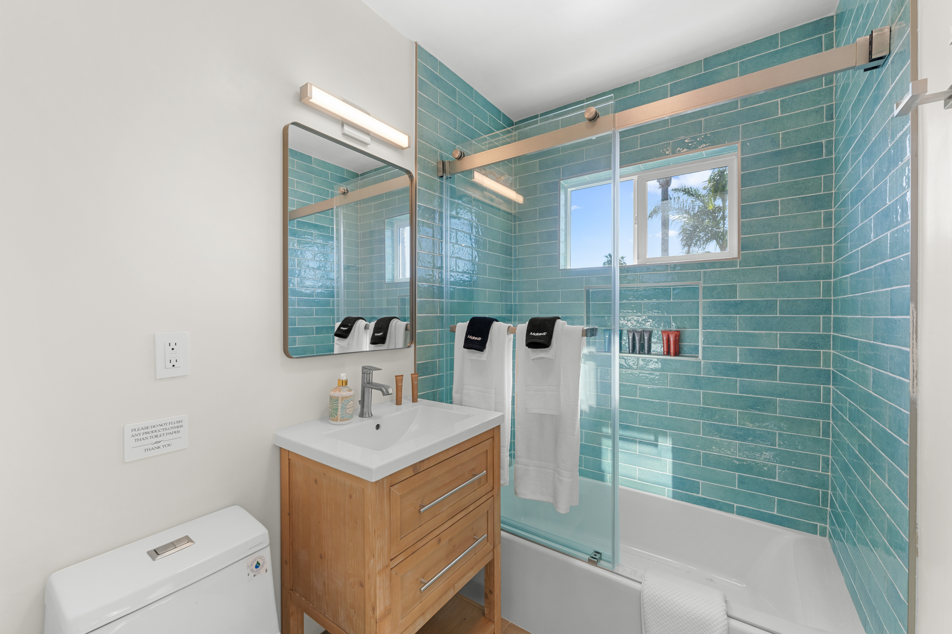 Welcome to a completely remodeled, light-filled second-floor studio in the heart of Pacific Beach. You’re just a short walk from the sand, boardwalk, surf breaks, sunset views, coffee shops, tacos, and the relaxed, lively PB energy everyone comes for. Arrival is effortless: one set of exterior stairs to reach the unit (no stairs inside the apartment), and no one above you for extra quiet and privacy. Keyless entry means you simply receive your personal code the morning of check-in and walk right in. Step inside to a bright, open floor plan with large windows that flood the space with natural light. At the center is a luxurious premium king BedGear bed — dressed in crisp hotel-quality linens and topped with pillows designed for deep, restful sleep. In front of the bed sits a comfortable sofa that pulls out into a full-size queen sleeper, easily sleeping 4 guests. Large nightstands with extension cords make overnight charging simple and tidy. Roll-down blackout shades cover every window, giving you total control over light and guaranteeing peaceful mornings no matter how late the PB nightlife runs. The full kitchen feels brand new and ready to use: stainless steel appliances, generous counter space, plenty of storage for anything you bring, and a Keurig coffee maker stocked with pods and sugar so your day starts right. Nearby is a proper dining table that seats four comfortably. The spa-like bathroom features a deep tub enclosed by a sleek sliding glass door, soft-close toilet, hair dryer, and a full set of bathroom essentials (shampoo, conditioner, body wash, body lotion). Just outside the bathroom you’ll find a handy desk/vanity area — perfect for work, makeup, or extra prep space. A large walk-in closet gives you tons of room for luggage, beach gear, clothes, and everything else you bring. We’ve thought of the little things too: beach chairs, Pack ’n Play, iron + ironing board, luggage rack, vacuum, and basic cleaning supplies are all provided. One dedicated parking spot is included — a true luxury in Pacific Beach. And to make life even easier (especially with little ones, beach towels, or packing up), guests have access to the on-site shared laundry room. We provide two stackable high-efficiency washers and dryers exclusively for our guests — completely complimentary, including detergent and dryer sheets. Pet-friendly and family-friendly, this fresh, modern studio feels clean, stylish, and perfectly set up for an effortless Pacific Beach getaway. Your ideal PB home base is ready — come make some memories! STR-13352L TOT: 659992