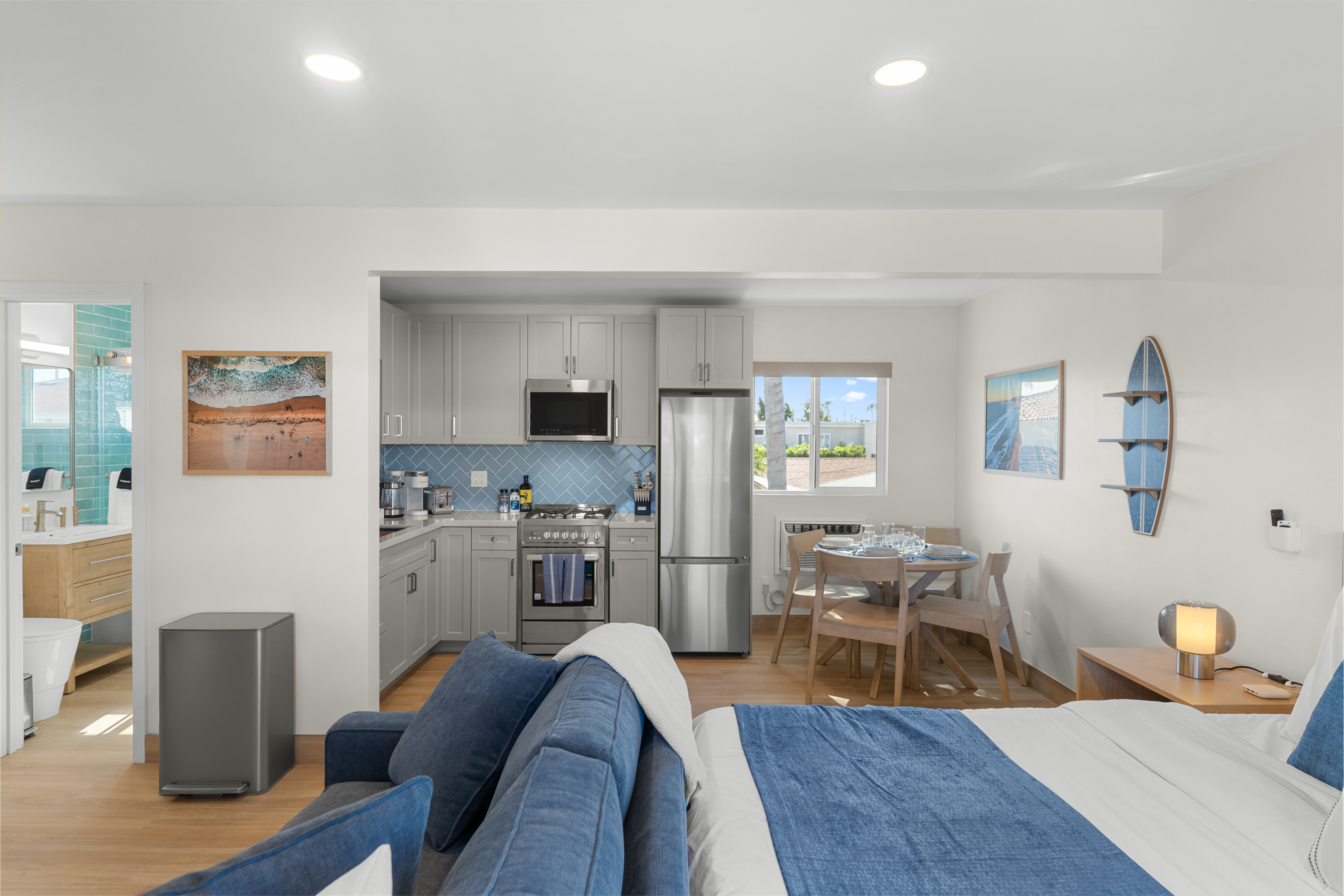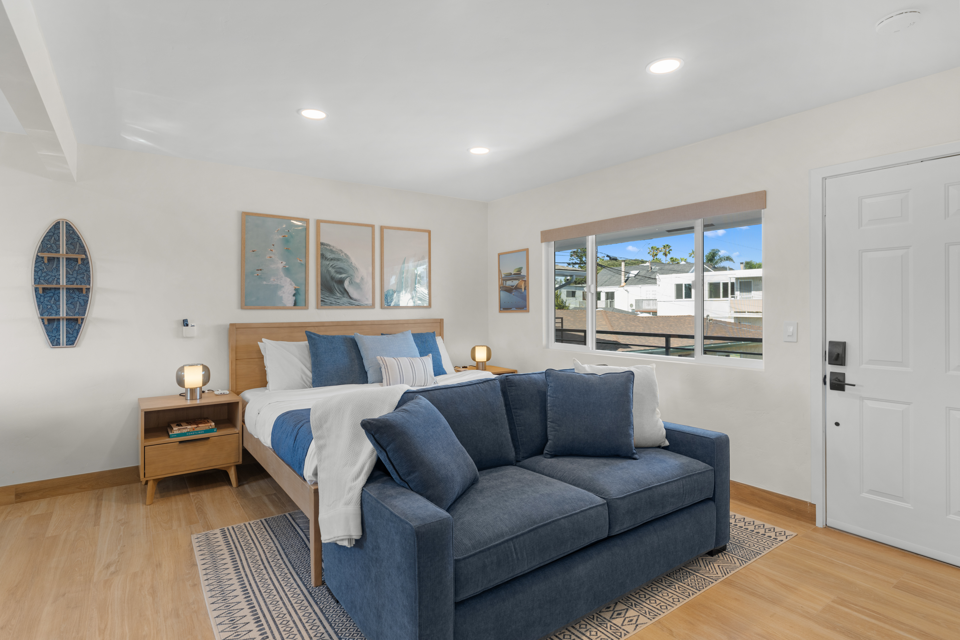 Just steps from the sand, boardwalk, surf breaks, sunset views, great coffee spots and that classic PB laid-back energy. This freshly remodeled studio is bright, modern, and perfectly set up for an easy beach getaway — pet-friendly too!