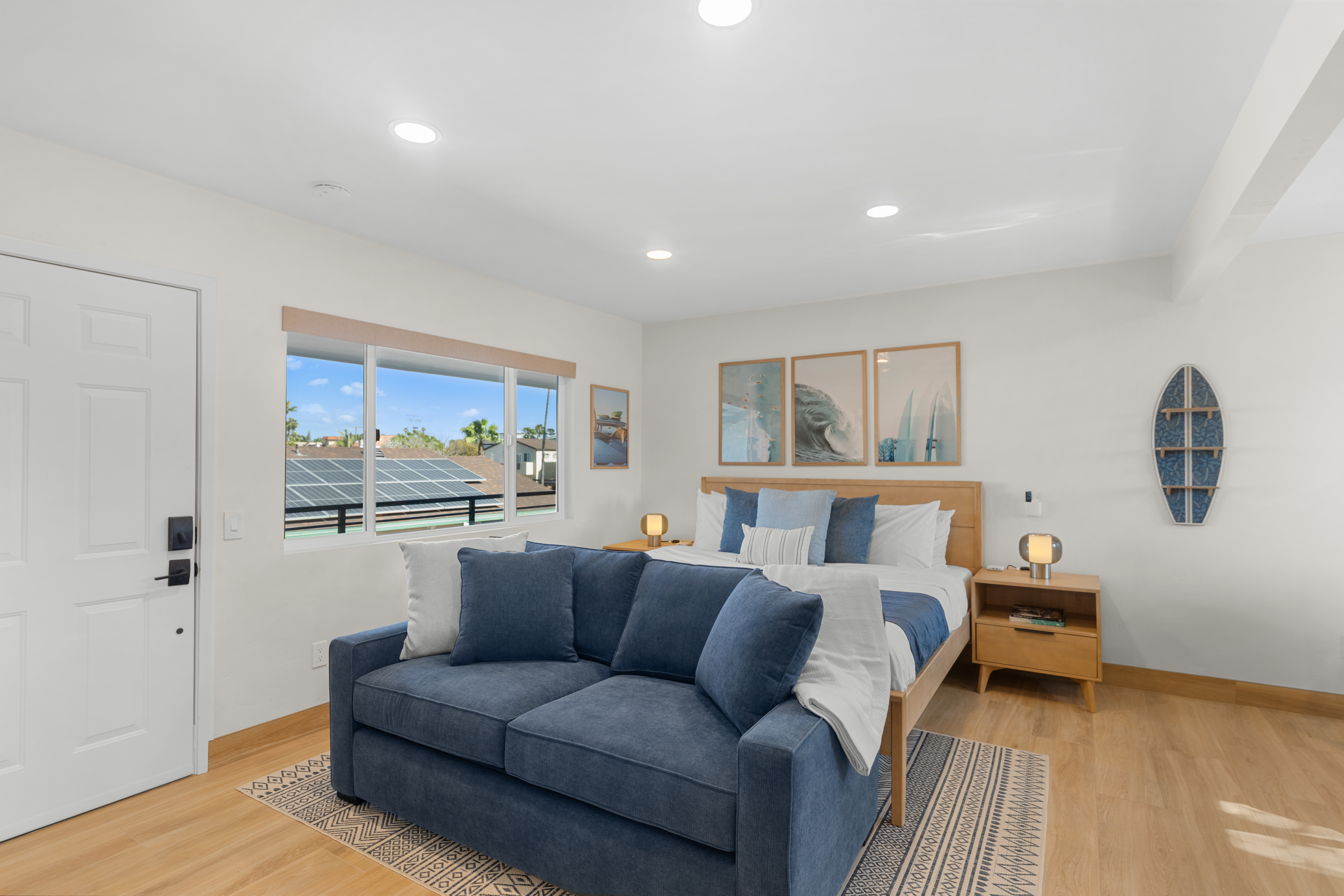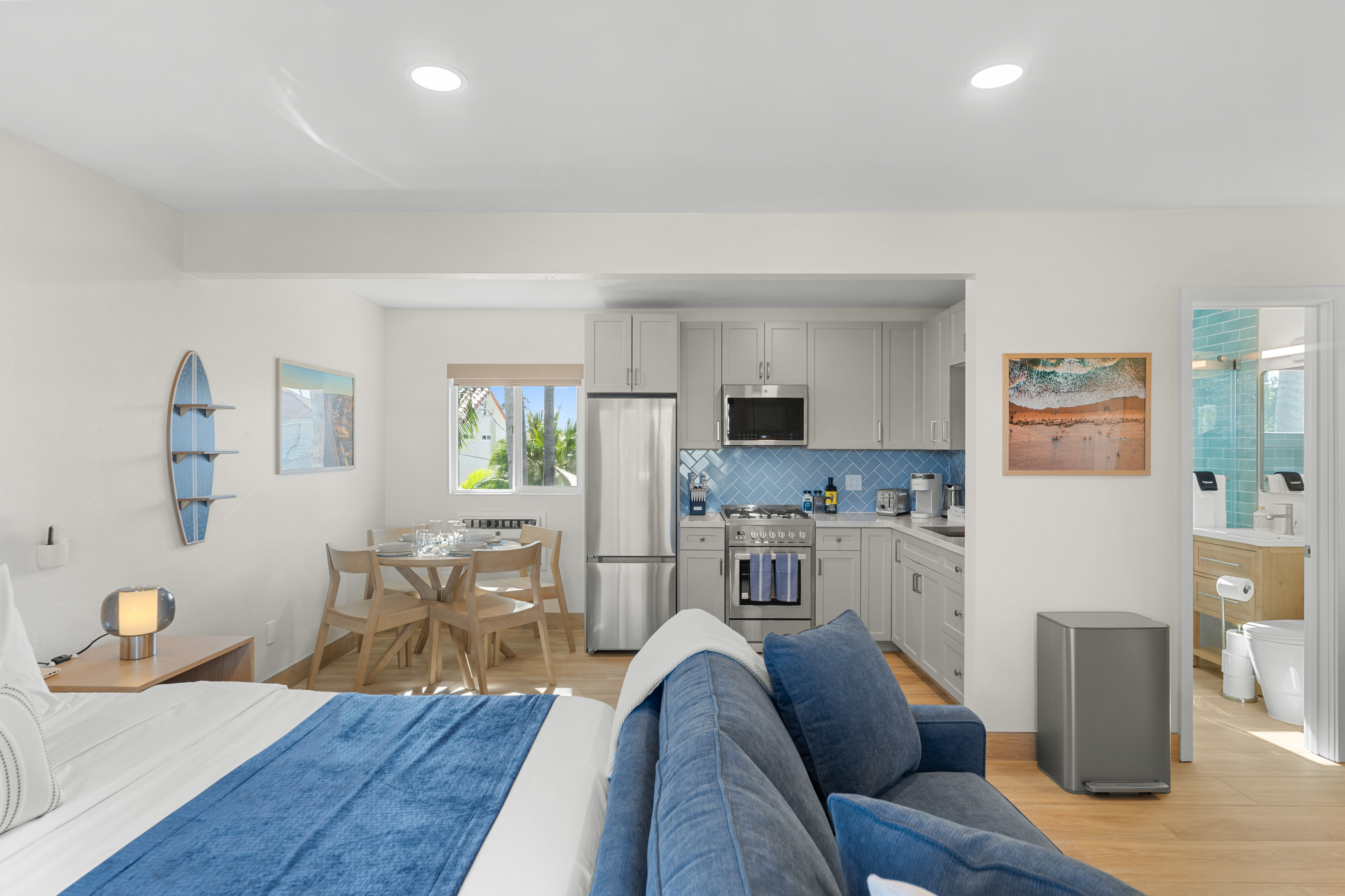 Just steps from the sand, boardwalk, surf breaks, sunset views, great coffee spots and that classic PB laid-back energy. This freshly remodeled studio is bright, modern, and perfectly set up for an easy beach getaway — pet-friendly too!