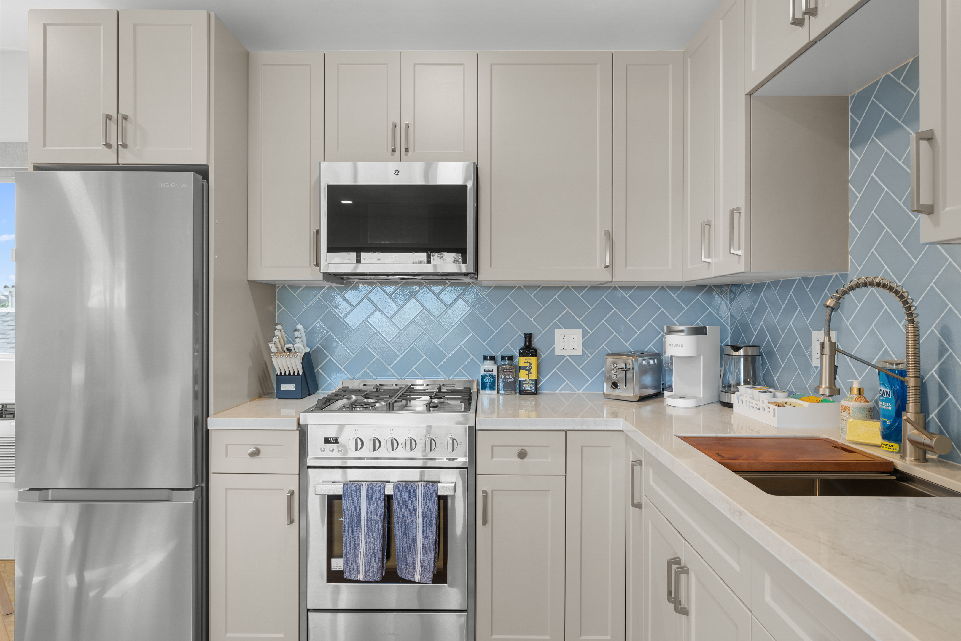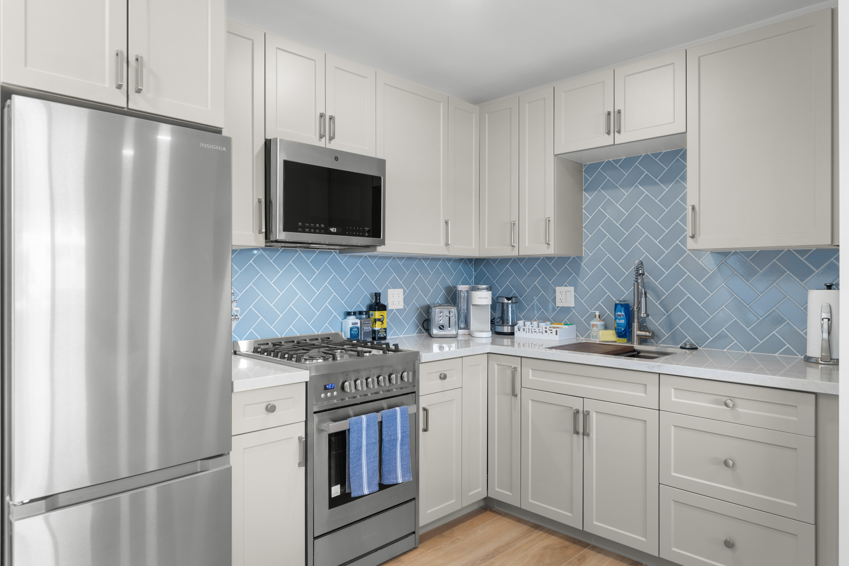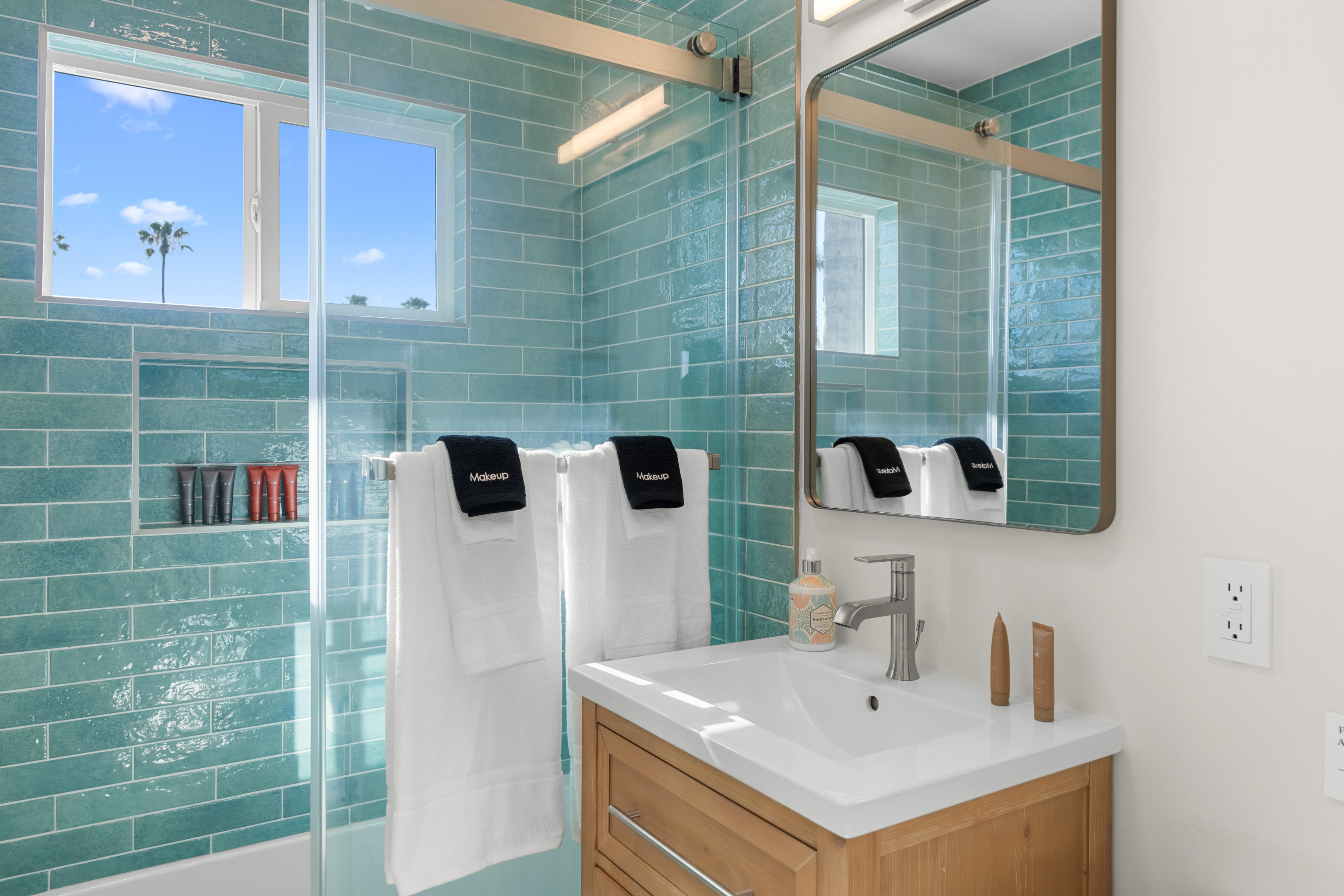 Welcome to a completely remodeled, light-filled second-floor studio in the heart of Pacific Beach. You’re just a short walk from the sand, boardwalk, surf breaks, sunset views, coffee shops, tacos, and the relaxed, lively PB energy everyone comes for. Arrival is effortless: one set of exterior stairs to reach the unit (no stairs inside the apartment), and no one above you for extra quiet and privacy. Keyless entry means you simply receive your personal code the morning of check-in and walk right in. Step inside to a bright, open floor plan with large windows that flood the space with natural light. At the center is a luxurious premium king BedGear bed — dressed in crisp hotel-quality linens and topped with pillows designed for deep, restful sleep. In front of the bed sits a comfortable sofa that pulls out into a full-size queen sleeper, easily sleeping 4 guests. Large nightstands with extension cords make overnight charging simple and tidy. Roll-down blackout shades cover every window, giving you total control over light and guaranteeing peaceful mornings no matter how late the PB nightlife runs. The full kitchen feels brand new and ready to use: stainless steel appliances, generous counter space, plenty of storage for anything you bring, and a Keurig coffee maker stocked with pods and sugar so your day starts right. Nearby is a proper dining table that seats four comfortably. The spa-like bathroom features a deep tub enclosed by a sleek sliding glass door, soft-close toilet, hair dryer, and a full set of bathroom essentials (shampoo, conditioner, body wash, body lotion). Just outside the bathroom you’ll find a handy desk/vanity area — perfect for work, makeup, or extra prep space. A large walk-in closet gives you tons of room for luggage, beach gear, clothes, and everything else you bring. We’ve thought of the little things too: beach chairs, Pack ’n Play, iron + ironing board, luggage rack, vacuum, and basic cleaning supplies are all provided. One dedicated parking spot is included — a true luxury in Pacific Beach. And to make life even easier (especially with little ones, beach towels, or packing up), guests have access to the on-site shared laundry room. We provide two stackable high-efficiency washers and dryers exclusively for our guests — completely complimentary, including detergent and dryer sheets. Pet-friendly and family-friendly, this fresh, modern studio feels clean, stylish, and perfectly set up for an effortless Pacific Beach getaway. Your ideal PB home base is ready — come make some memories! STR-13351L TOT: 659992