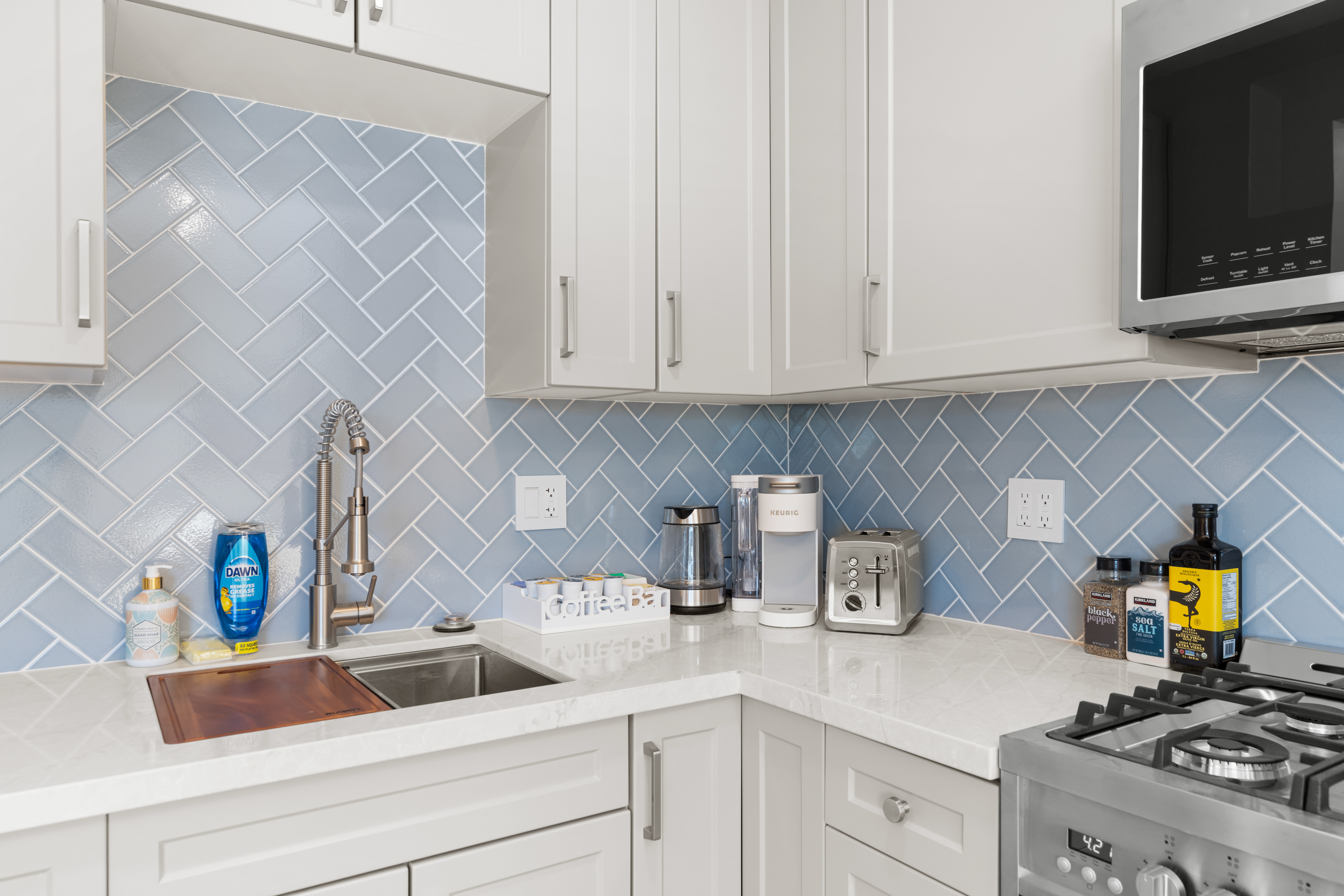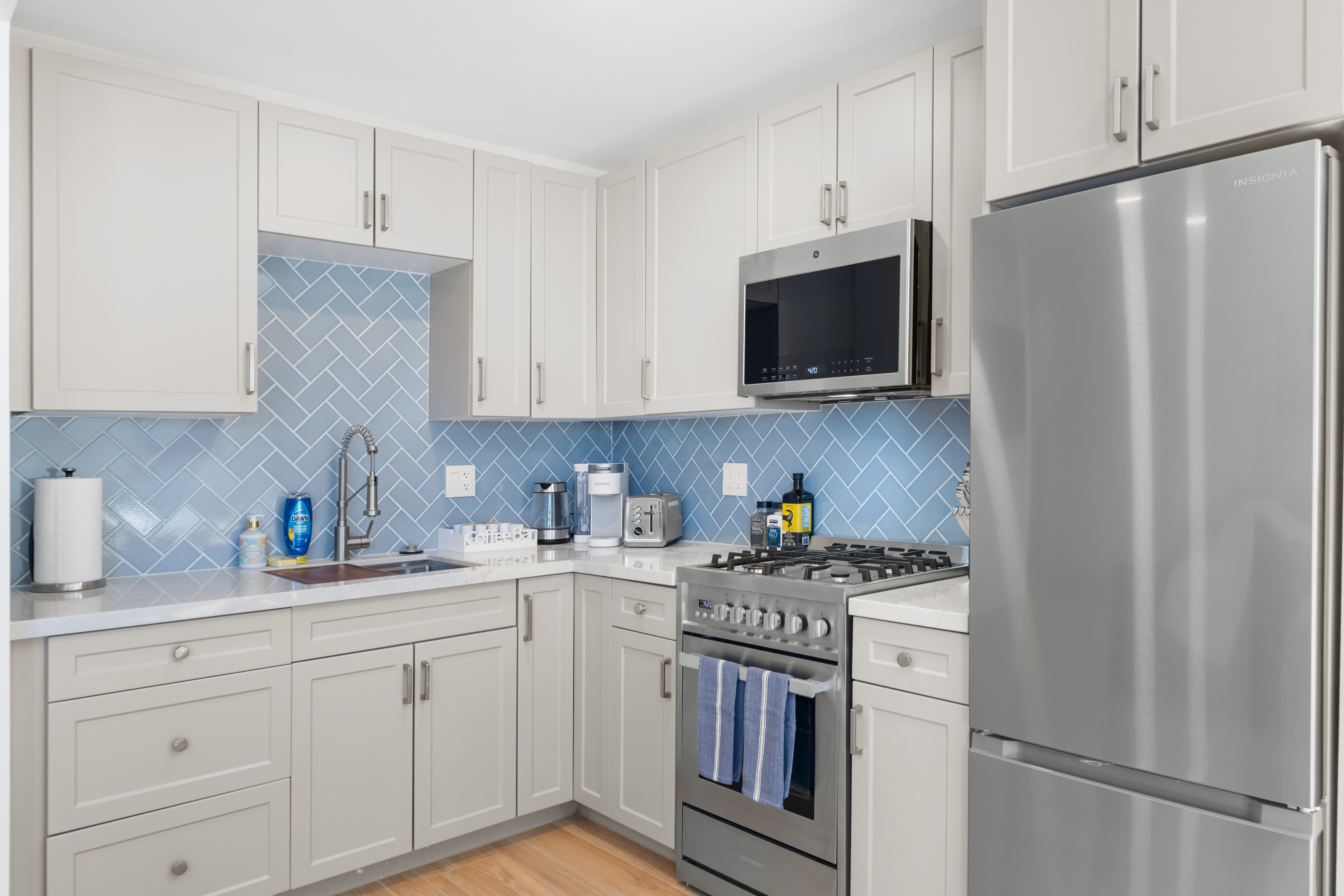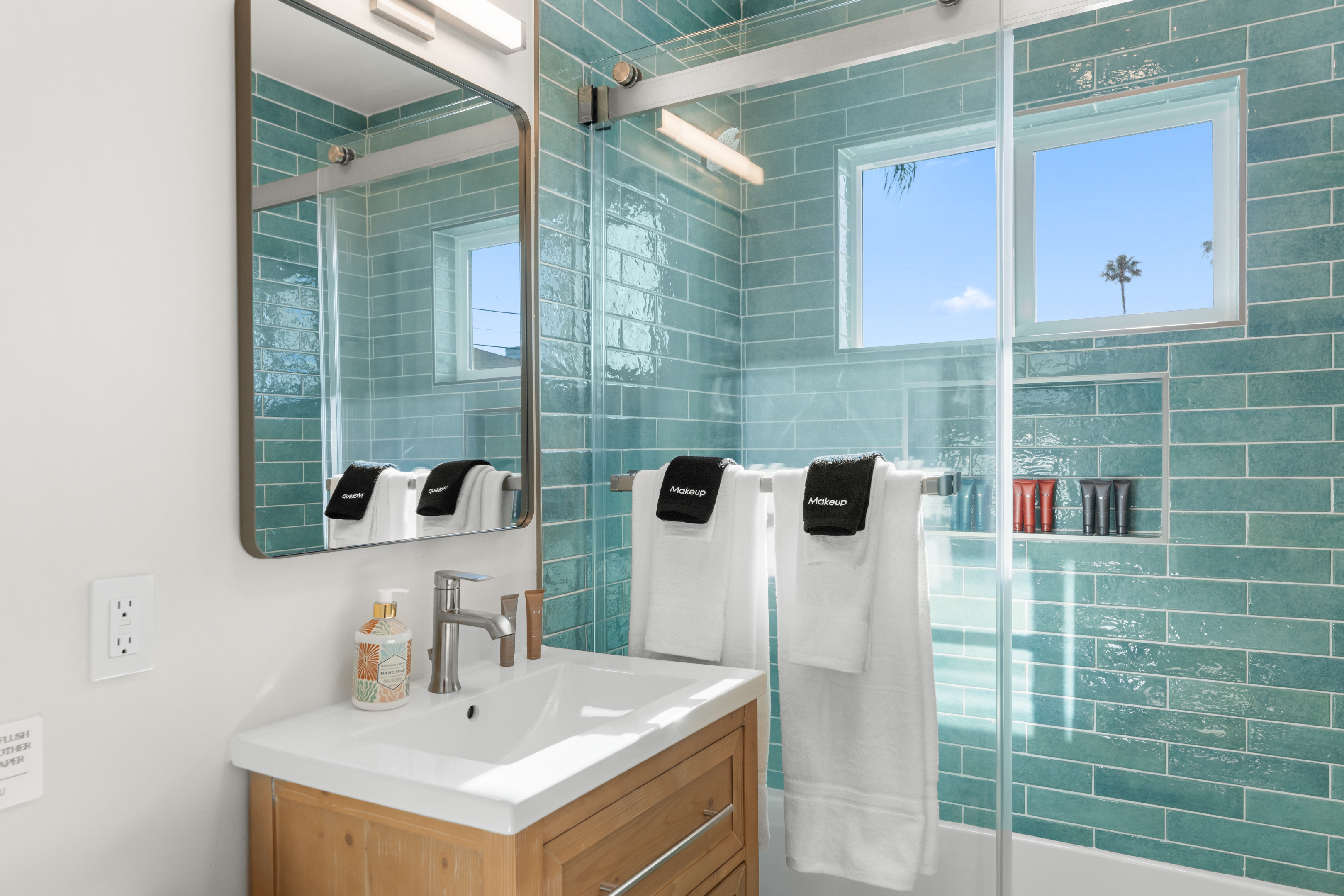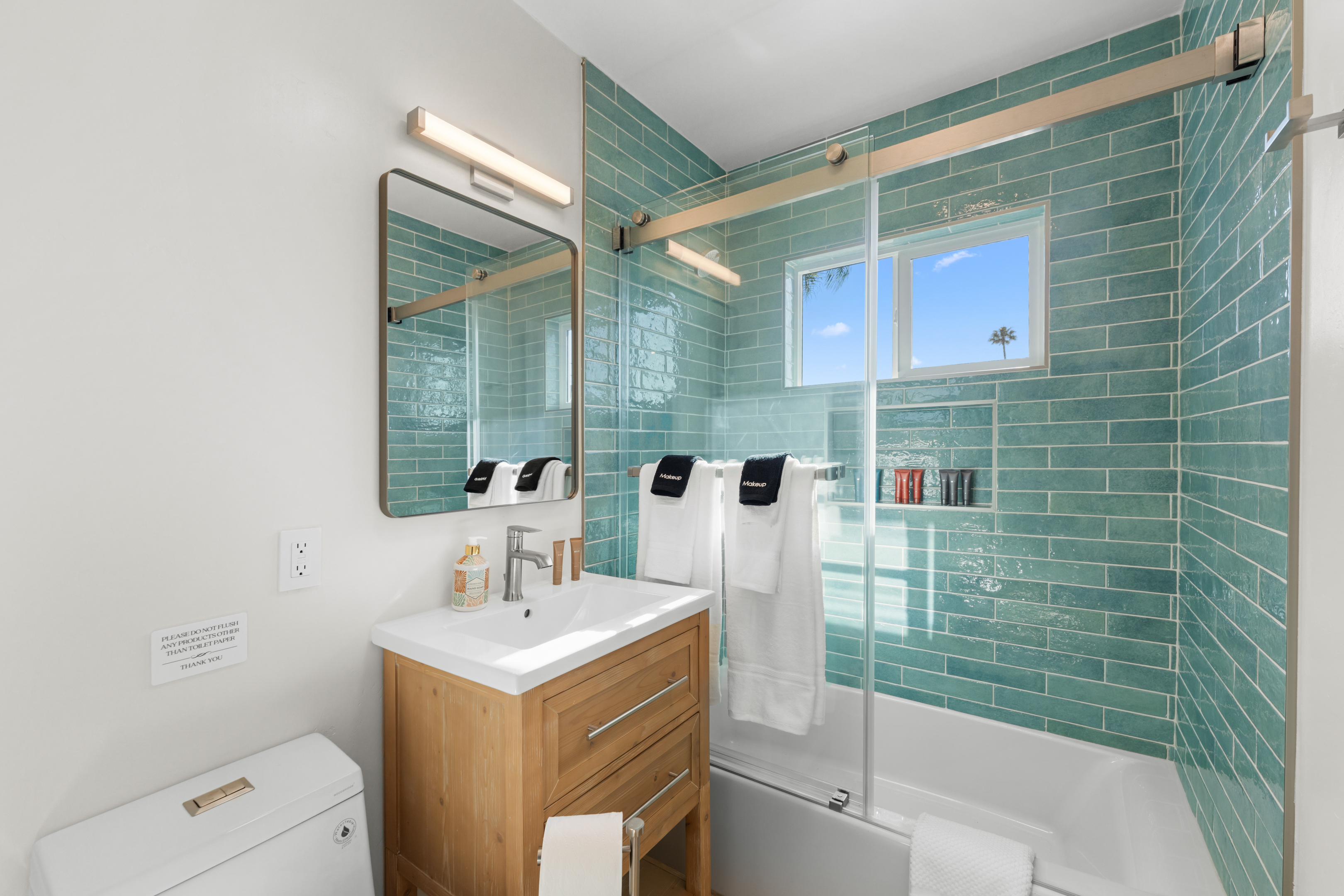 Welcome to a completely remodeled, light-filled second-floor studio in the heart of Pacific Beach. You’re just a short walk from the sand, boardwalk, surf breaks, sunset views, coffee shops, tacos, and the relaxed, lively PB energy everyone comes for. Arrival is effortless: one set of exterior stairs to reach the unit (no stairs inside the apartment), and no one above you for extra quiet and privacy. Keyless entry means you simply receive your personal code the morning of check-in and walk right in. Step inside to a bright, open floor plan with large windows that flood the space with natural light. At the center is a luxurious premium king BedGear bed — dressed in crisp hotel-quality linens and topped with pillows designed for deep, restful sleep. In front of the bed sits a comfortable sofa that pulls out into a full-size queen sleeper, easily sleeping 4 guests. Large nightstands with extension cords make overnight charging simple and tidy. Roll-down blackout shades cover every window, giving you total control over light and guaranteeing peaceful mornings no matter how late the PB nightlife runs. The full kitchen feels brand new and ready to use: stainless steel appliances, generous counter space, plenty of storage for anything you bring, and a Keurig coffee maker stocked with pods and sugar so your day starts right. Nearby is a proper dining table that seats four comfortably. The spa-like bathroom features a deep tub enclosed by a sleek sliding glass door, soft-close toilet, hair dryer, and a full set of bathroom essentials (shampoo, conditioner, body wash, body lotion). Just outside the bathroom you’ll find a handy desk/vanity area — perfect for work, makeup, or extra prep space. A large walk-in closet gives you tons of room for luggage, beach gear, clothes, and everything else you bring. We’ve thought of the little things too: beach chairs, Pack ’n Play, iron + ironing board, luggage rack, vacuum, and basic cleaning supplies are all provided. One dedicated parking spot is included — a true luxury in Pacific Beach. And to make life even easier (especially with little ones, beach towels, or packing up), guests have access to the on-site shared laundry room. We provide two stackable high-efficiency washers and dryers exclusively for our guests — completely complimentary, including detergent and dryer sheets. Pet-friendly and family-friendly, this fresh, modern studio feels clean, stylish, and perfectly set up for an effortless Pacific Beach getaway. Your ideal PB home base is ready — come make some memories! STR-13340L TOT: 659992