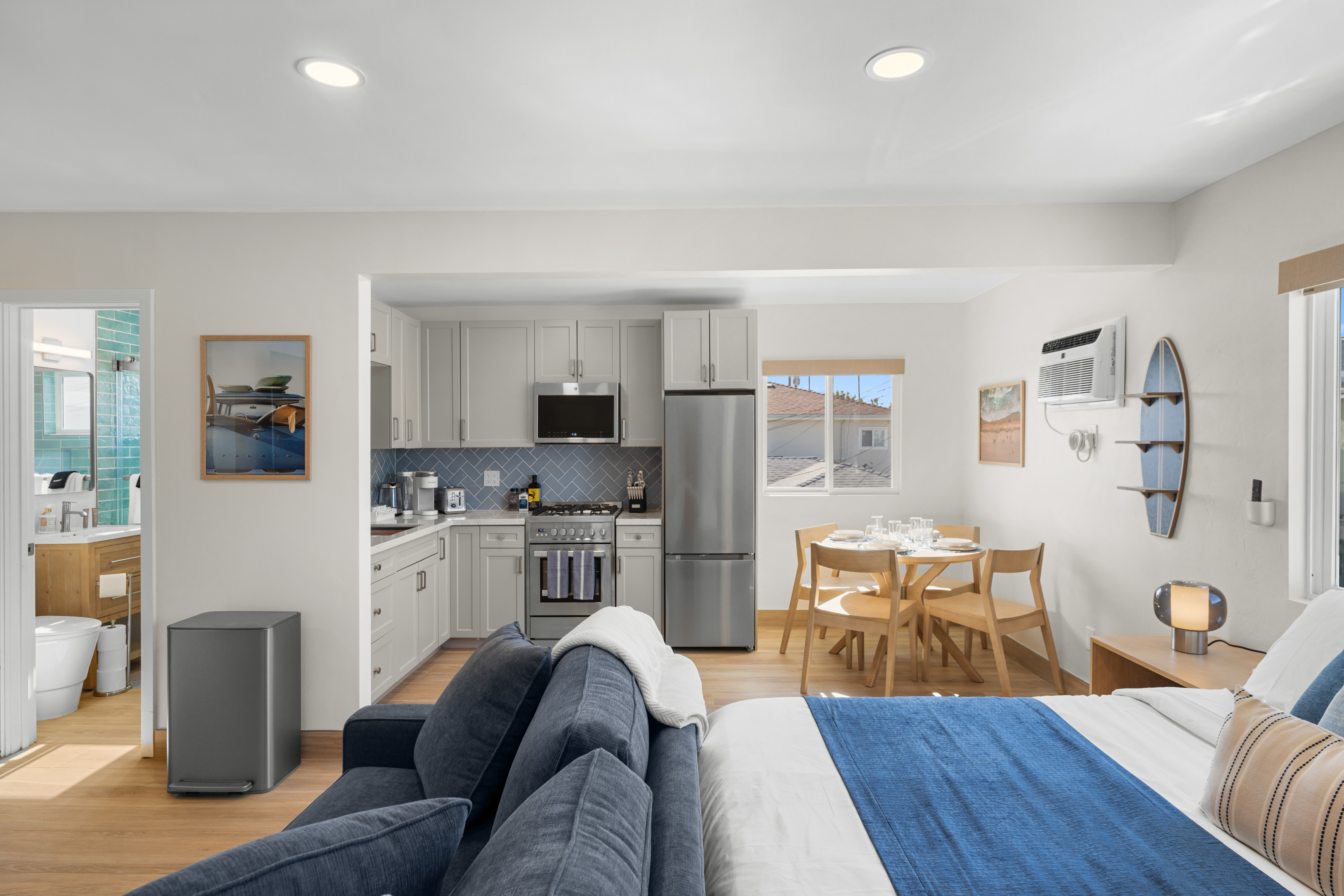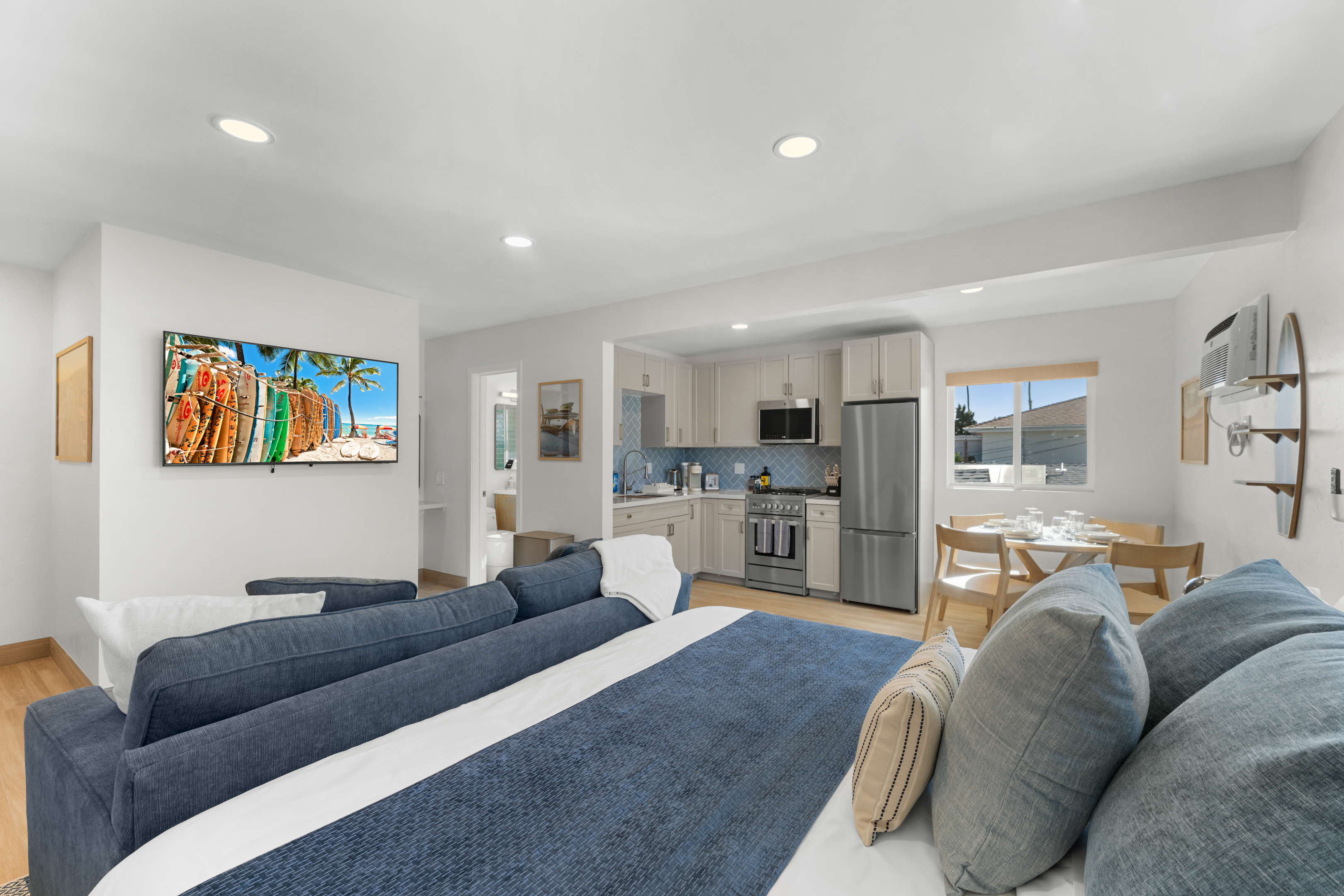 Just steps from the sand, boardwalk, surf breaks, sunset views, great coffee spots and that classic PB laid-back energy. This freshly remodeled studio is bright, modern, and perfectly set up for an easy beach getaway — pet-friendly too!