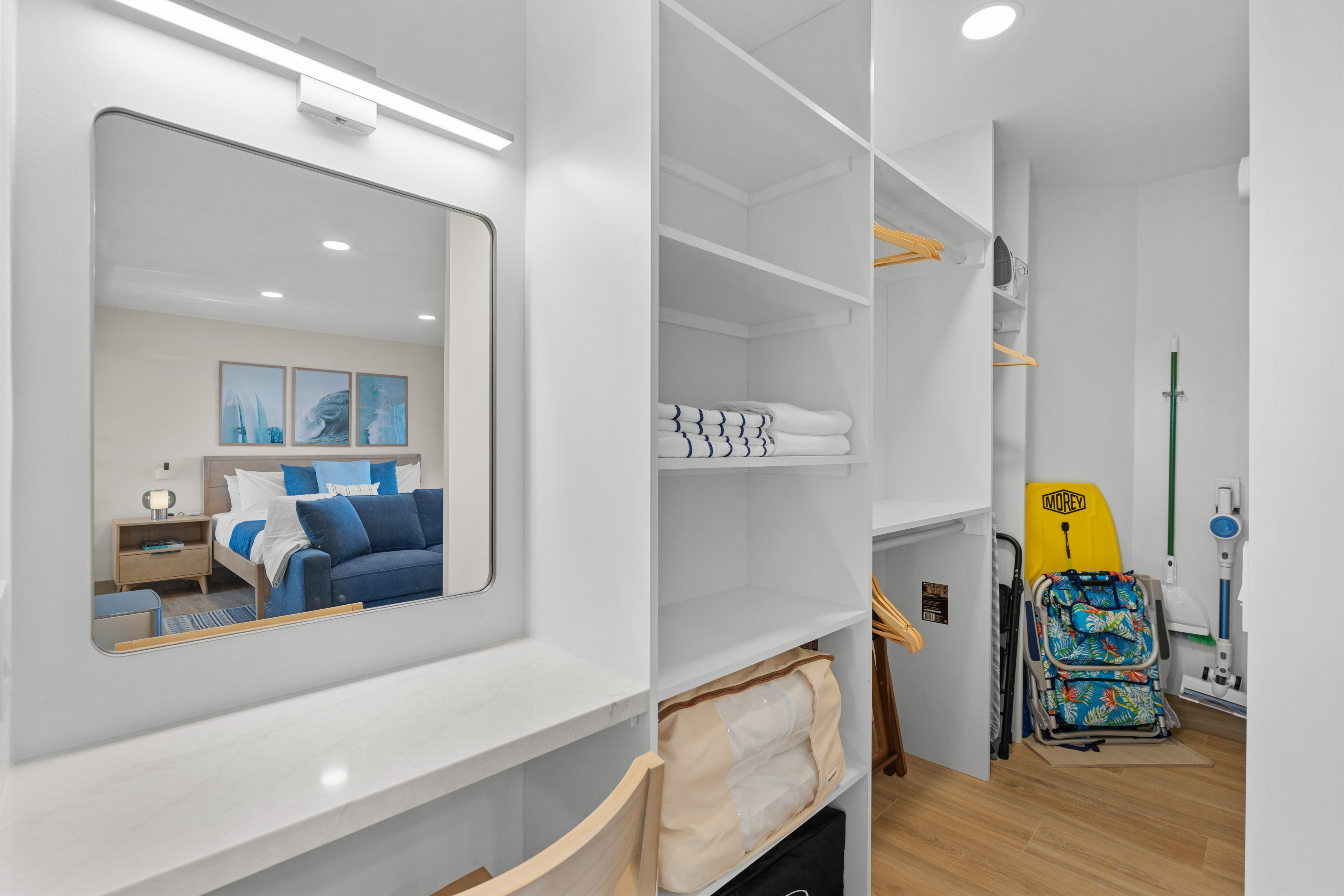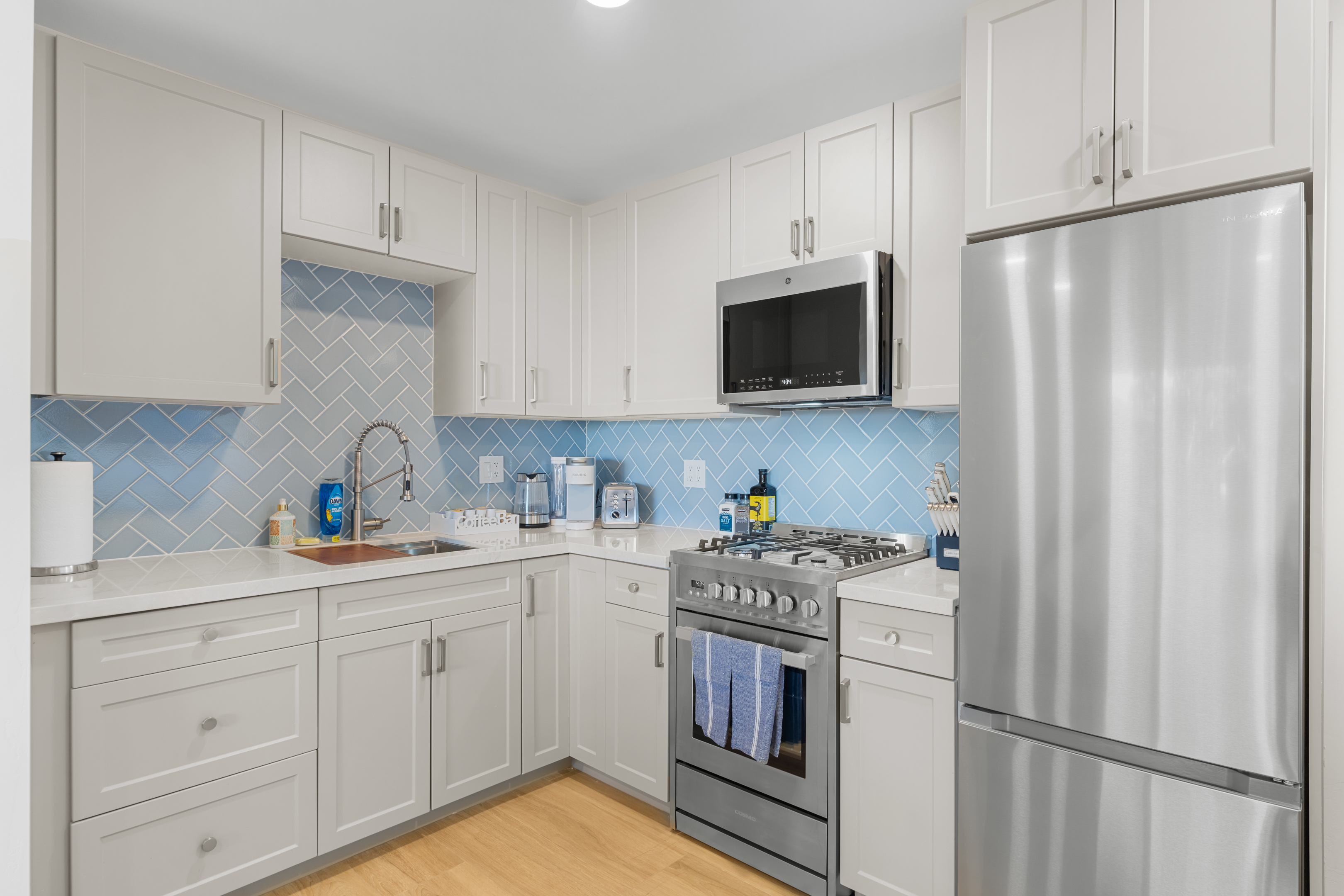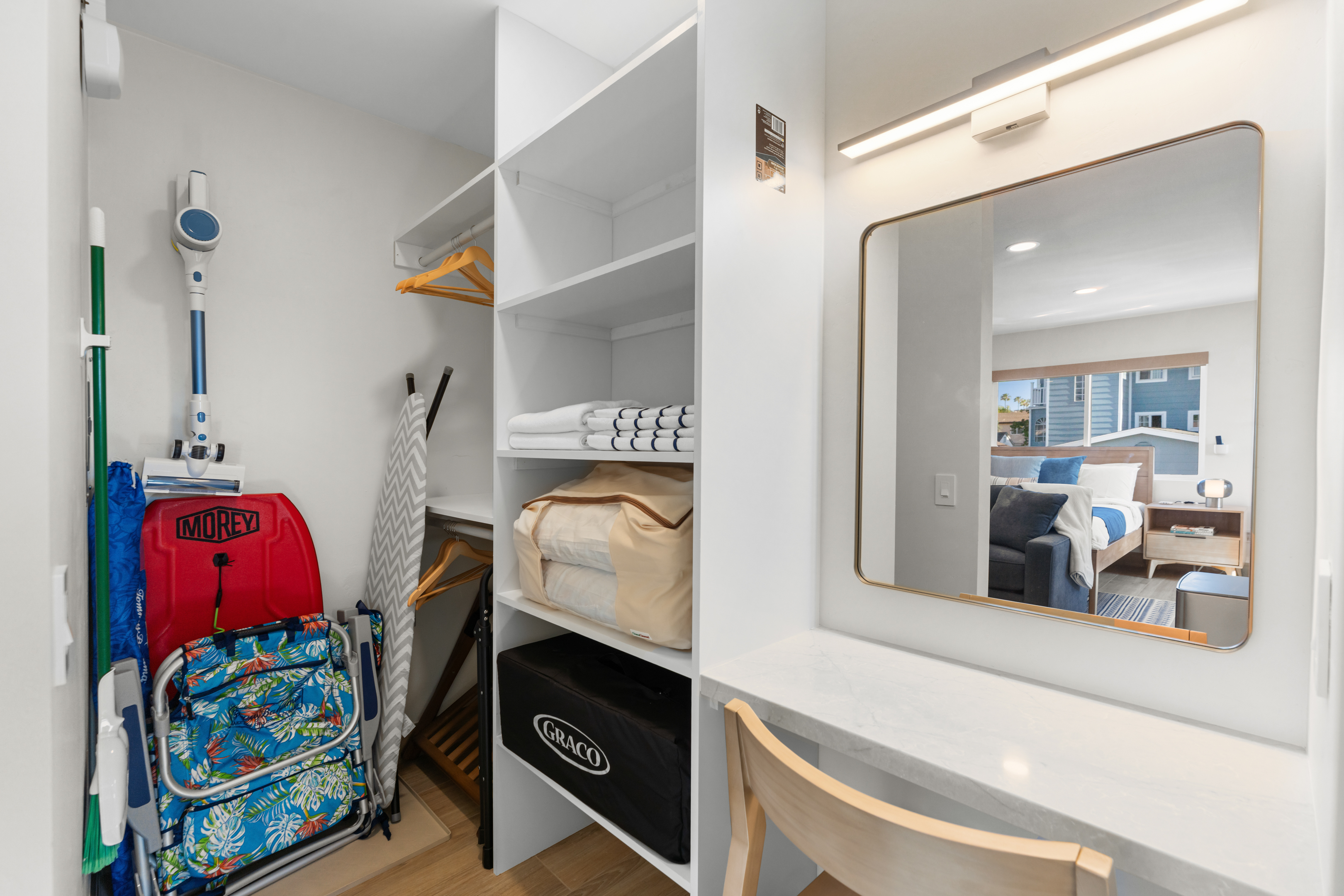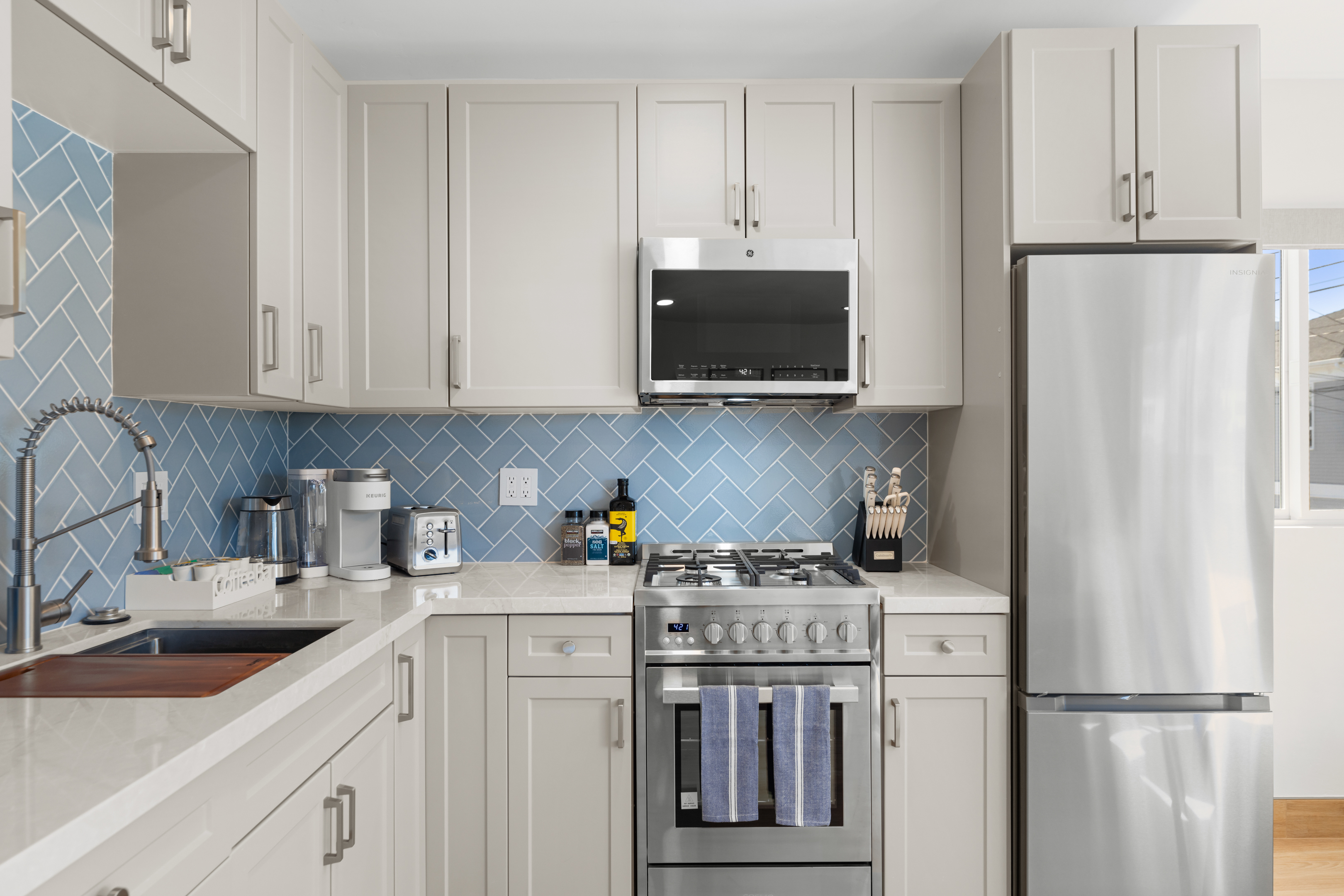 Welcome to the entire two-story building at 1244 Oliver Ave — a completely remodeled, light-filled multi-unit property right in the heart of Pacific Beach. Rent the whole building exclusively and enjoy 9 modern apartments: 8 identical ~400 sq ft studios (5 upstairs, 4 downstairs) and one spacious ~700 sq ft one-bedroom on the first floor, all finished with the same fresh, coastal-inspired design for seamless group accommodations. You’re steps from PB’s best: the beach, boardwalk, surf spots, epic sunsets, coffee shops, taco stands, and that signature relaxed-yet-energetic vibe. Arrival is simple with keyless entry — personal codes arrive the morning of check-in for easy access. Please note: The upstairs studios (5 units) require stairs (no elevator), while the downstairs studios (4 units) and the one-bedroom are fully first-floor with no stairs needed. Each studio offers a bright, open floor plan with large windows pouring in natural light, a luxurious premium king BedGear bed dressed in crisp hotel-quality linens and pillows for deep rest, a full-size queen sofa sleeper (sleeps up to 4 per unit), large nightstands with extension cords for charging, and roll-down blackout shades for complete light control and quiet mornings after PB evenings. The one-bedroom provides extra privacy and space: a separate bedroom with the same premium king BedGear setup as a true retreat (door for quiet rest), his-and-hers built-out closets for ample, organized storage of clothes, luggage, and beach gear, plus the open living area with queen sofa sleeper and a proper dining table seating four. Every unit includes a brand-new full kitchen: stainless steel appliances, generous counter space, plenty of storage, a Keurig coffee maker stocked with pods and sugar, cookware, dishes, utensils, and more. The spa-like bathrooms feature a deep tub with sleek sliding glass door, soft-close toilet, hair dryer, and full bathroom essentials. We’ve included the thoughtful details: beach chairs, Pack ’n Play, iron + ironing board, luggage racks, vacuum, basic cleaning supplies, hotel-quality linens, and plush beach towels available property-wide. Parking is a breeze with one dedicated spot per unit (9 total) — rare and valuable in Pacific Beach! Your group has exclusive use of the on-site shared laundry room featuring two high-efficiency stackable washers and dryers — completely complimentary, including detergent and dryer sheets (great for sandy beach days or travel laundry). Pet-friendly and family-friendly, this fresh, modern building feels like your private PB retreat — perfect for groups seeking individual units with shared ease. Spread out, relax in your own space, gather as needed, and fully enjoy Pacific Beach. Your perfect group headquarters awaits — come create lasting memories! STR-13359L STR-13328L STR-13361L STR-13374L STR-13269L STR-13352L STR-13351L STR-13340L STR-13329L TOT: 65992