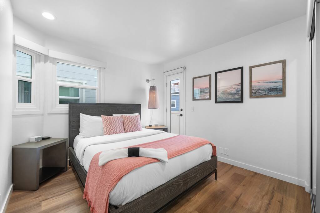 Welcome to our stunning Mission Beach getaway, where coastal charm meets modern luxury. This spacious 3-bedroom, 2.5-bathroom vacation rental is spread across two floors of a duplex(top floor home), offering ample space and comfort for your group. First Floor: Bunk bedroom, queen bedroom, laundry room and full bathroom Second Floor: main bedroom w/ ensuite bathroom, living space, kitchen, private balcony, half bathroom. As you step inside and walk up the stairs, you'll be greeted by a beautifully furnished living area, complete with plush sofas and a large smart TV, perfect for cozy nights in with your loved ones. The adjacent dining area provides seating for six, ideal for family meals or friendly gatherings. Prepare delicious meals with ease in the fully equipped kitchen, featuring stainless steel appliances, granite countertops, and all the essentials you need. And when it's time to unwind, head outside to the private patio, where a BBQ grill awaits, offering the perfect setting for cookouts and sunset dinners. Retreat to the comfort of our inviting bedrooms, each thoughtfully designed to provide a peaceful haven for rest and relaxation after a day of beachside fun. The main bedroom, located upstairs, boasts a luxurious king-size bed with plush linens and pillows, ensuring a restful night's sleep. Guests will also appreciate the convenience of the ensuite bathroom, featuring a spacious shower for added comfort and convenience. The secondary bedroom, located on the first floor offers a cozy queen-size bed, perfect for unwinding after a day of exploring the vibrant streets of Mission Beach. With soft bedding and ample storage space, this bedroom provides a comfortable retreat for guests to recharge and rejuvenate. Ideal for families or groups traveling with children, the third bedroom features 3 bunk beds, providing plenty of sleeping space for your guests. In addition to the modern comforts of home, our vacation rental also provides beach gear for your convenience, including chairs, umbrellas, and towels. And with a washer and dryer located within the unit, keeping up with laundry is a breeze, allowing you to spend more time enjoying your vacation. Located just steps from Belmont Park and the beach, this vacation rental offers unbeatable access to all the excitement of Mission Beach. Whether you're riding the waves, exploring local shops and restaurants, or simply soaking up the sun, you'll find endless opportunities for adventure right outside your door. Parking: There is additional parking in front of the home. It is free street parking, but you CAN'T park there Monday-Thursday/Friday 8am-10am. Please read all street signs carefully. Don't miss out on the ultimate San Diego getaway at our Mission Beach retreat. Book now and start making memories that will last a lifetime! Transient Occupancy Registration Certificate Numbers 518498 License Number STR-03654L