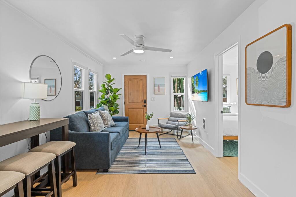 Welcome to your perfect beach retreat in the heart of Ocean Beach! This charming two-bedroom rental that comfortably sleeping up to 5 guests. Each bedroom is outfitted with hotel-quality linens and towels, ensuring a luxurious and restful stay. Bedrooms & Spaces: Main Bedroom: Features a well decorated room with a king-sized bed, blackout shades and a 50in smart TV. Second Bedroom: A versatile space perfect for extra guests or relaxation. Queen size bed and blackout shades. Living Room: Includes a queen pull-out couch, large comfortable accent chair and a smart TV, ideal for unwinding after a day at the beach. Bathroom: The spacious bathroom boasts a walk-in shower and is stocked with all the essentials you need, from shampoo, body wash, body lotion to fresh towels. Kitchen & Dining: The fully equipped kitchen has everything you need to whip up meals, including an electric range, microwave, and all necessary cookware and utensils. Enjoy your morning coffee with the provided Keurig coffee machine and pods. The dining area seats three comfortably, making it perfect for meals or casual conversations. Amenities & Extras: The backyard also features a laundry closet with a washer and dryer, adding extra convenience to your stay. Free WiFi for staying connected. Pet friendly, pet fee is $50. Two free onsite parking spots for hassle-free convenience, located on the back side of the home in a rock gravel area. Smart TVs in both the living room and main bedroom for entertainment. Located just steps from the beach, local shops, and dining, this Ocean Beach rental offers the perfect blend of comfort and convenience. Book now and make unforgettable memories by the sea!