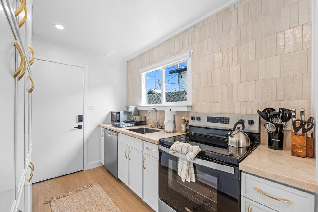 Welcome to your cozy retreat in the heart of Ocean Beach. This charming two-bedroom home that comfortably sleeps up to 5 guests and laundry onsite. It includes a king bed, queen bed and queen-sized pull-out couch in the living room. Enjoy the convenience of a full kitchen, perfect for preparing meals, and a spacious bathroom with a luxurious walk-in shower. You're just steps away from the beach, local shops, and vibrant dining options. 2 parking spaces onsite.