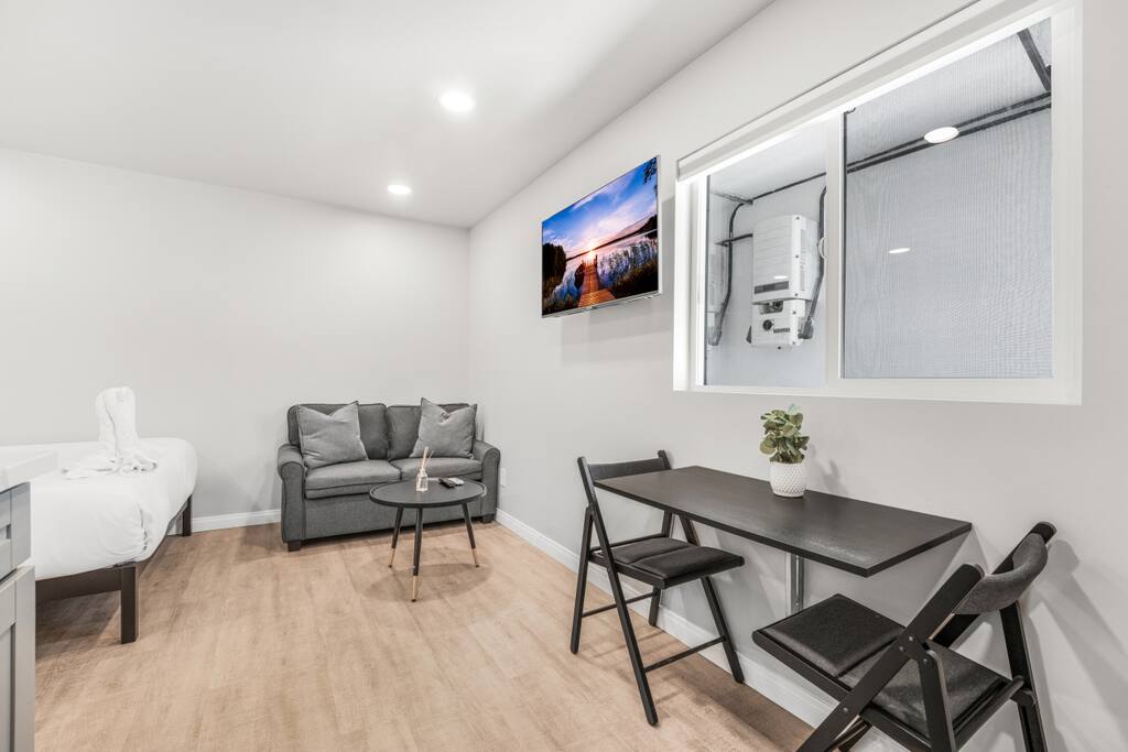 This charming studio in El Cajon, San Diego, offers the perfect blend of comfort and convenience. Features: Studio Layout: Open and inviting space with a kitchen. Comfortable Sleeping Arrangements: Twin pull-out couch, comfortably sleeps3 guests. Parking Included: Hassle-free parking for your convenience. Central Location: Ideally situated with easy access to major freeways, making it perfect for exploring SD Great Freeway Access: Quick and easy routes to all major attractions and destinations.